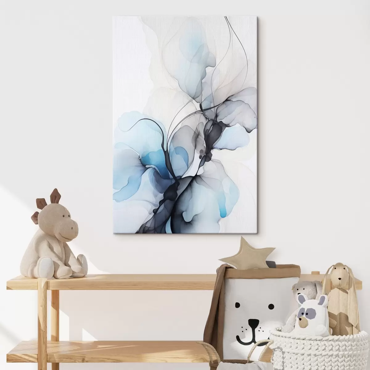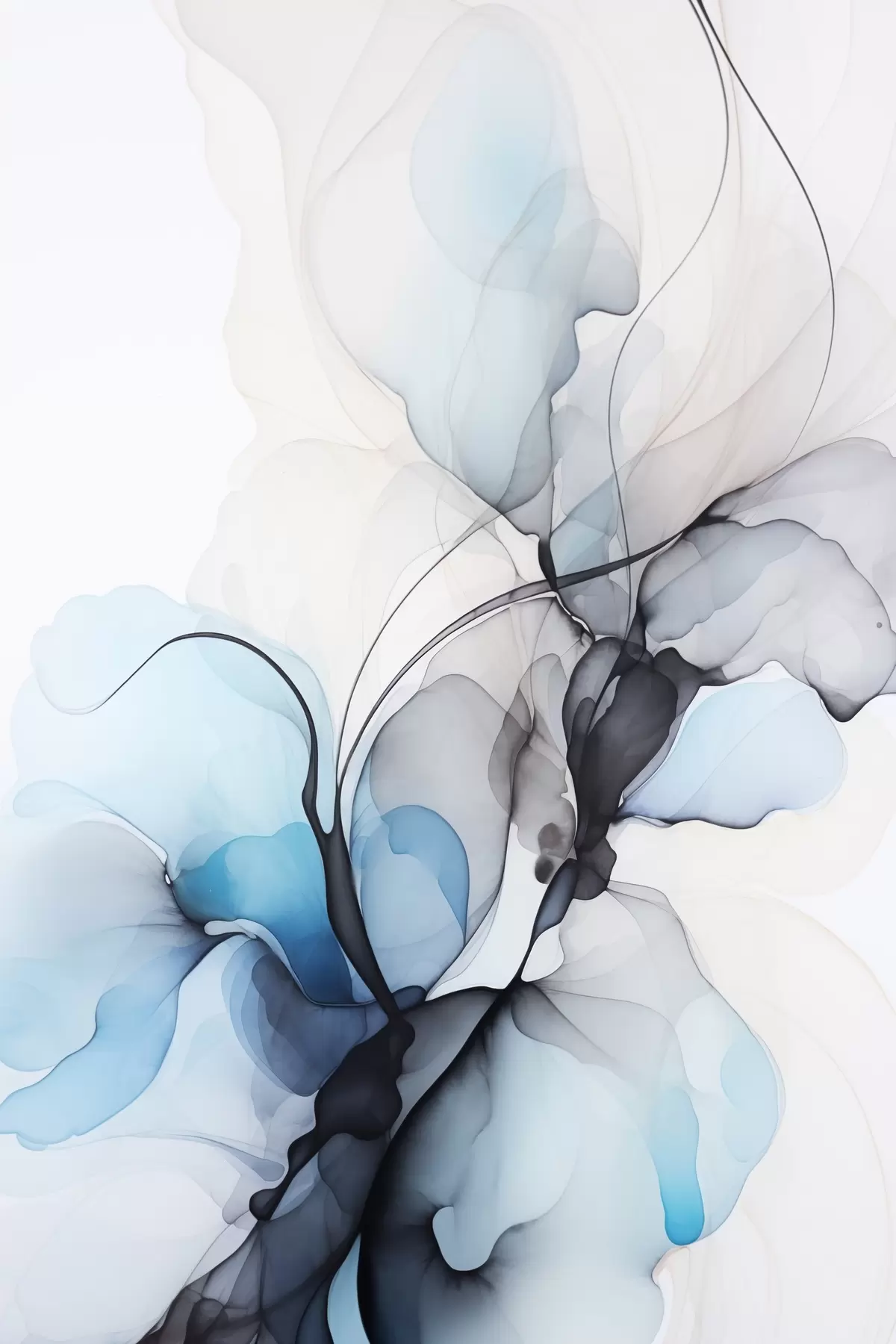 murales Composición abstracta con líneas fluidas y pétalos translúcidos en tonos azul blanco y beige, imitación de tinta de alcohol s45177