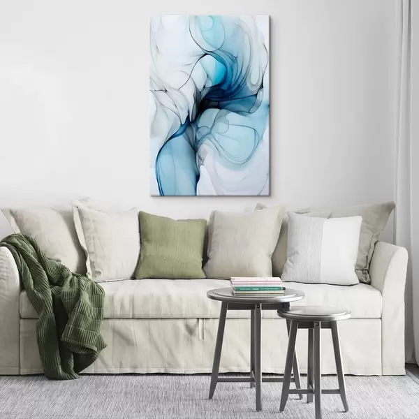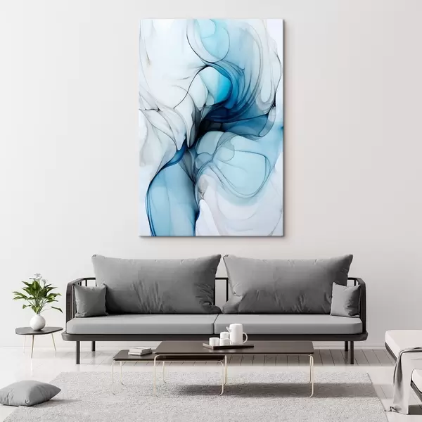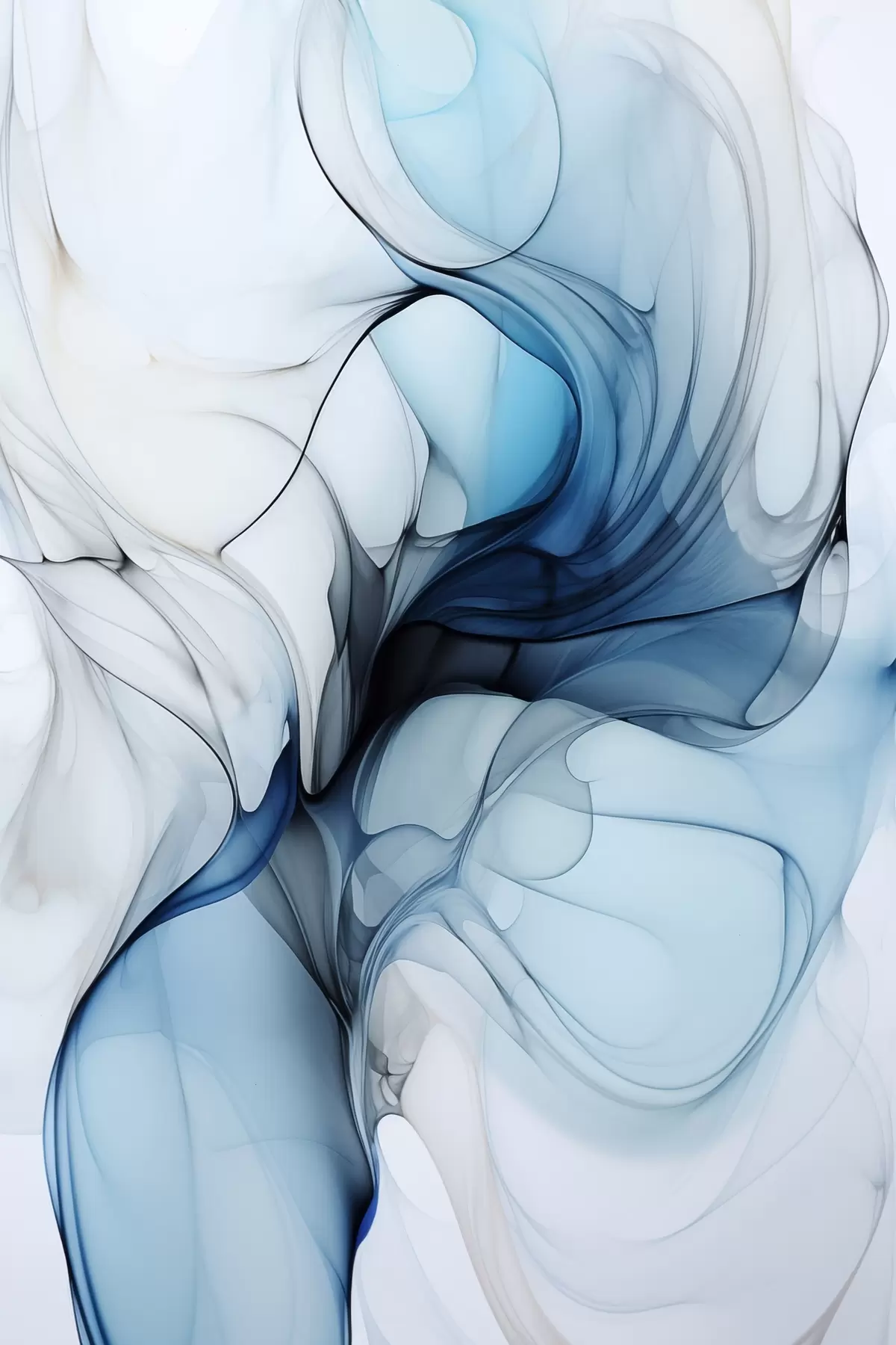 murales Composición abstracta con líneas fluidas y pétalos translúcidos en tonos azul blanco y beige, imitación de tinta de alcohol s45178