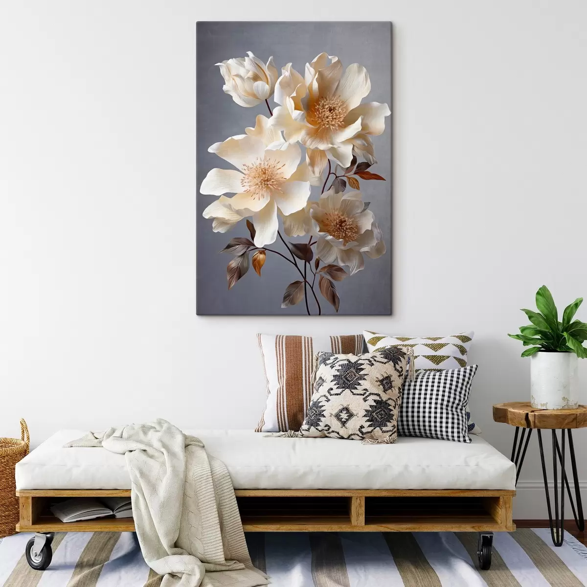 Hay tres tipos de material disponibles para pedidos: Lienzo Económico - material denso y duradero para impresión digital, idéntico al lienzo de pintor, superficie impermeable, reproducción realista de los detalles, material de grano medio. Lienzo Premium - la textura se asemeja a la de un lienzo de pintor (pequeños hilos entrelazados). Reproducción suave y detallada de la imagen sobre una superficie mate. Eco-Premium - tejido 100% algodón de alta calidad. Gracias a las fibras naturales de algodón, el material es duradero y resistente al desgaste. Excelente reproducción del color y el detalle.