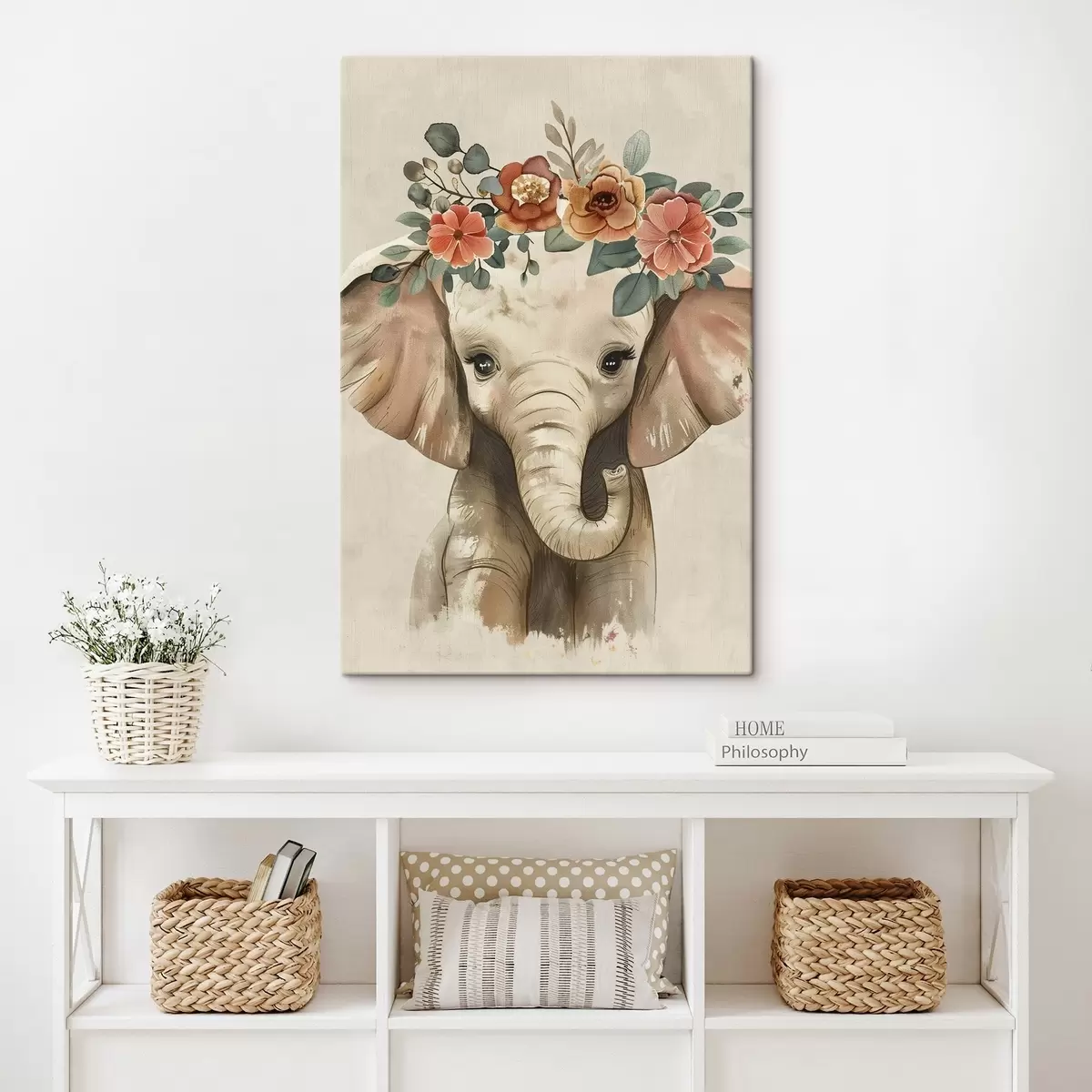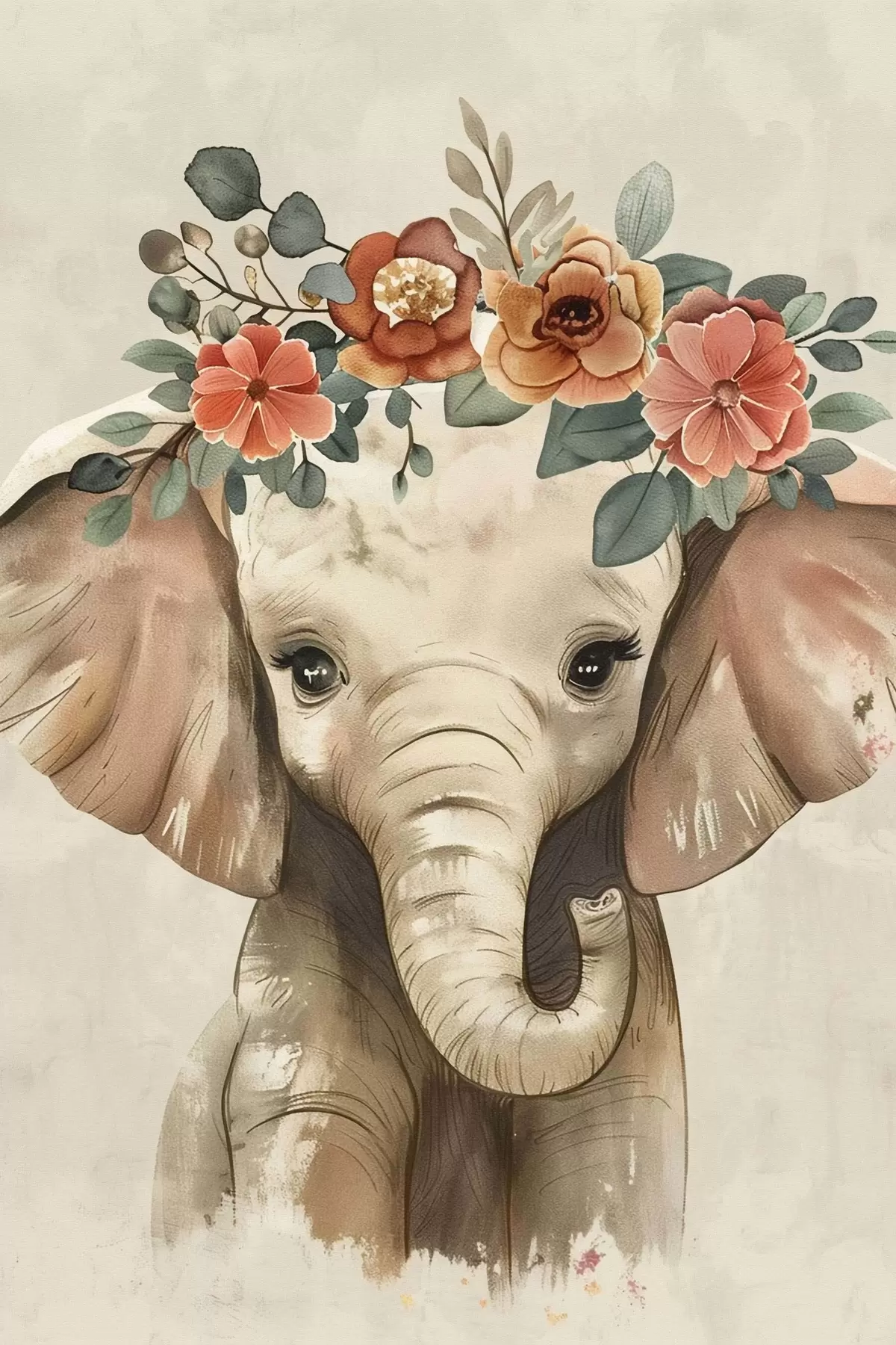 murales Lindo elefante de acuarela con flores s45330
