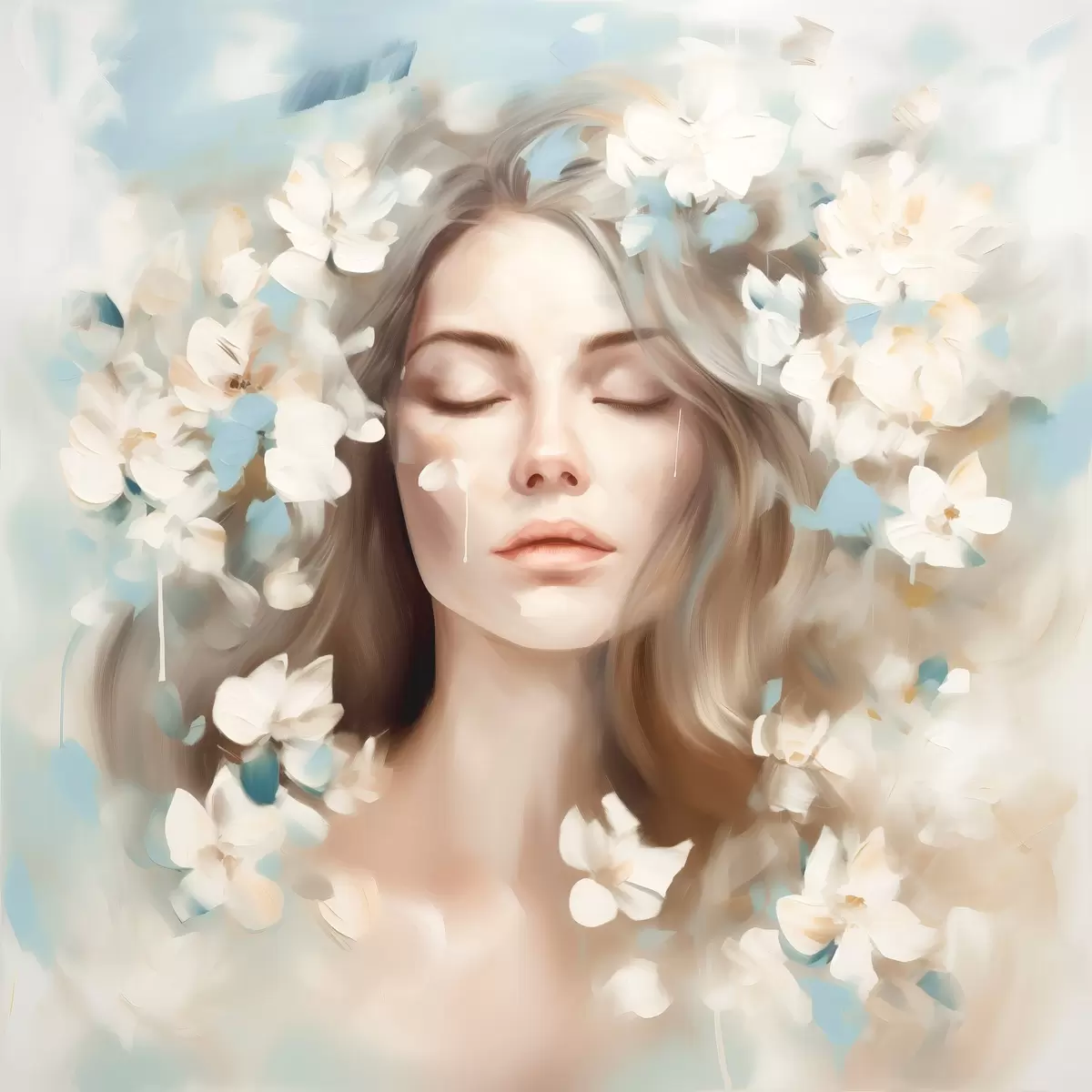 murales Retrato abstracto de una mujer con flores en forma de pinceladas s45450
