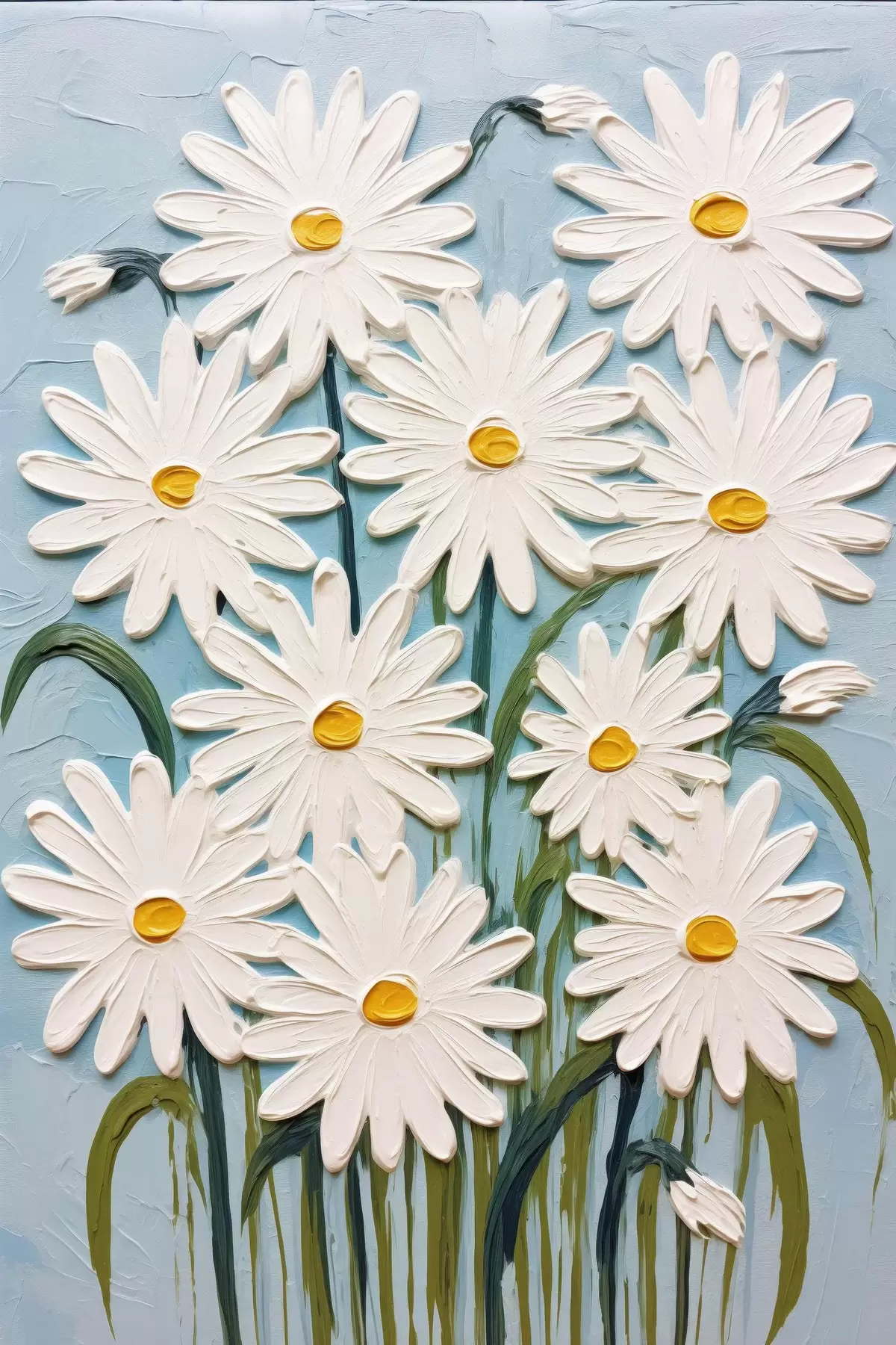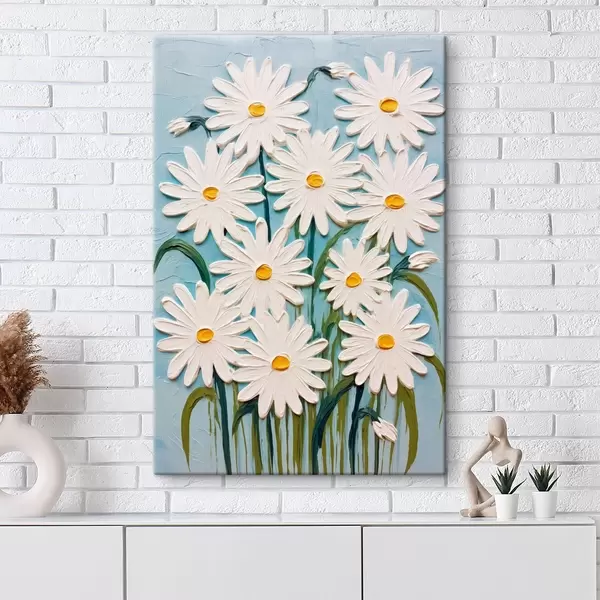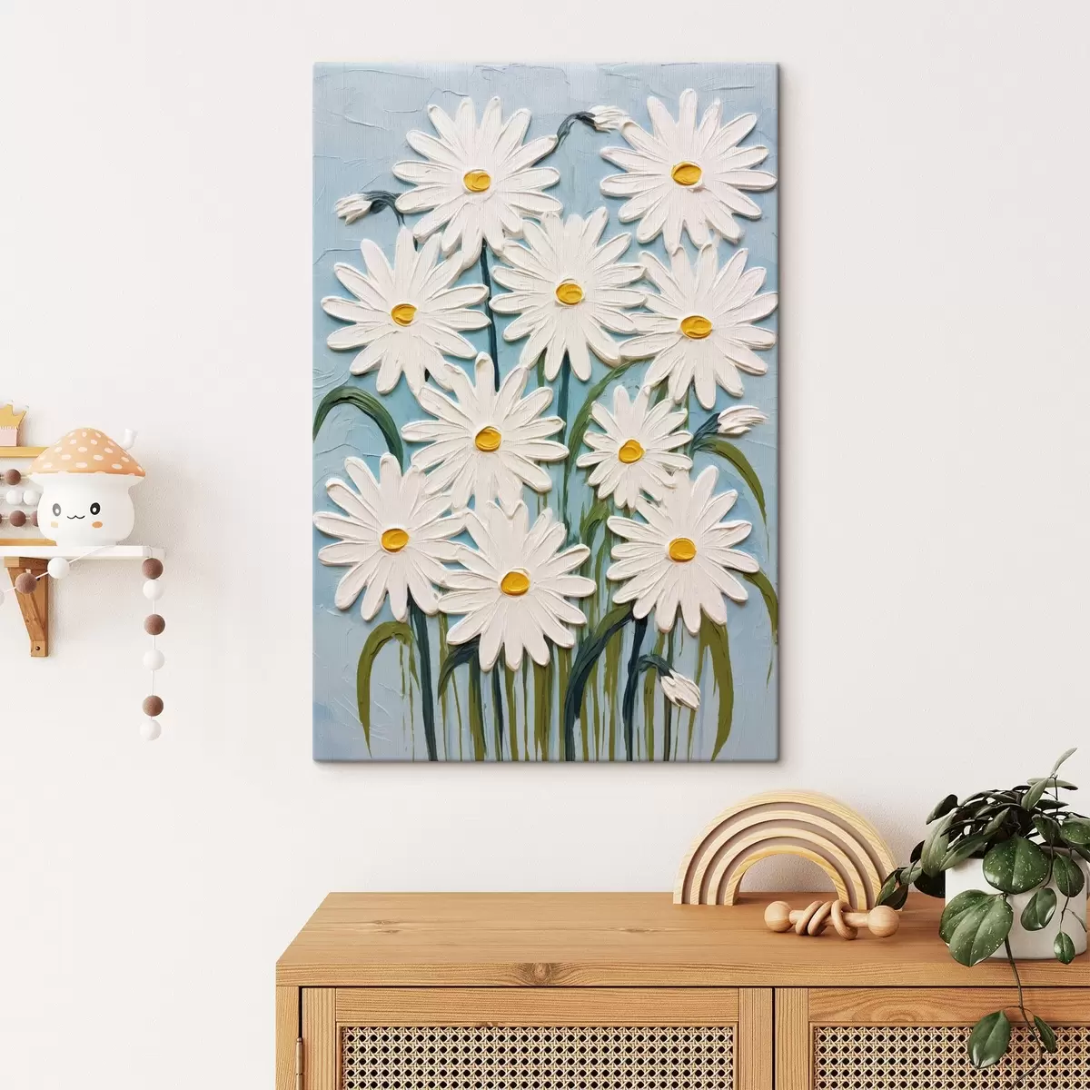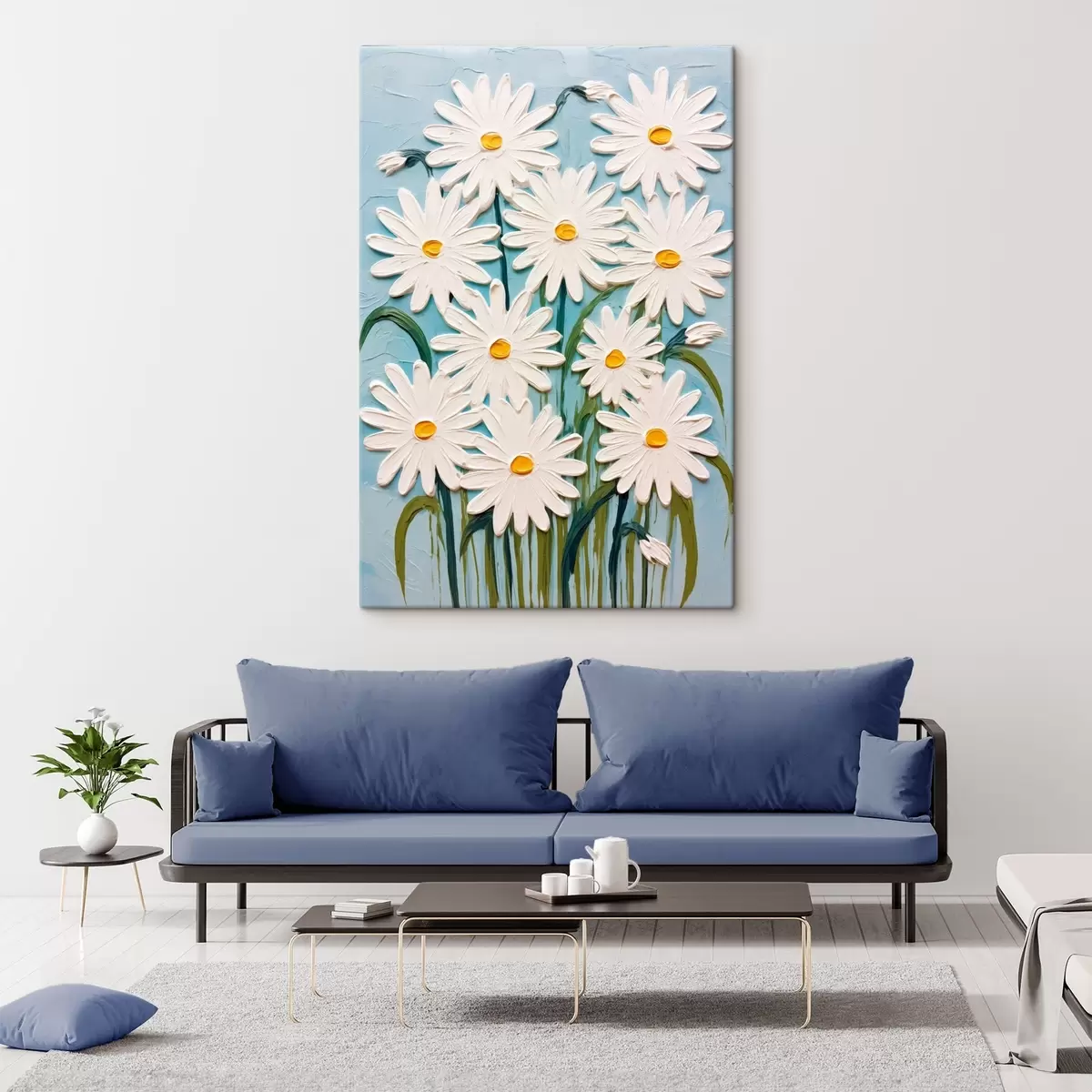 murales Margaritas en relieve: composición sobre fondo azul s45527