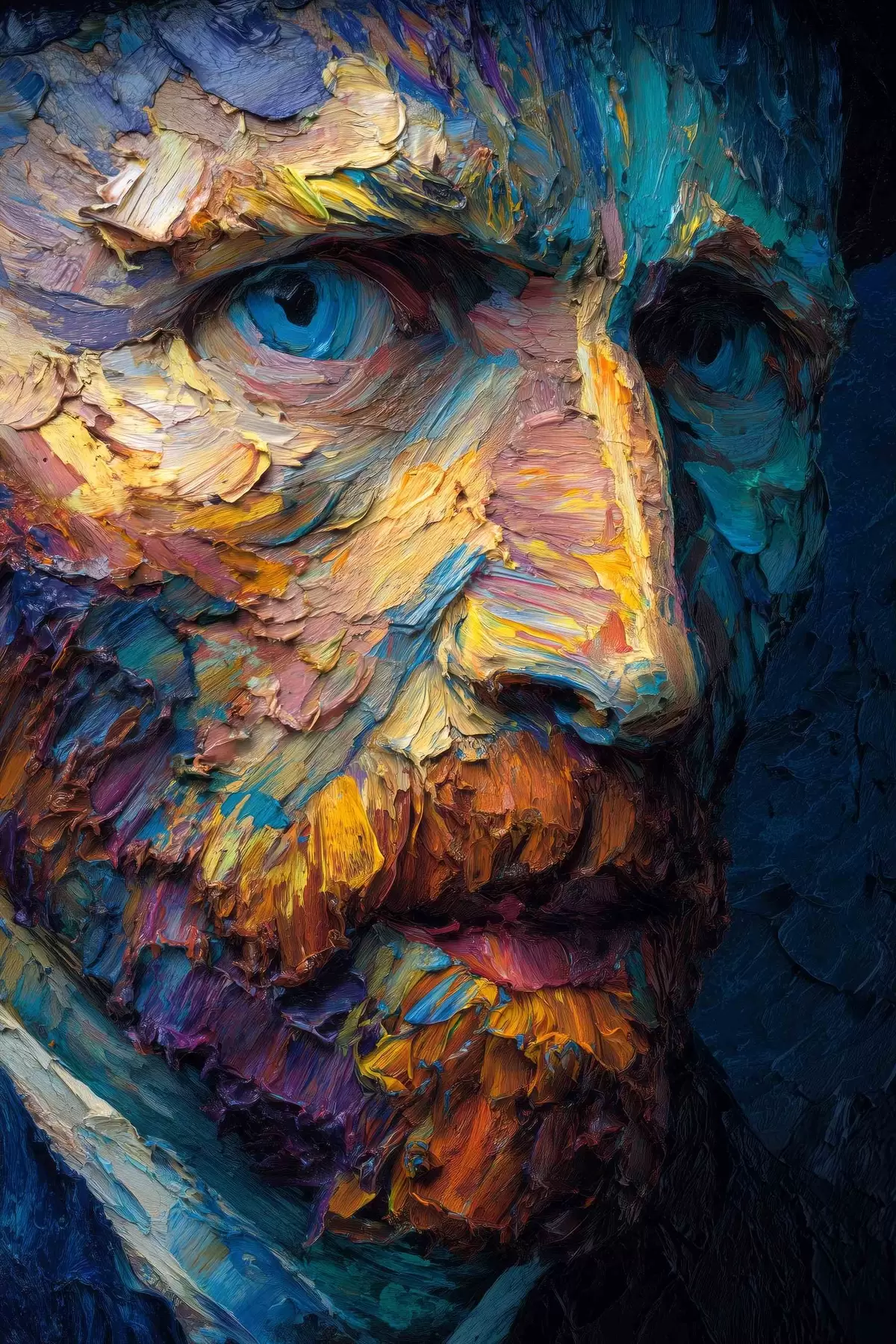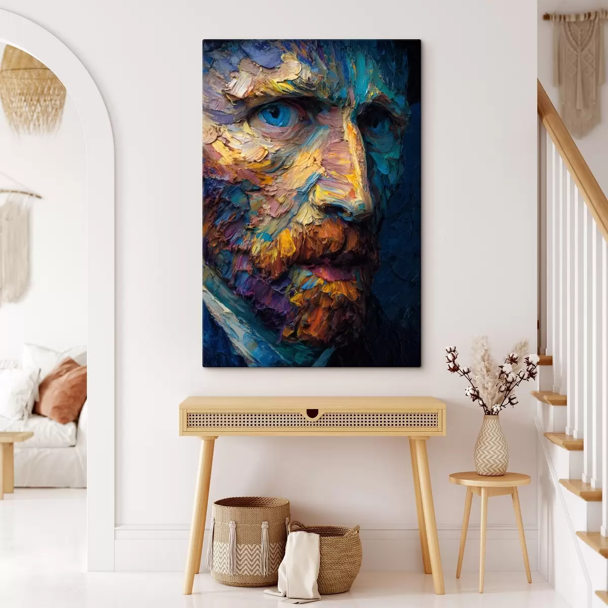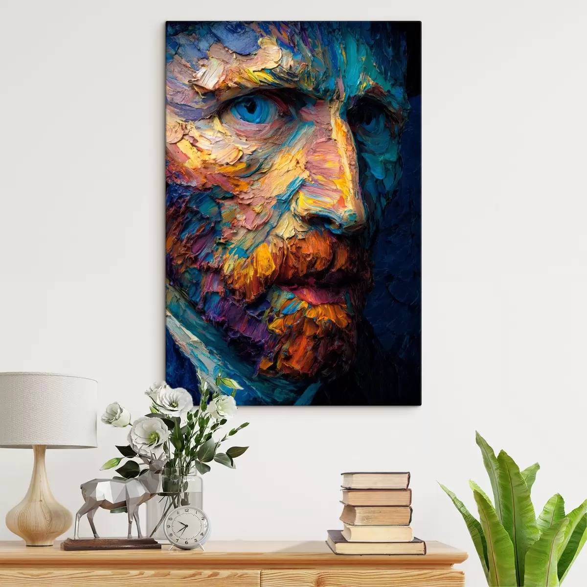 murales Retrato decorativo de Van Gogh: pintura en relieve en tonos azules y naranjas s45546