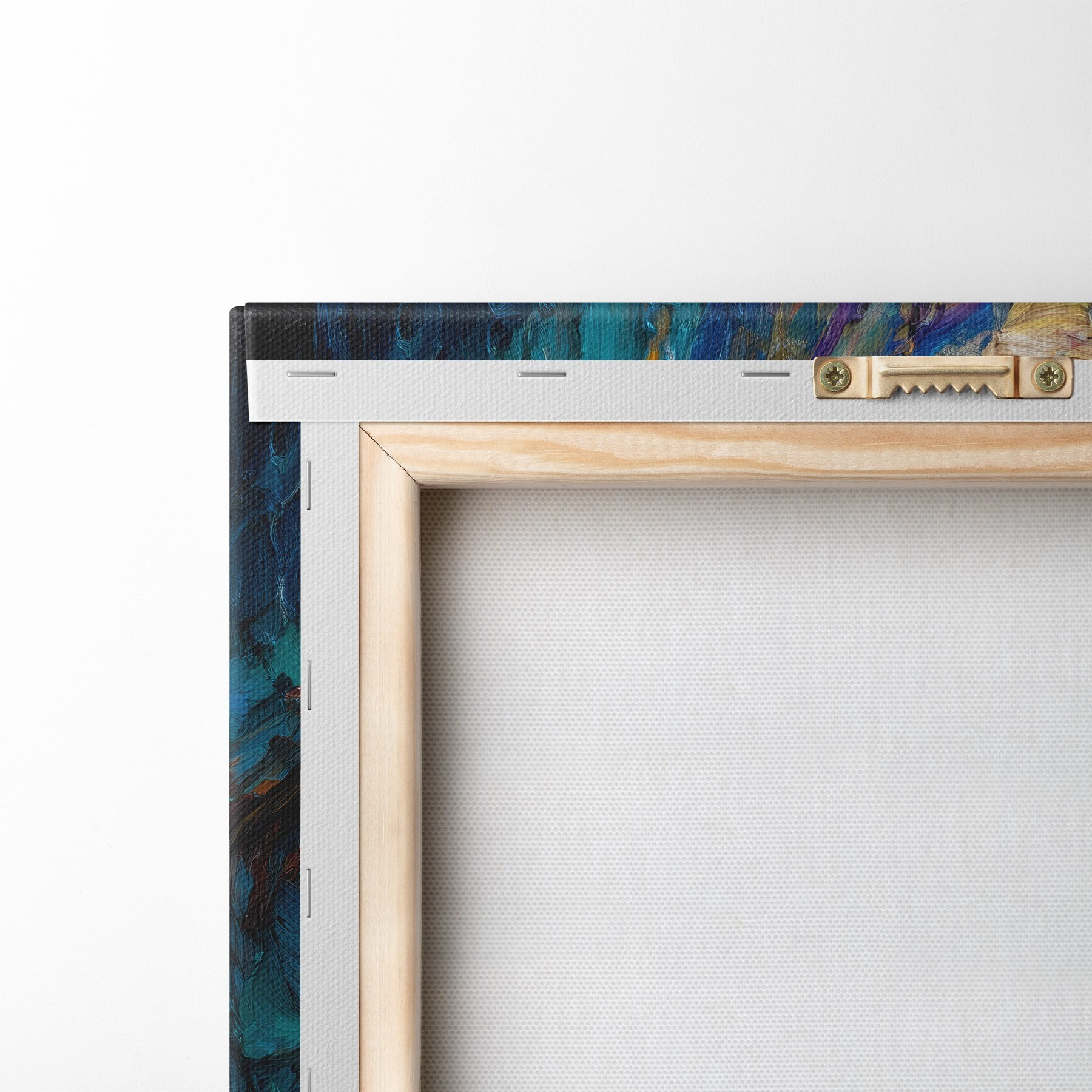 Vendemos cuadros en bastidor: se trata de un marco de madera sobre el que se extiende el lienzo. Este cuadro no necesita marco; puedes colgarlo directamente en la pared.
