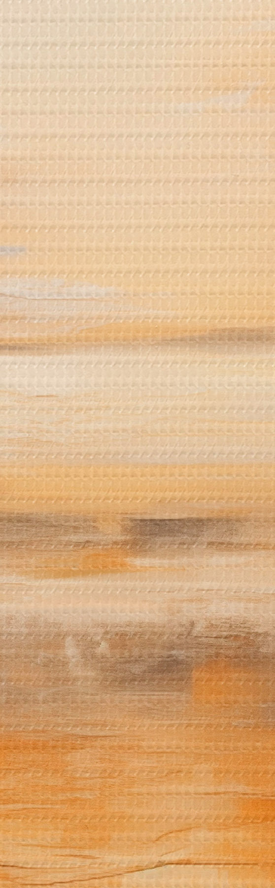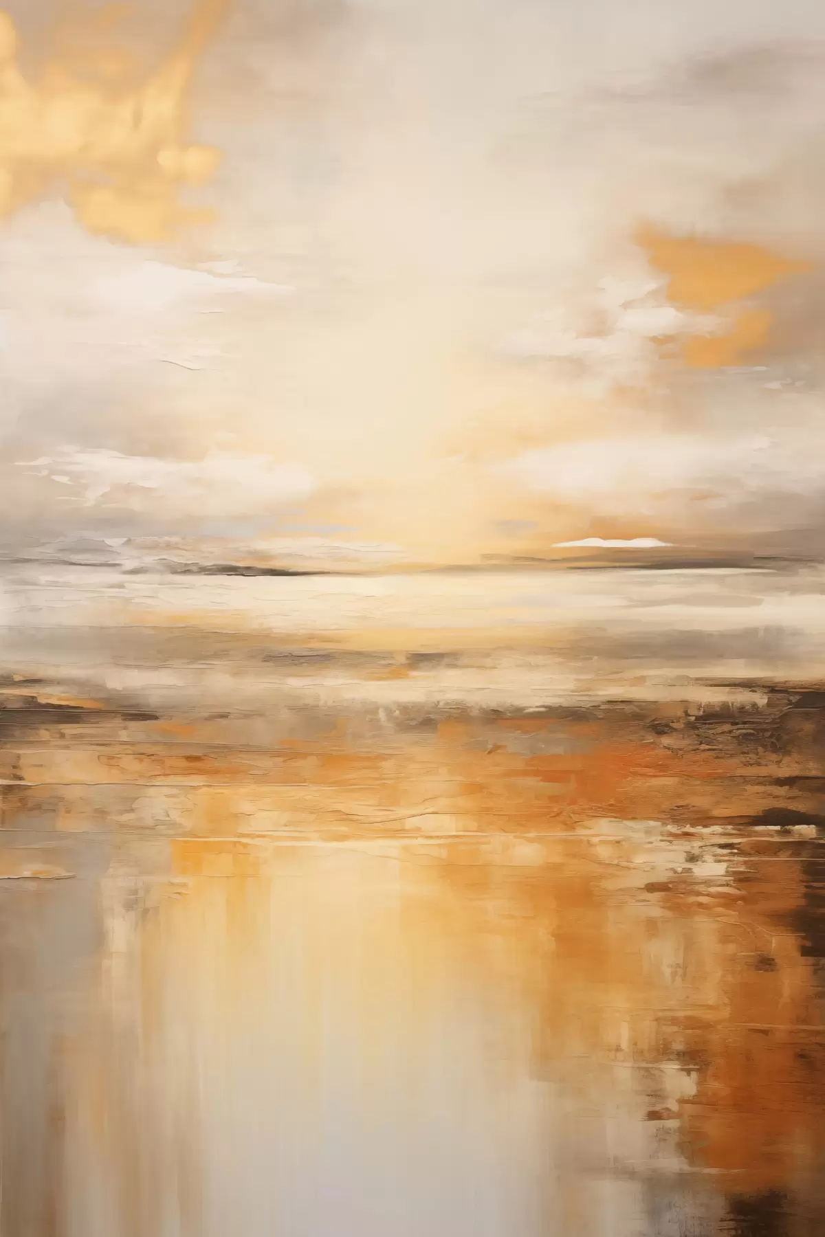 murales Una pintura abstracta de un paisaje de playa con un océano tranquilo , arena naranja y un cielo nublado con sol s45567