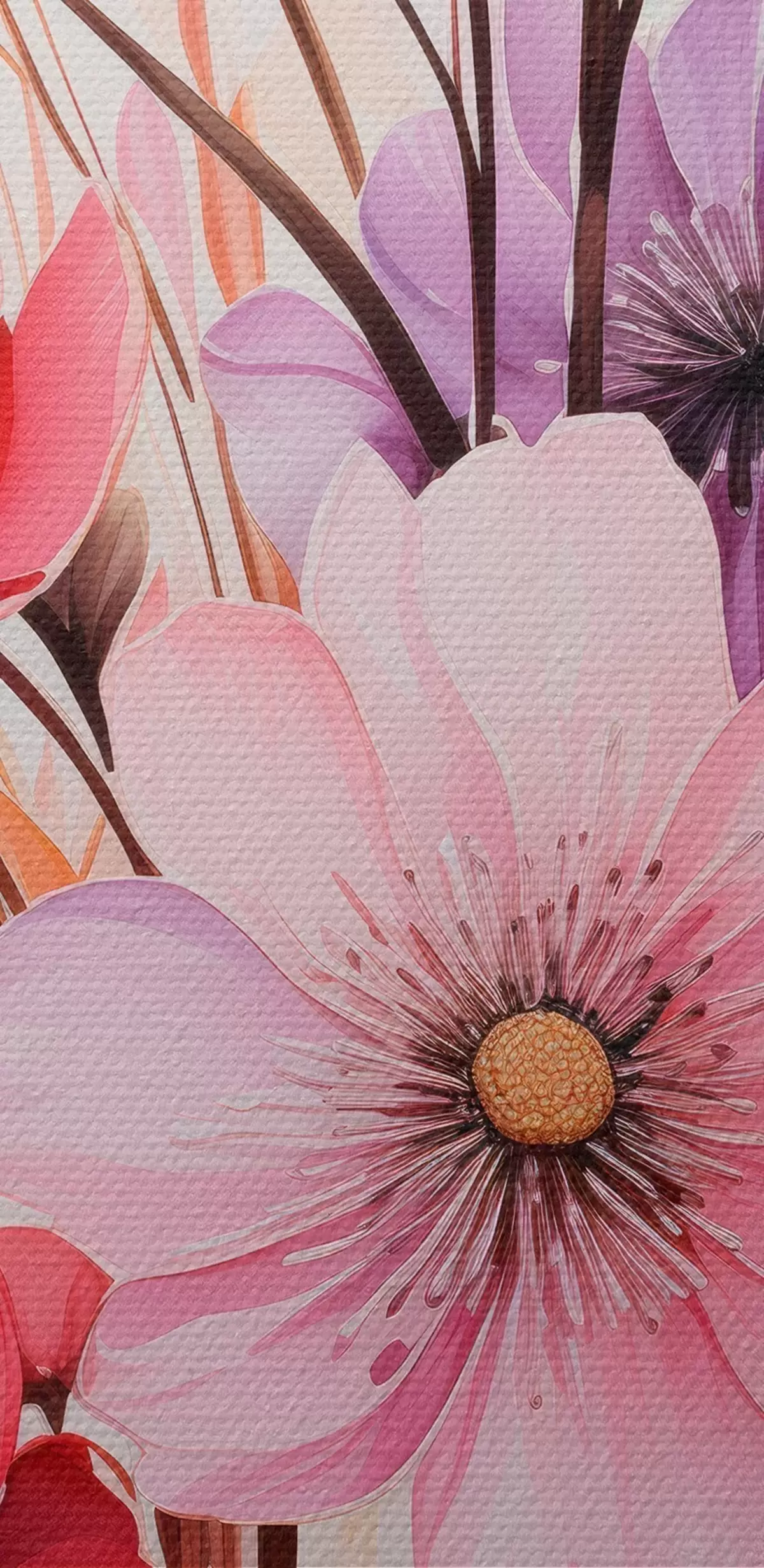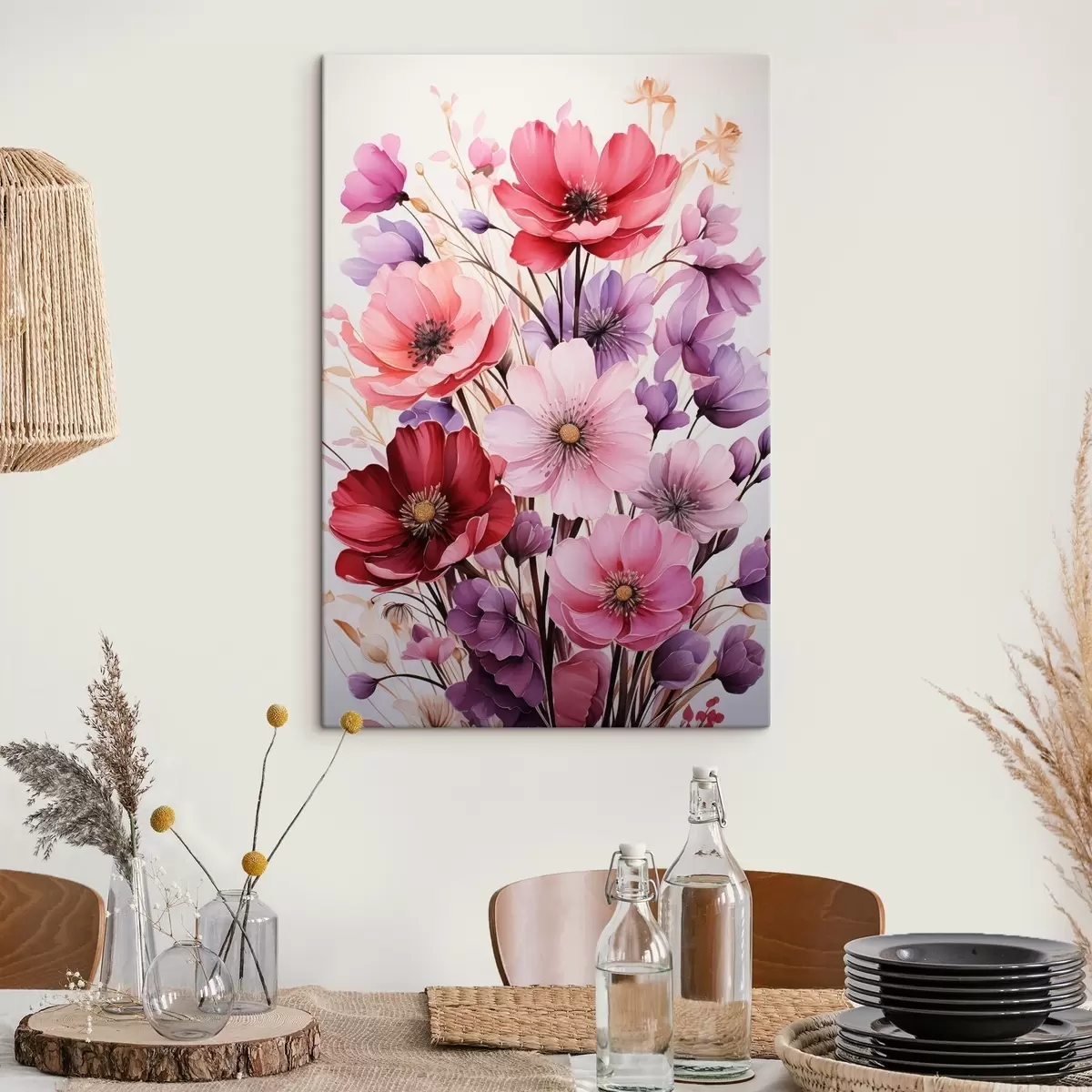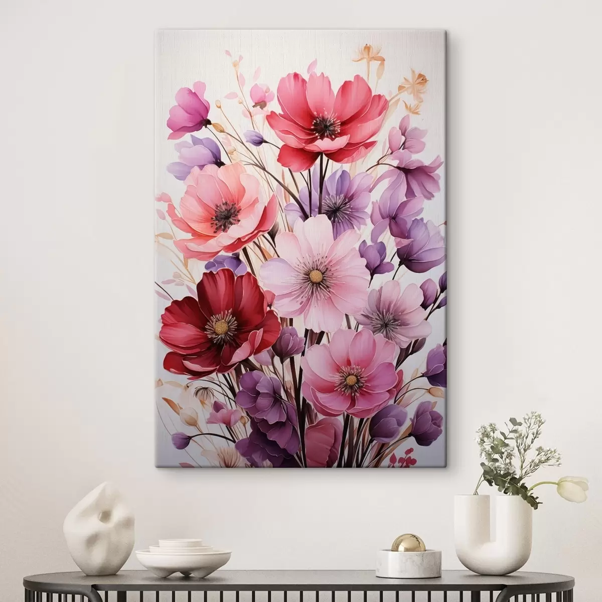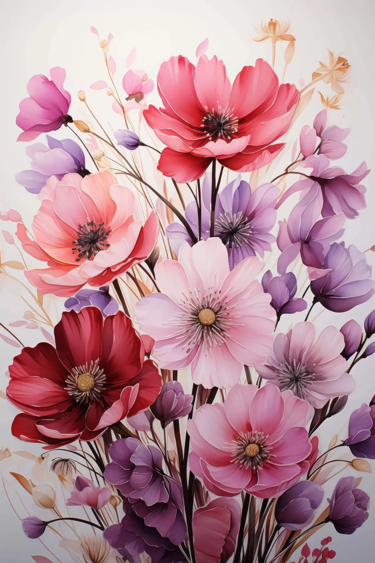 murales Delicado ramo de amapolas rosas y lilas sobre fondo claro, estilo acuarela s45601