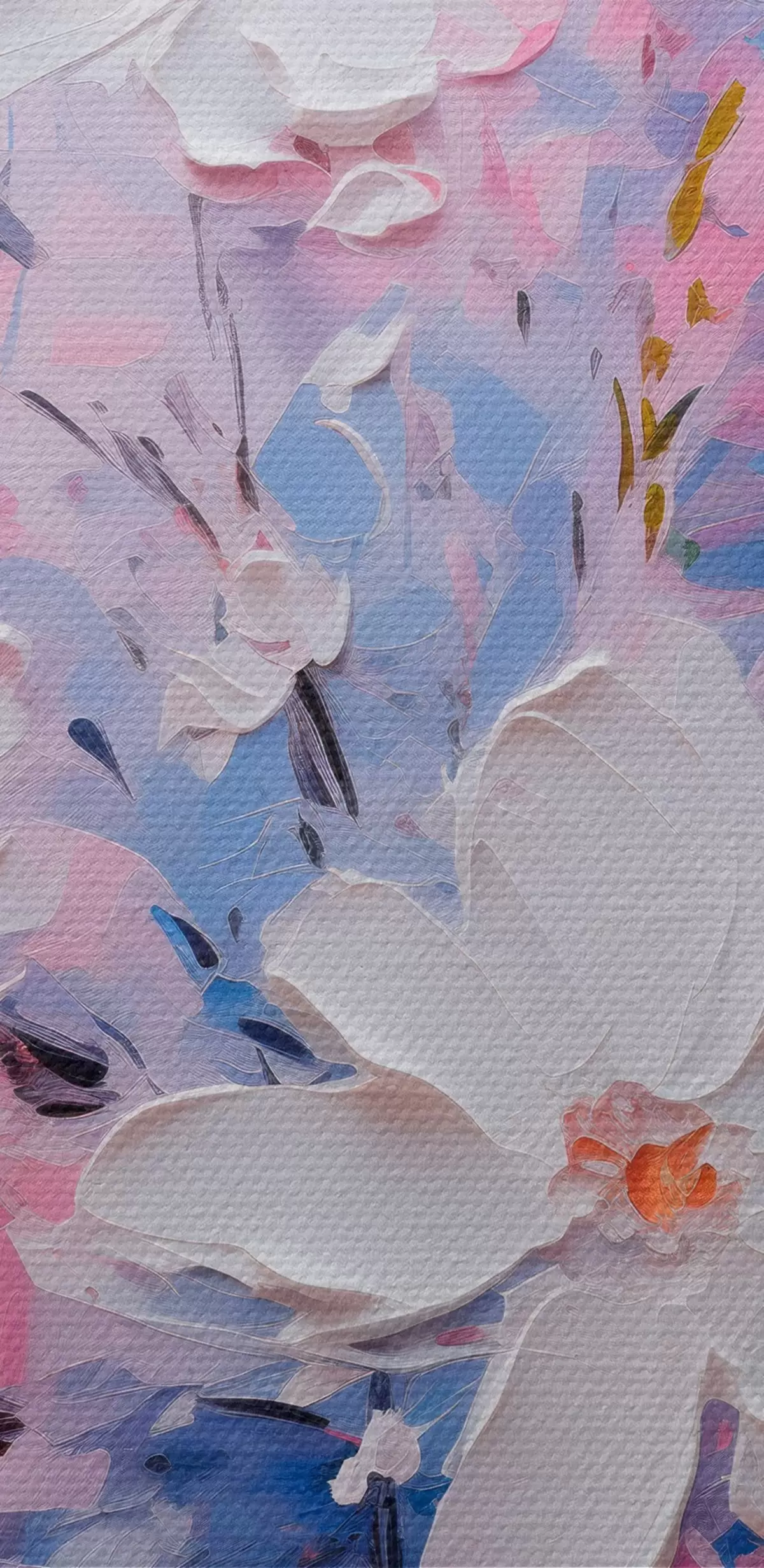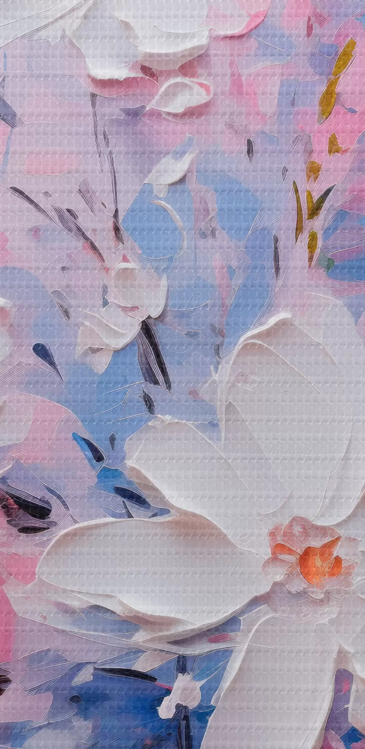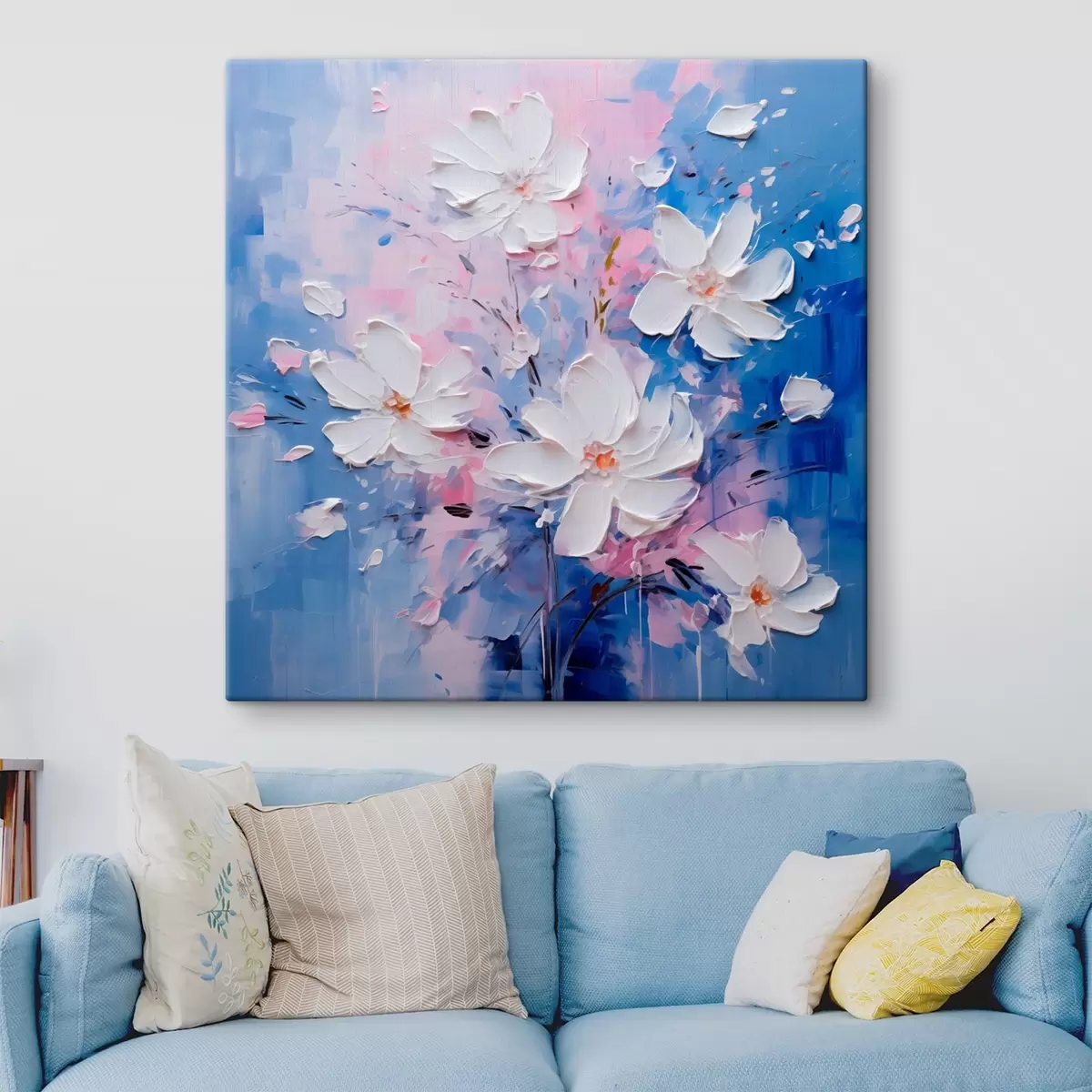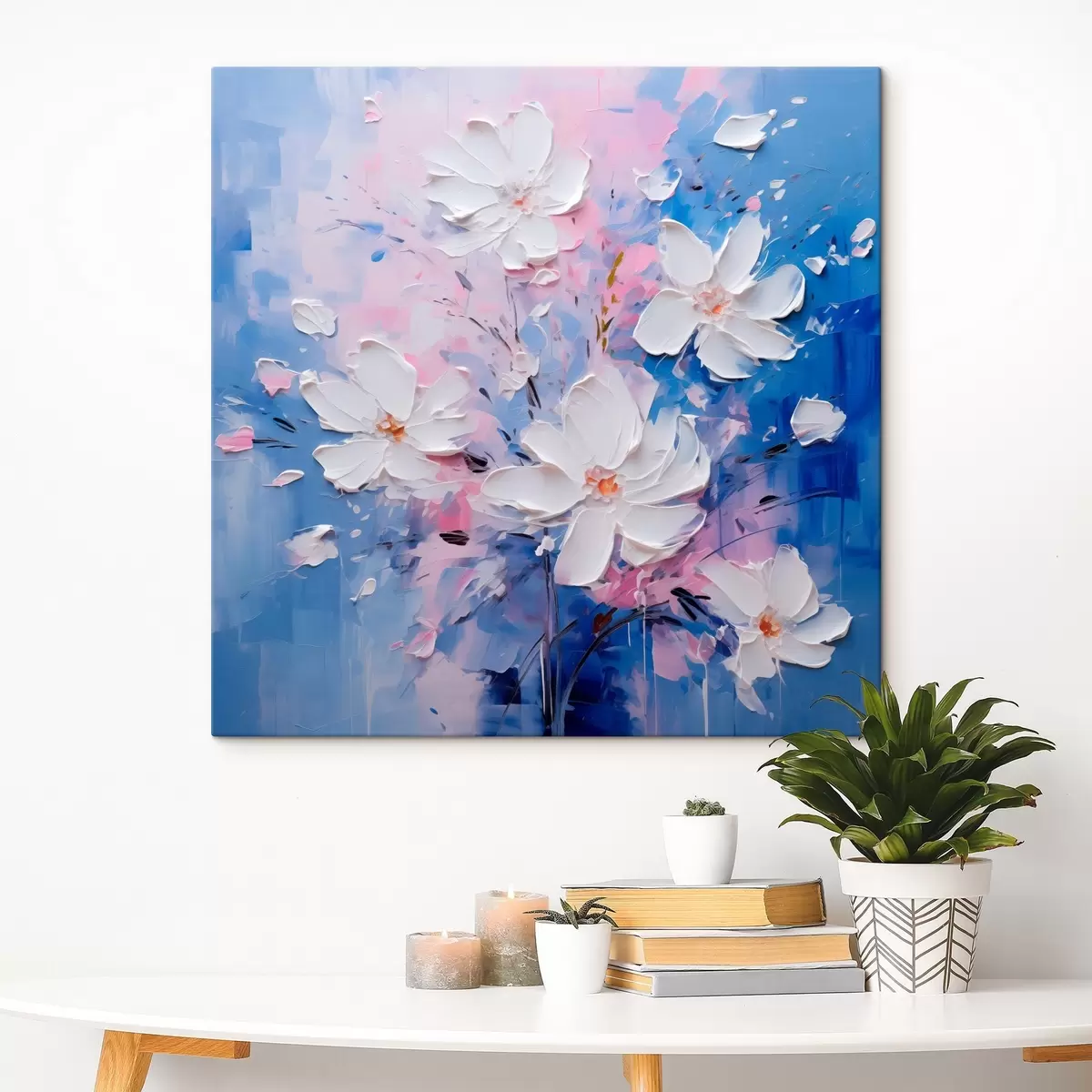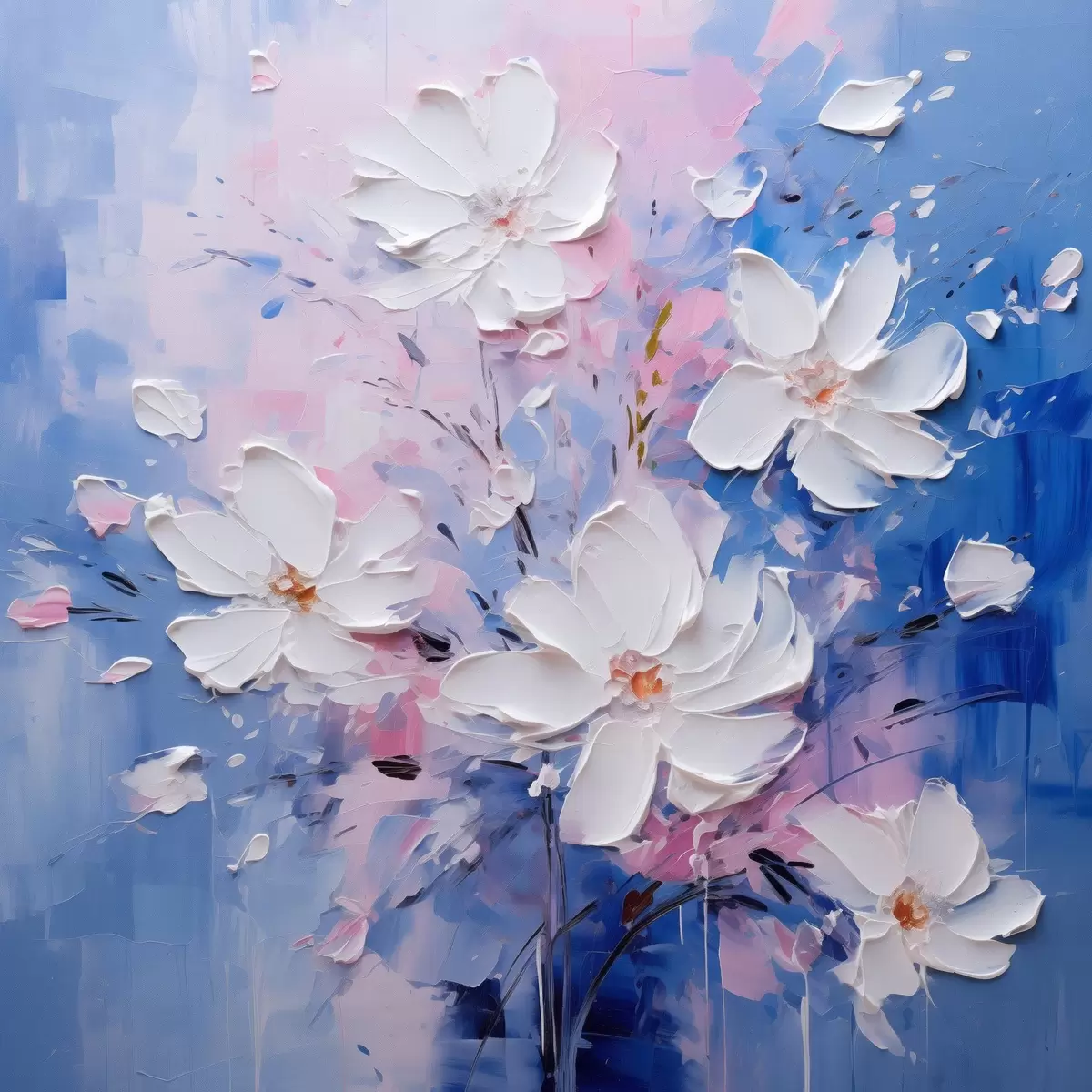 murales Flores volumétricas sobre fondo azul en estilo empastado s45648