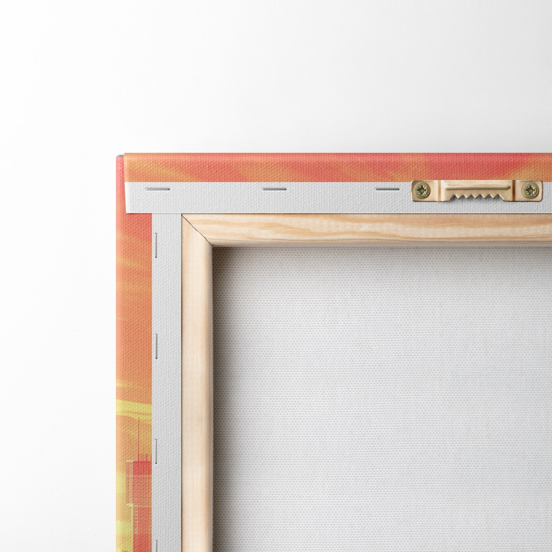 Vendemos cuadros en bastidor: se trata de un marco de madera sobre el que se extiende el lienzo. Este cuadro no necesita marco; puedes colgarlo directamente en la pared.