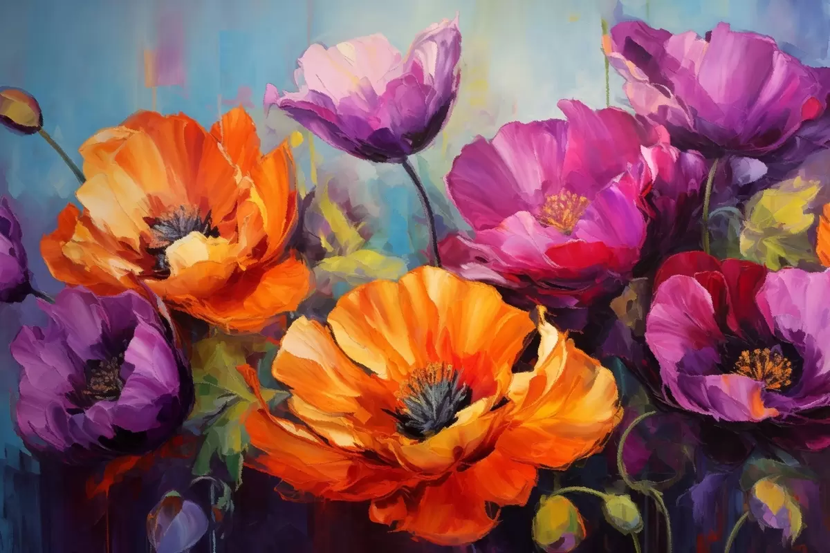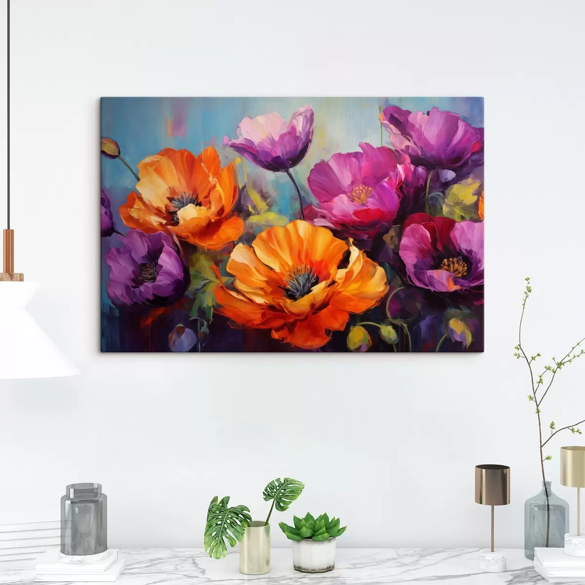 murales Amapolas brillantes en tonos morados y naranjas s45804