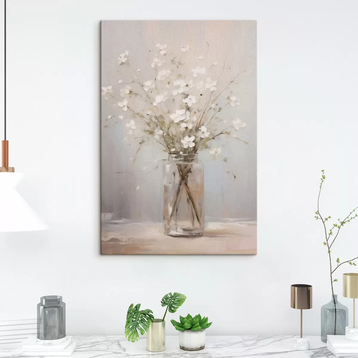 murales Un ramo de flores blancas en un jarrón de cristal transparente s45814