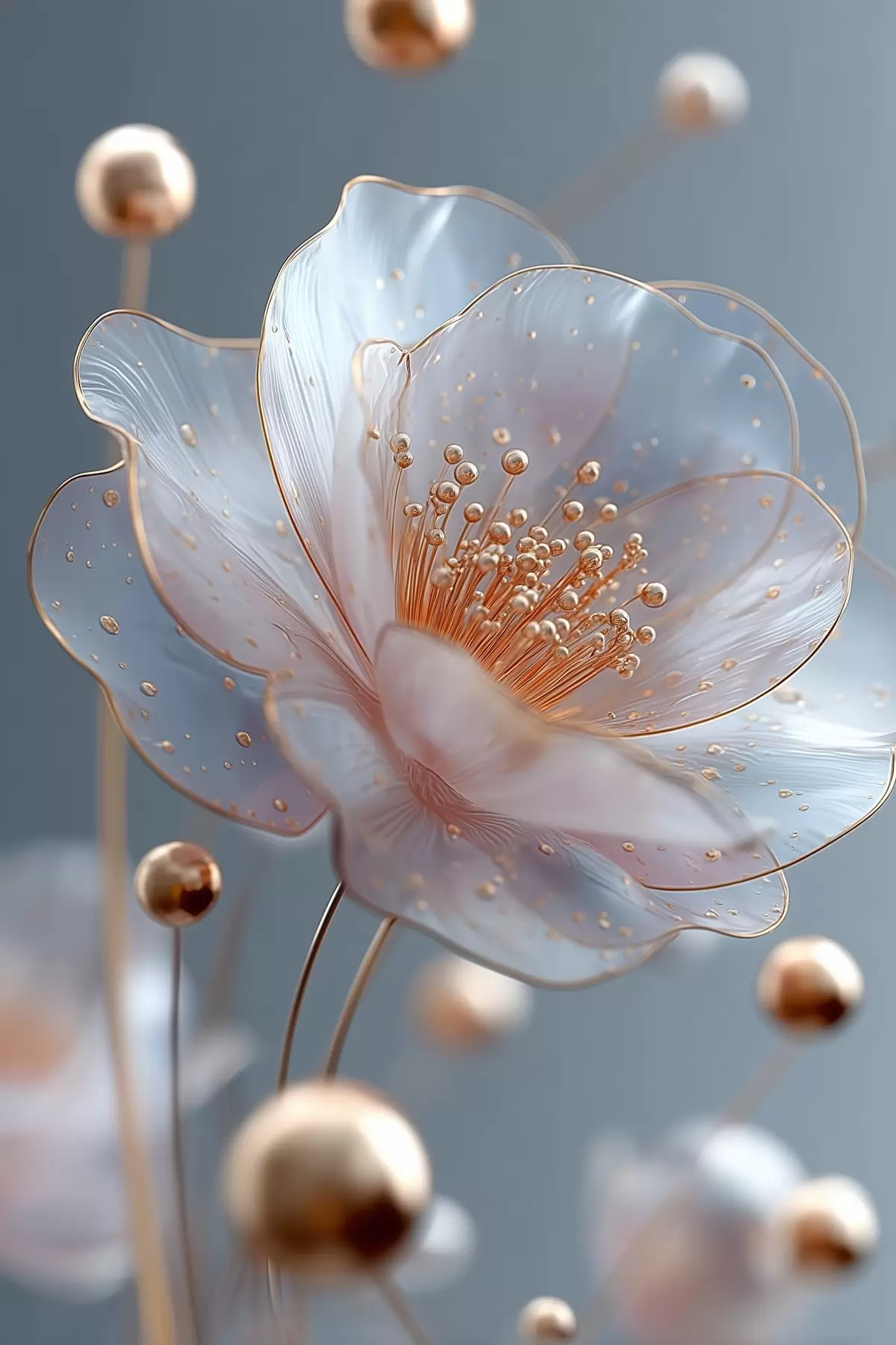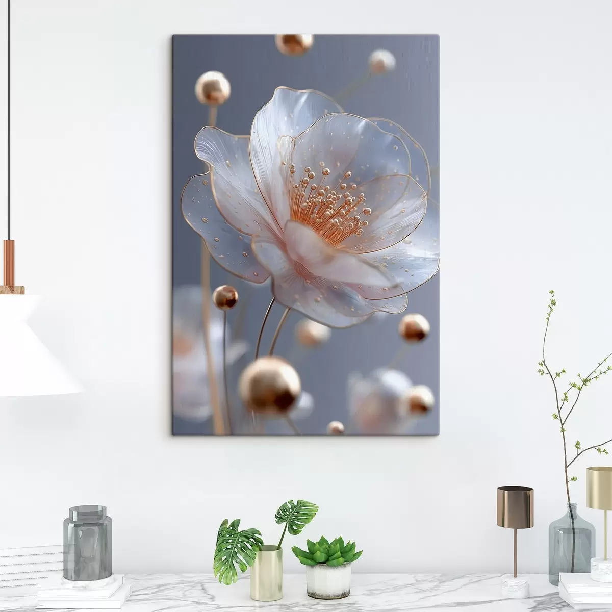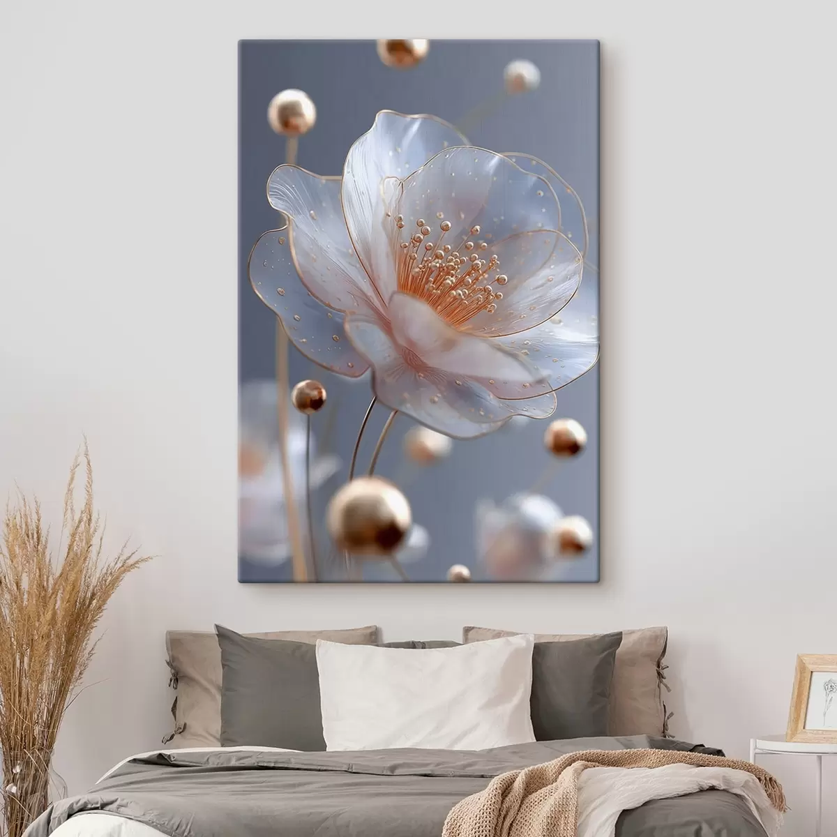 murales Flor translúcida con estambres cobrizos sobre fondo azul s45880