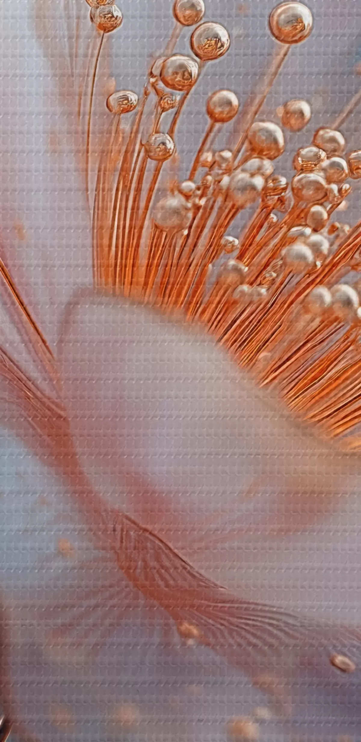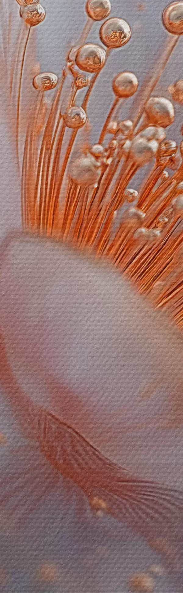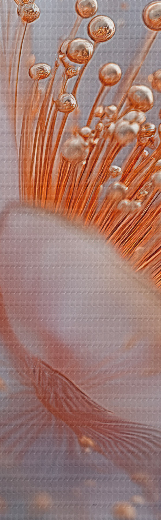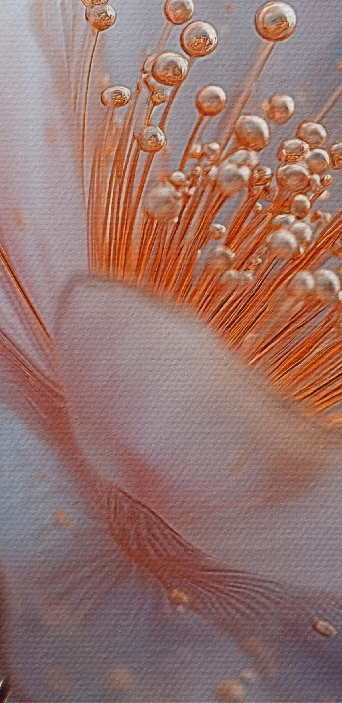 murales Flor translúcida con estambres cobrizos sobre fondo azul s45880