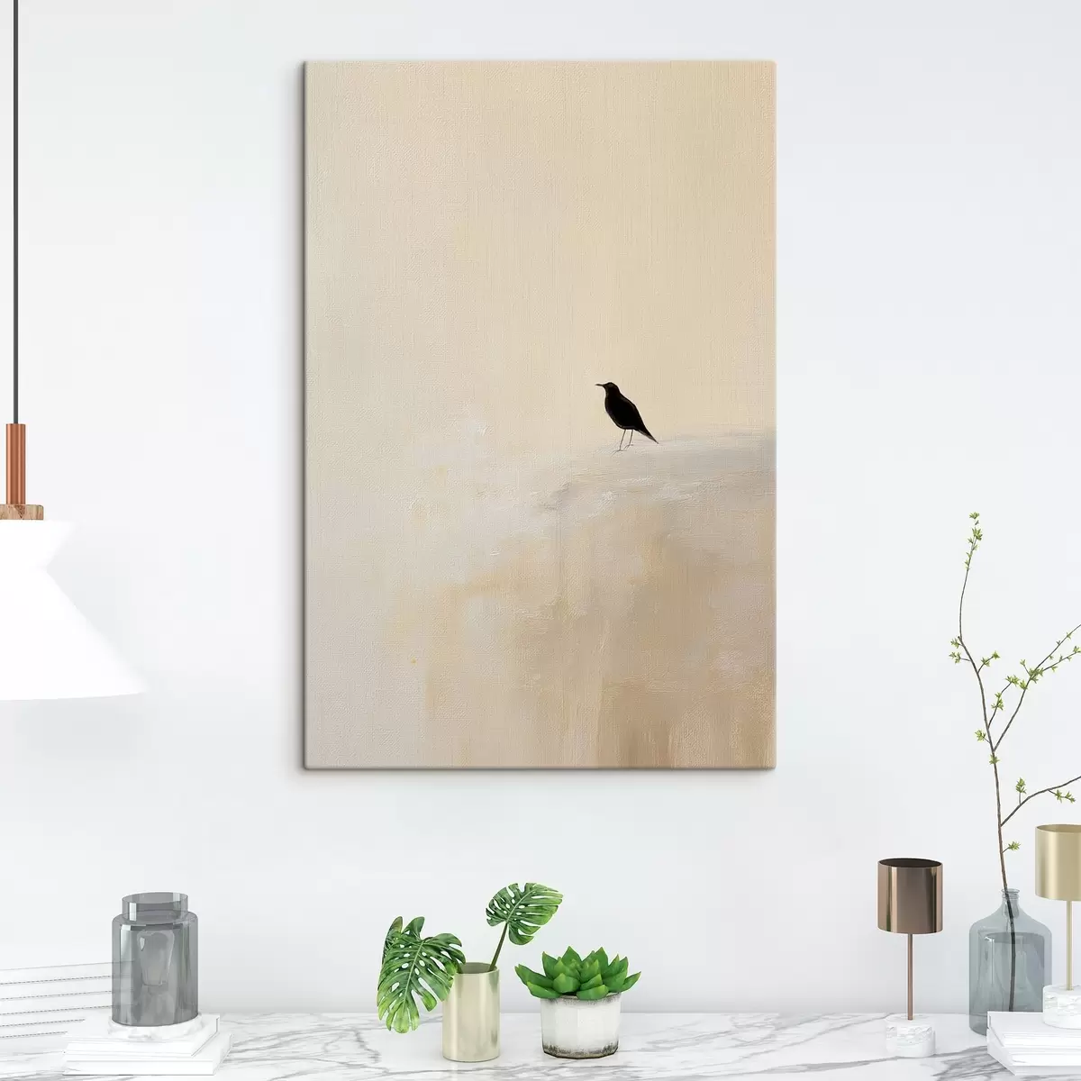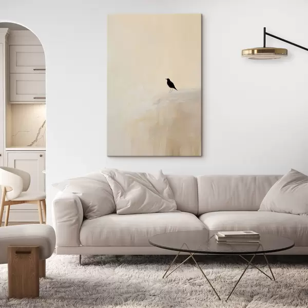 murales Pájaro solitario sobre un fondo beige cálido s45882