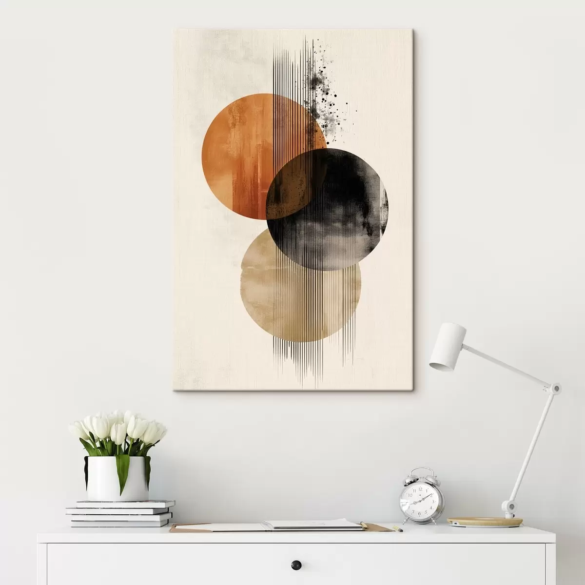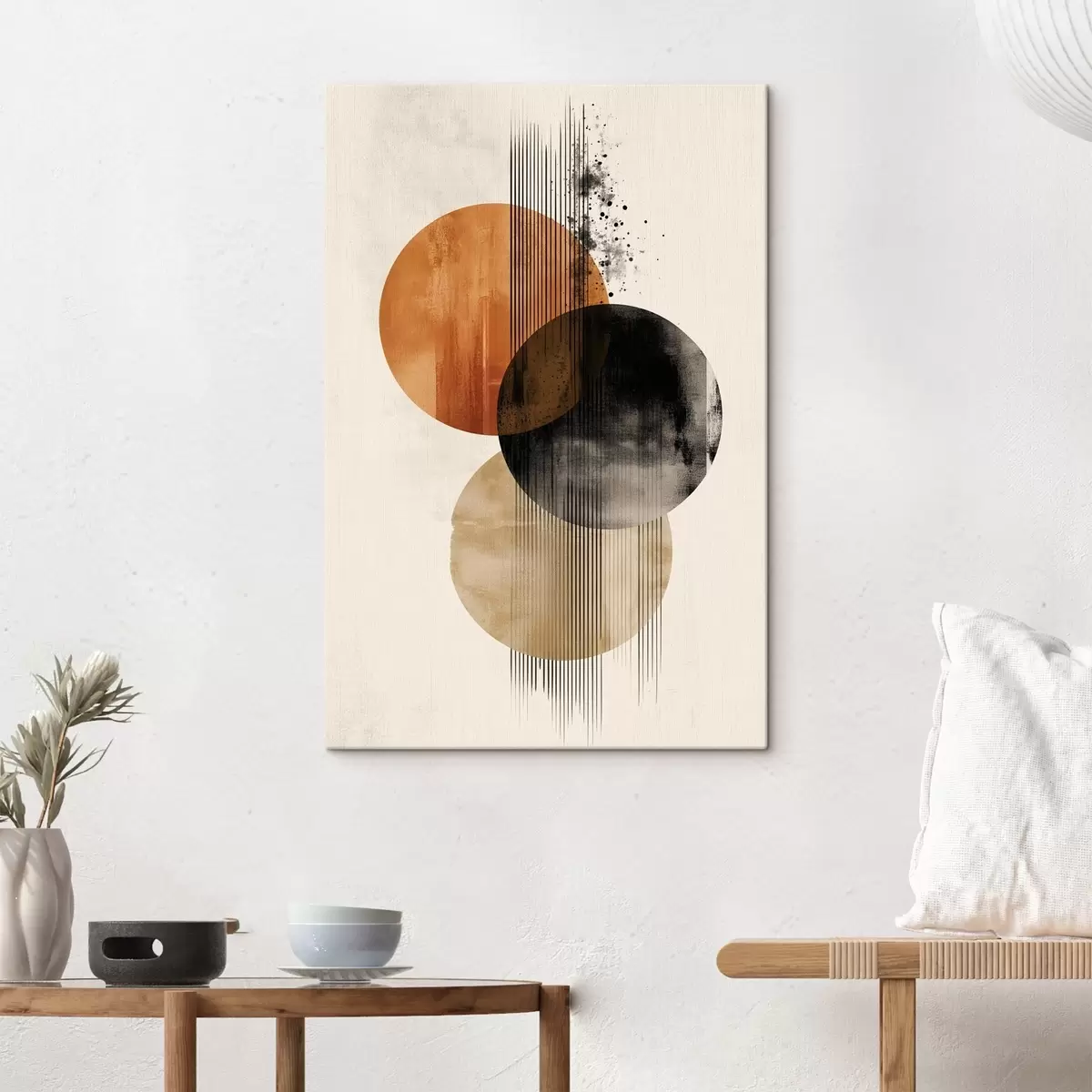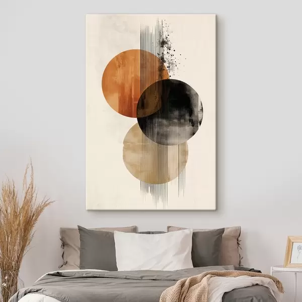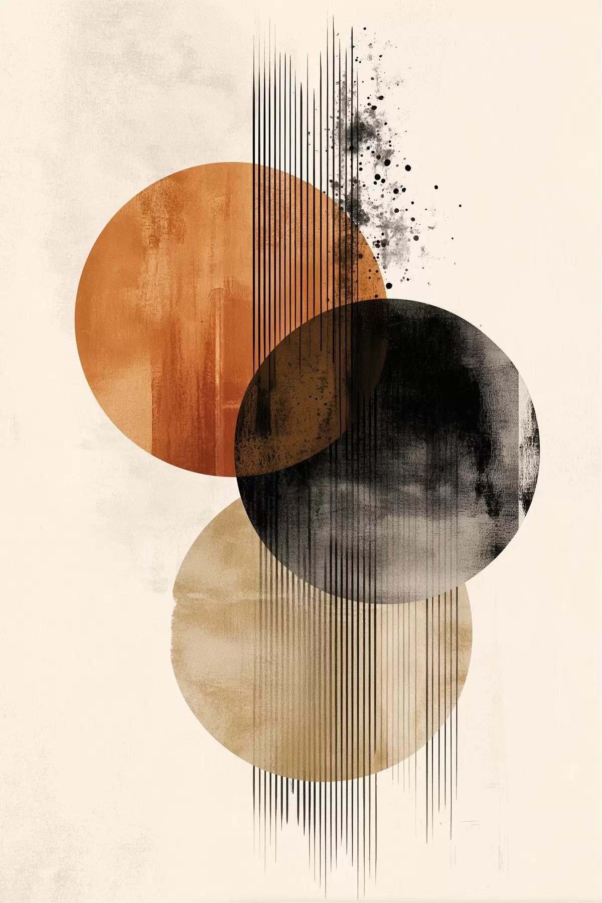 murales Tres círculos texturizados con líneas en una paleta de colores terracota y negro s45885