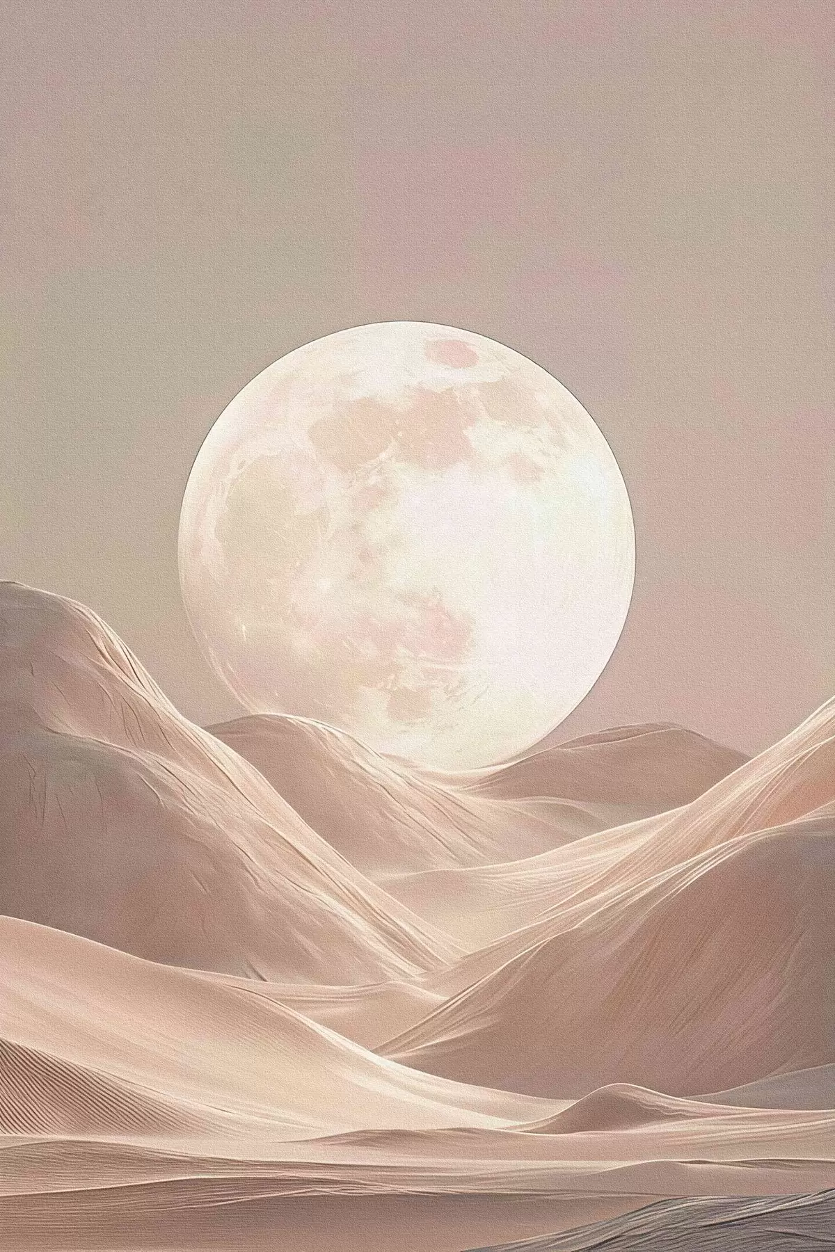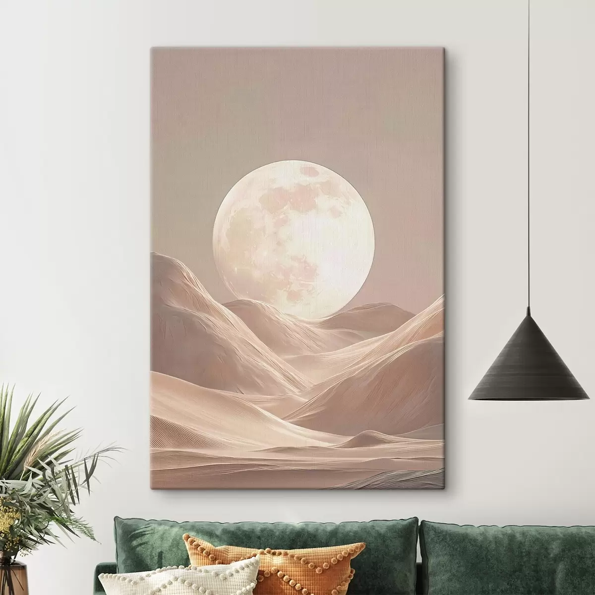 murales Luna sobre dunas arenosas en tonos rosados s45892