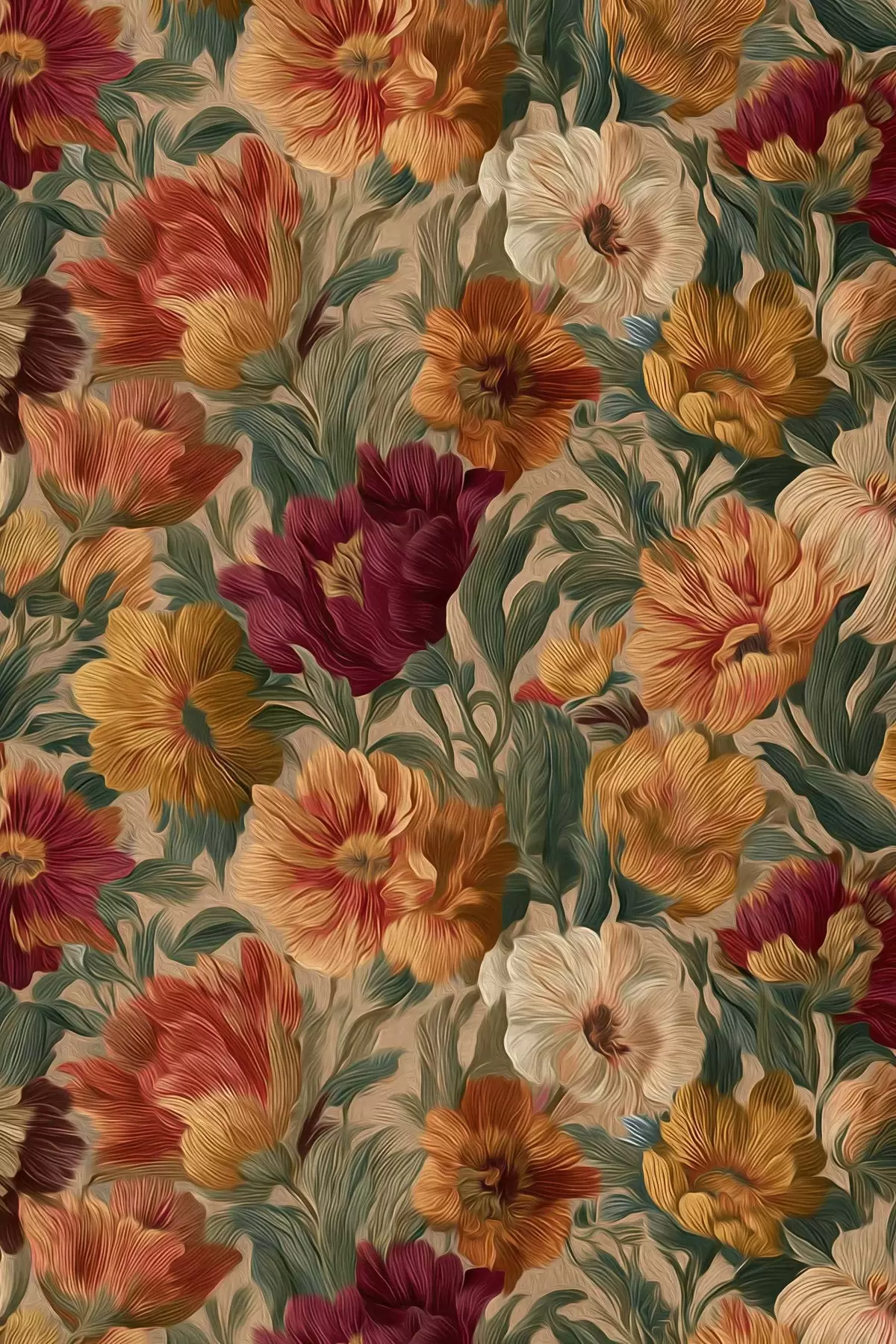 murales Estampado floral vintage en una paleta de colores cálidos s45896
