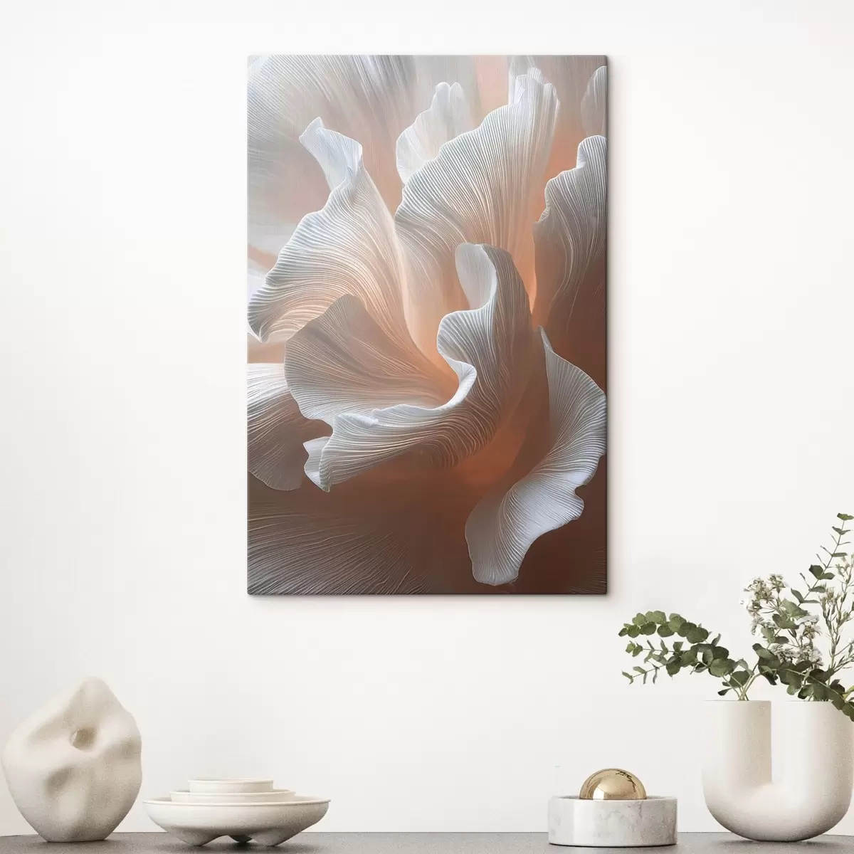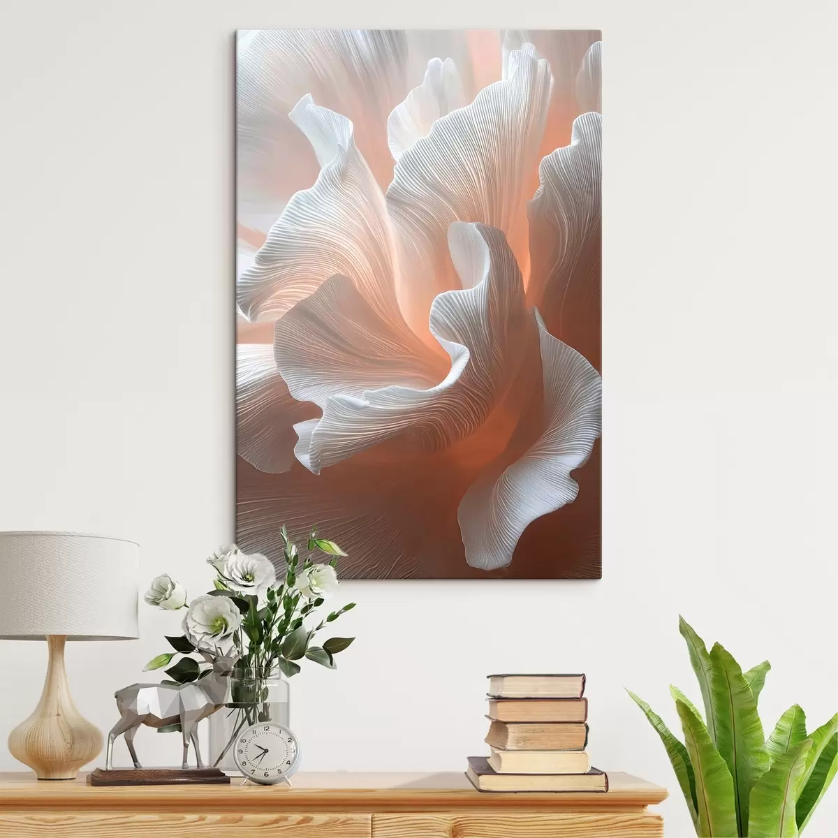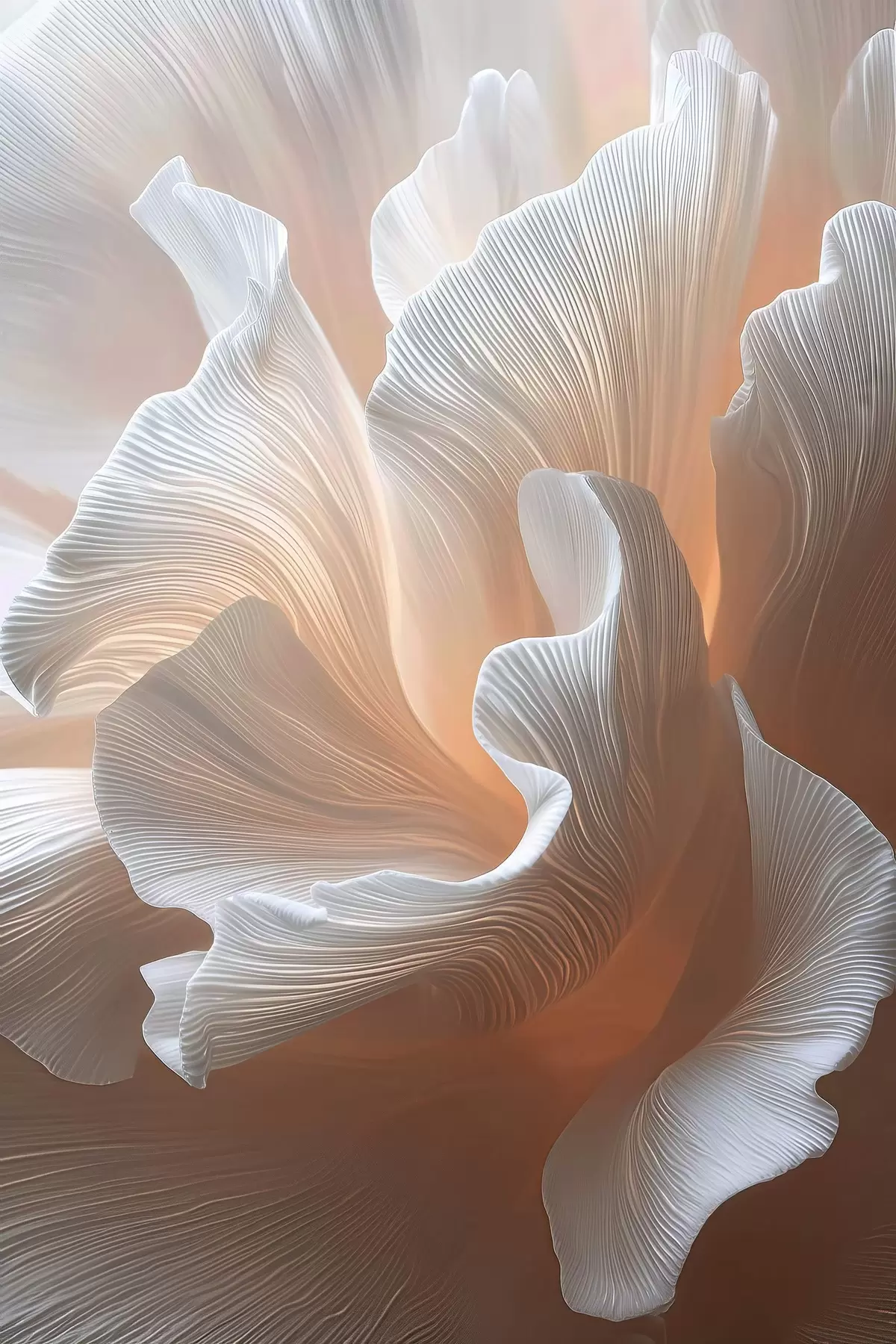 murales Pétalos blancos y vaporosos con un cálido brillo melocotón s45909