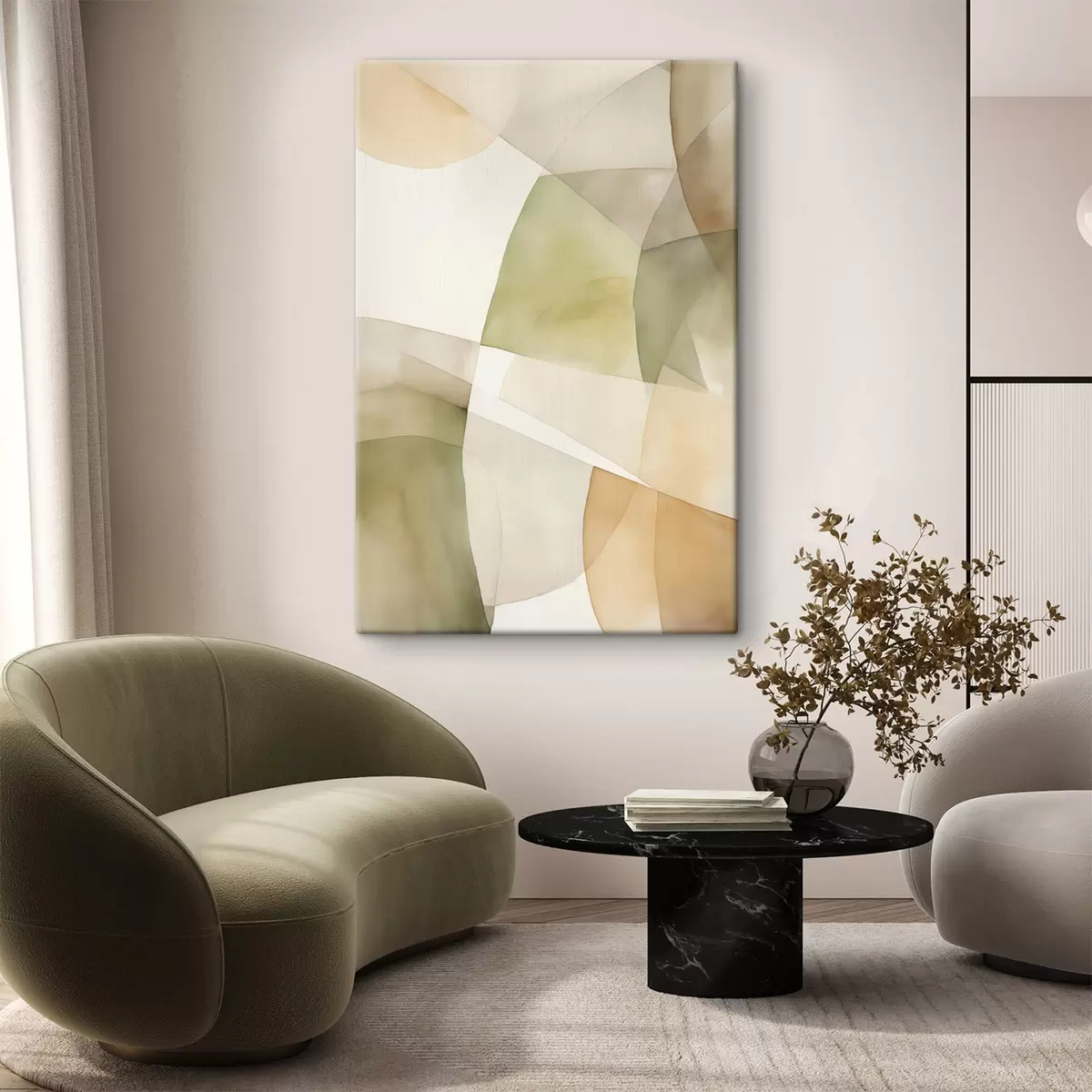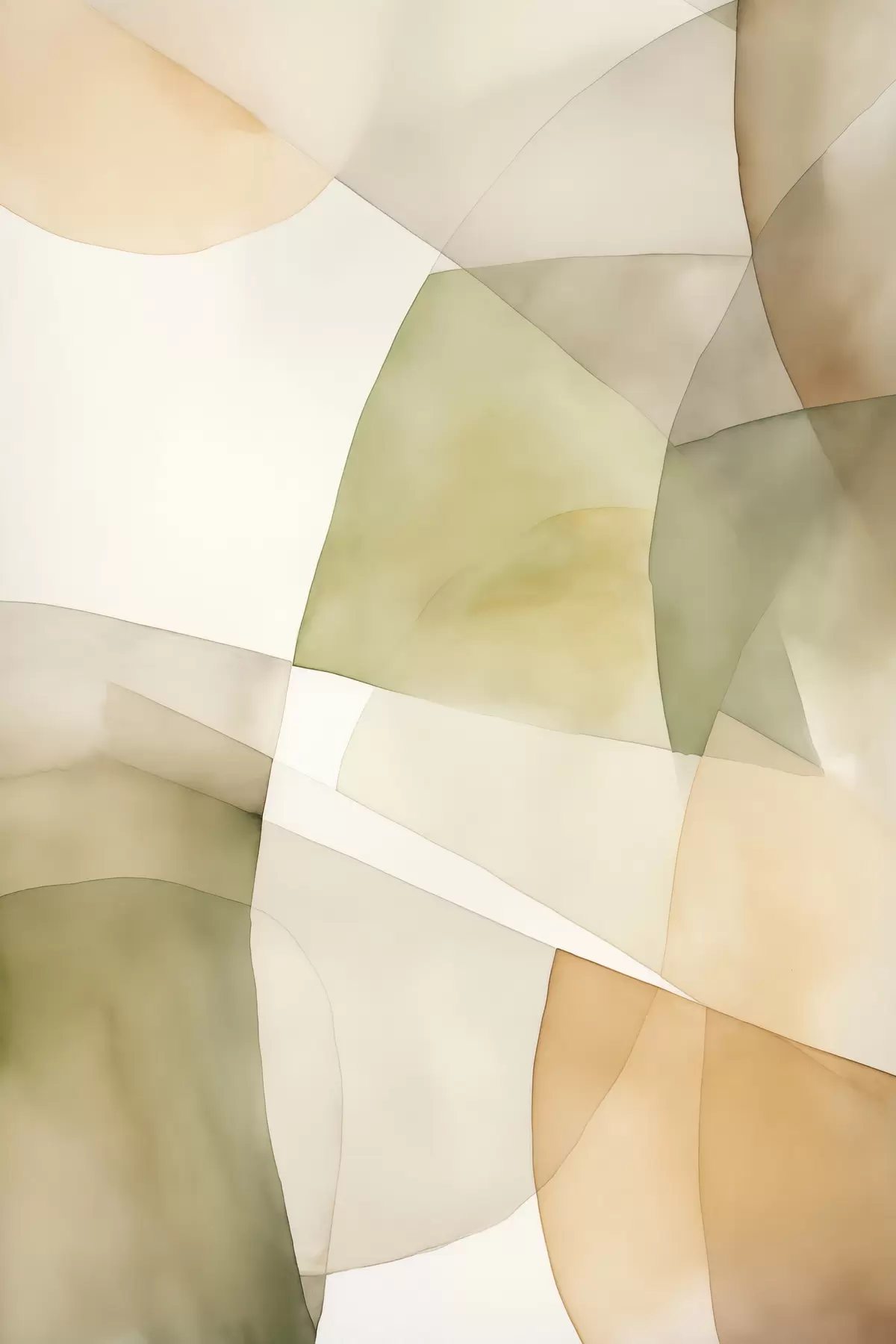 murales Formas geométricas abstractas con textura de acuarela en tonos verdes, marrones y beiges s45928