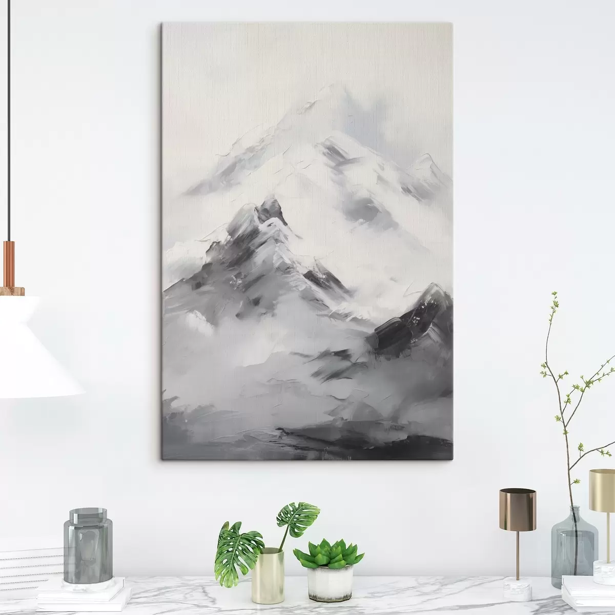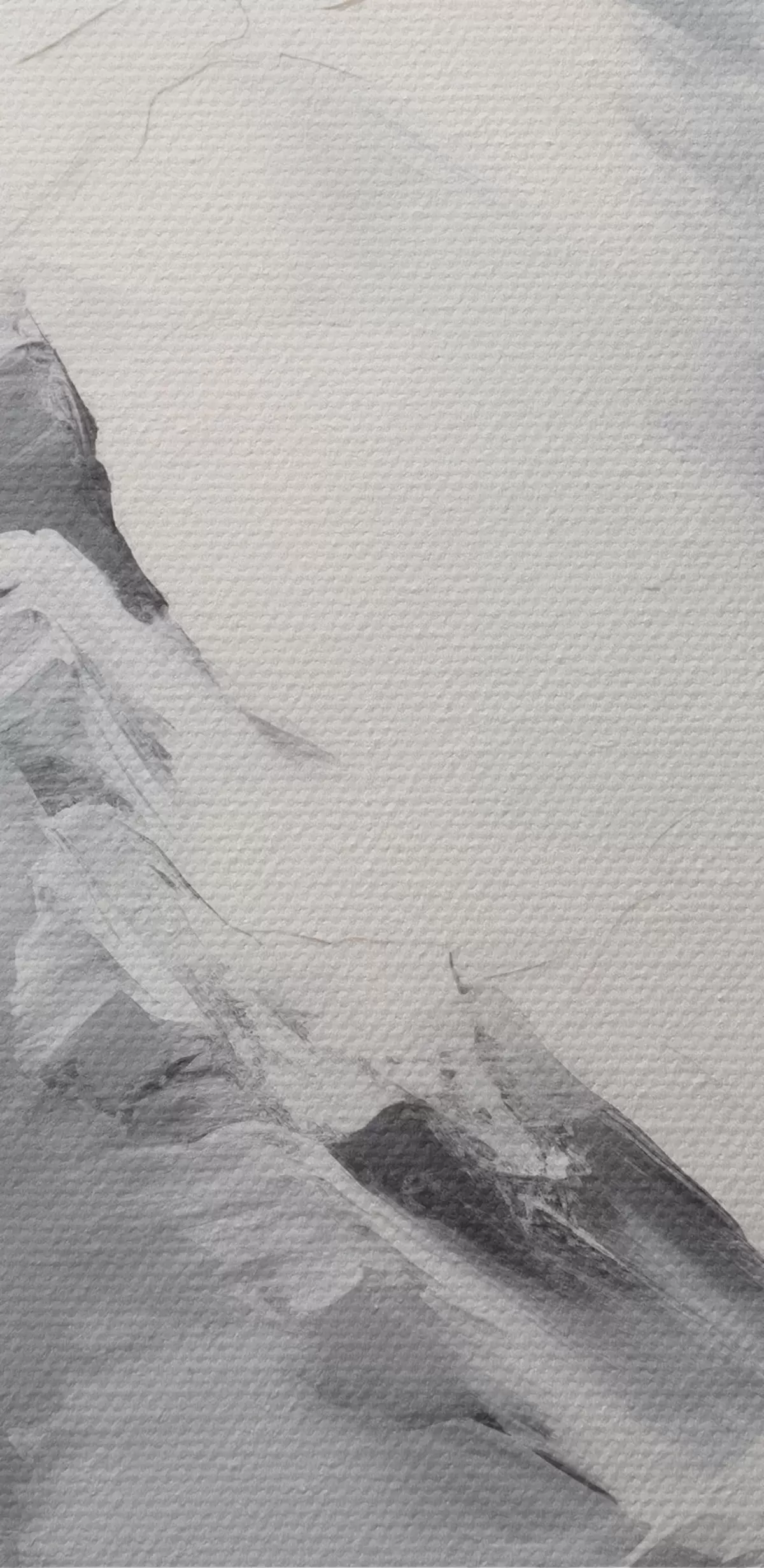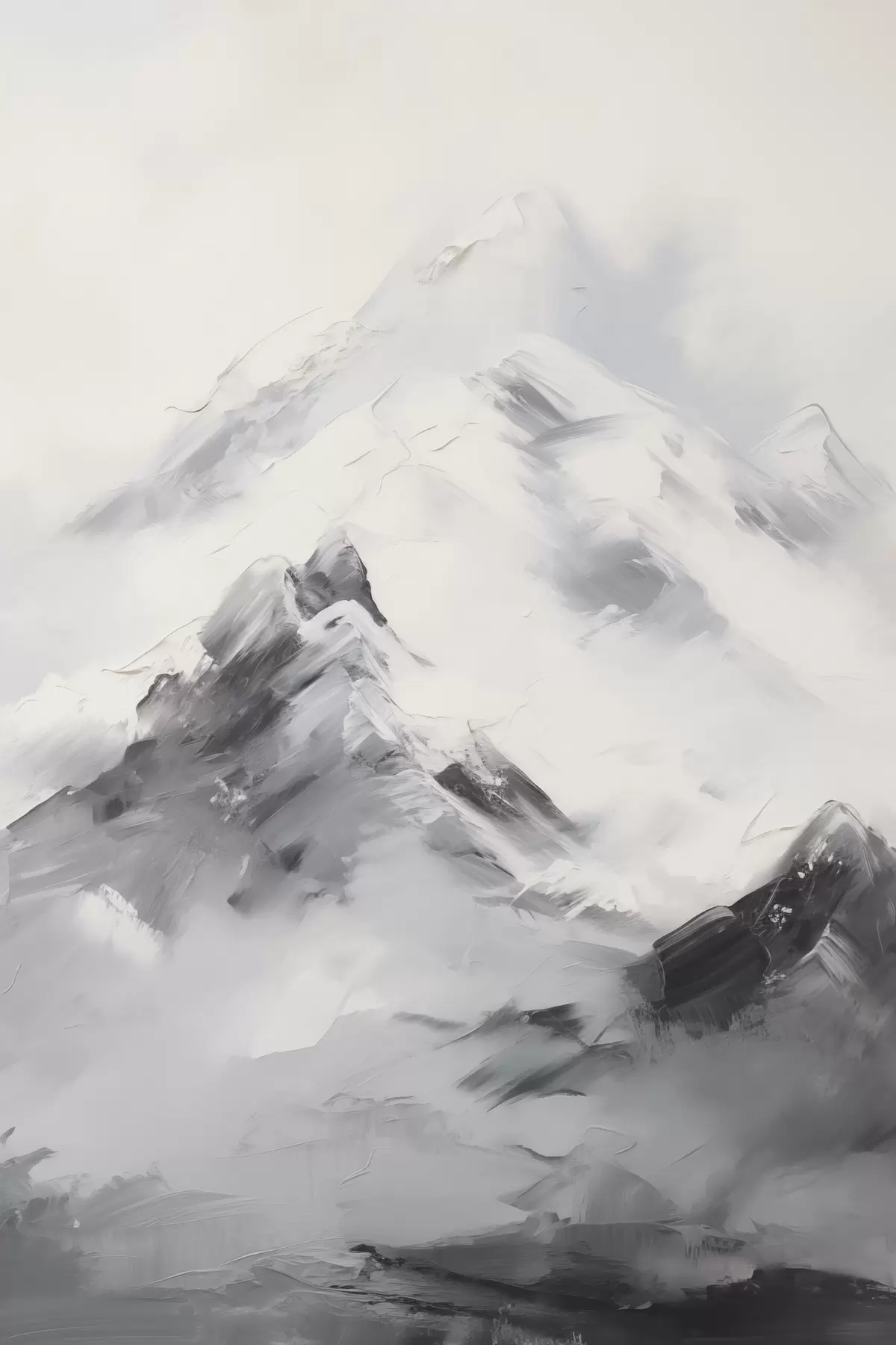 murales Cumbres nevadas con sombras grises, cielo gris, pinceladas, texturizado, minimalista s45933