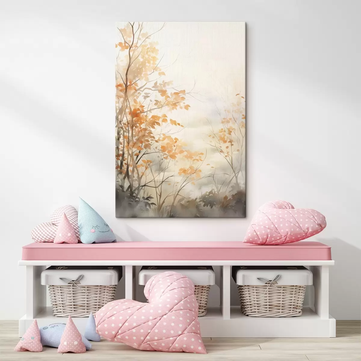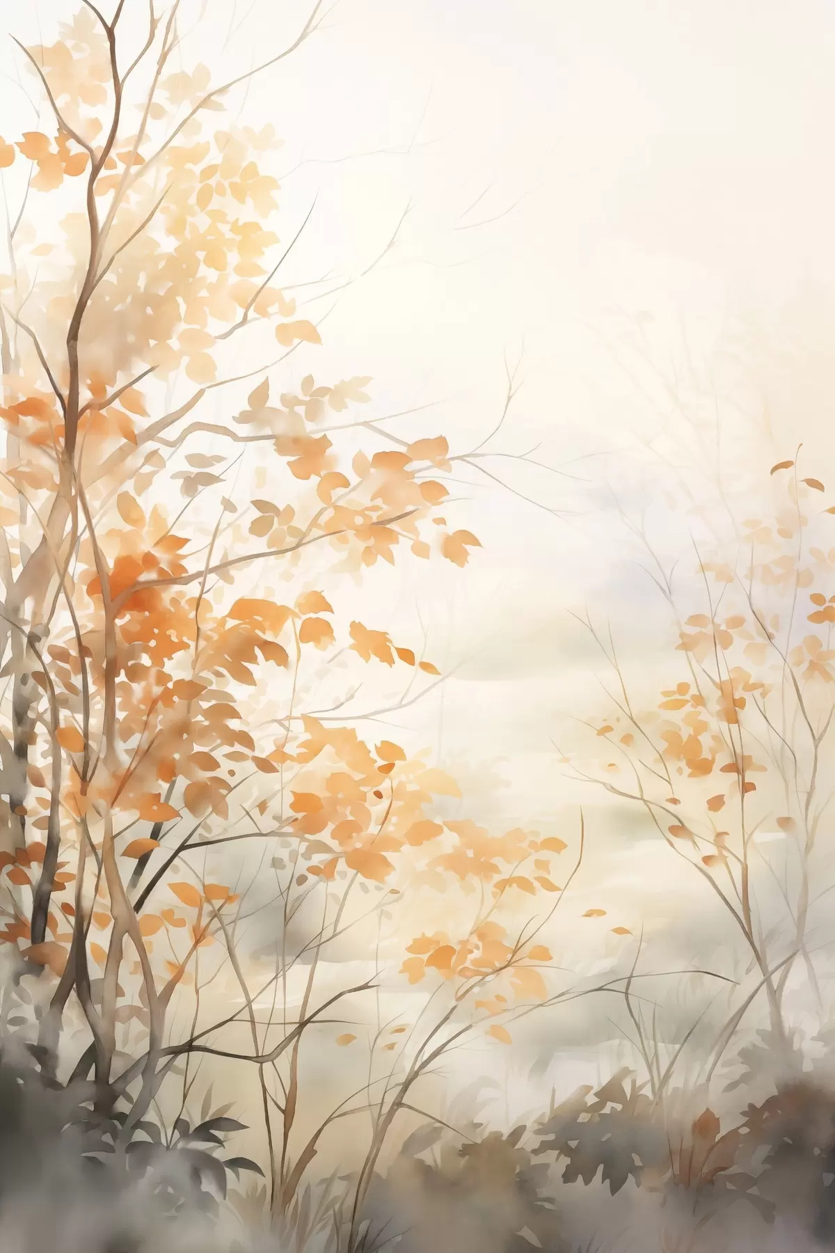 murales Árboles otoñales con hojas y ramas anaranjadas, estilo acuarela suave, pinceladas delicadas s45941