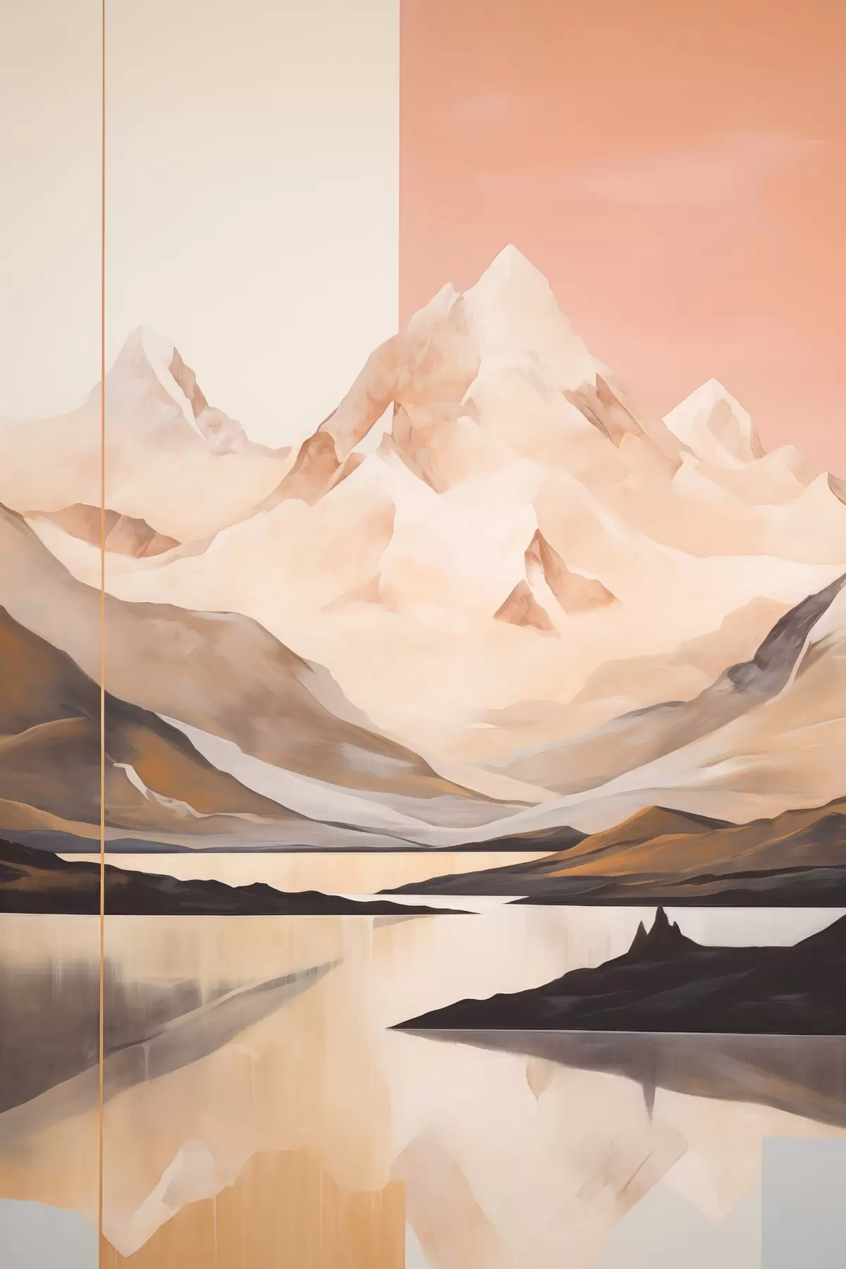 murales Paisaje abstracto con montañas y un lago, colores pastel, estilo minimalista s45949