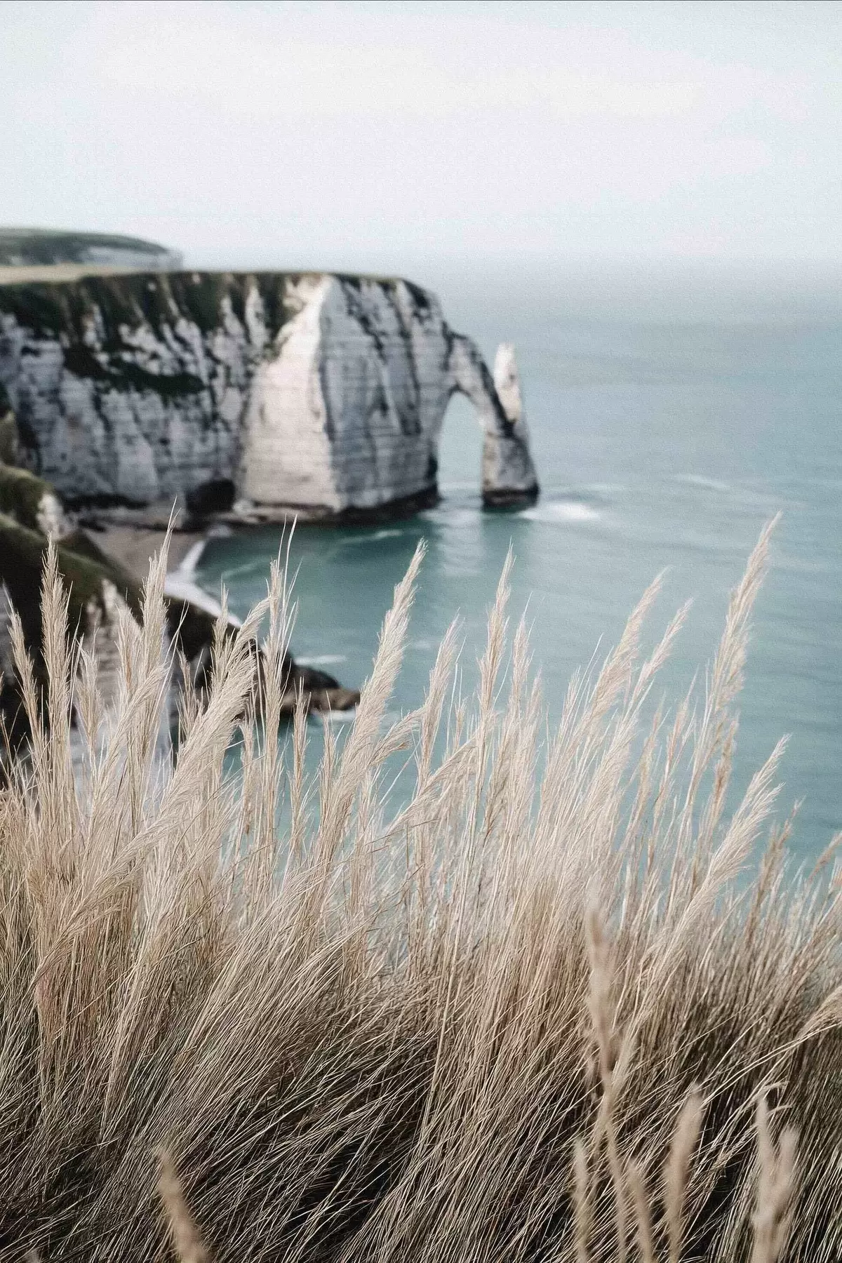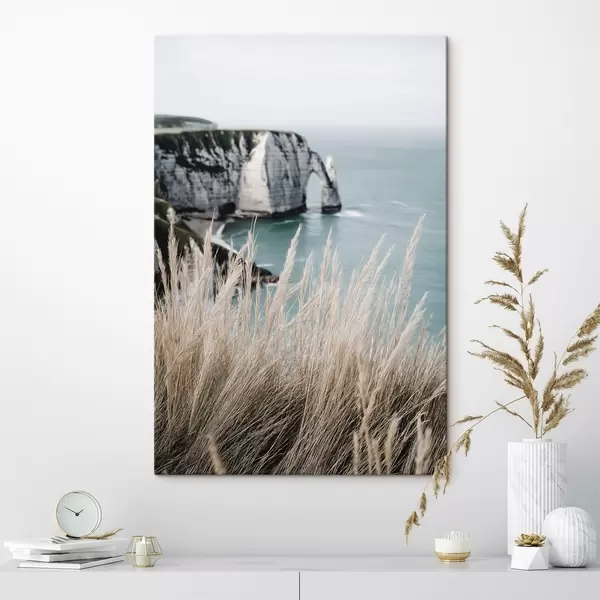 murales Mar y arco de roca, vista a través de la hierba seca s46142