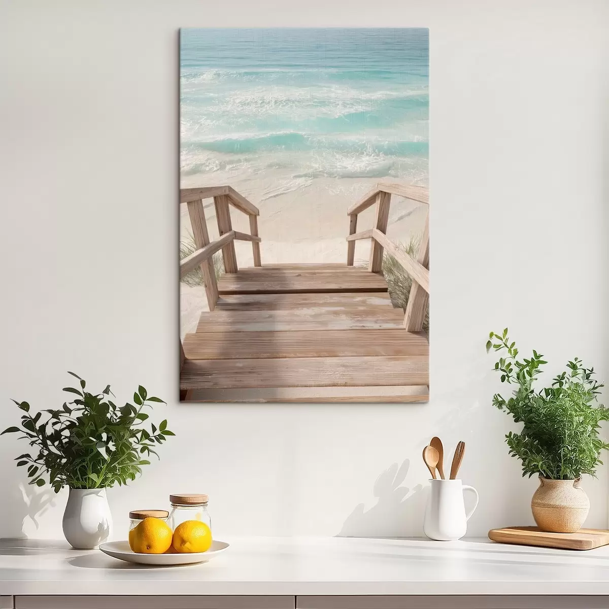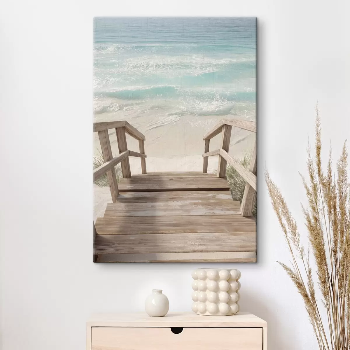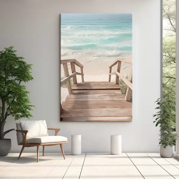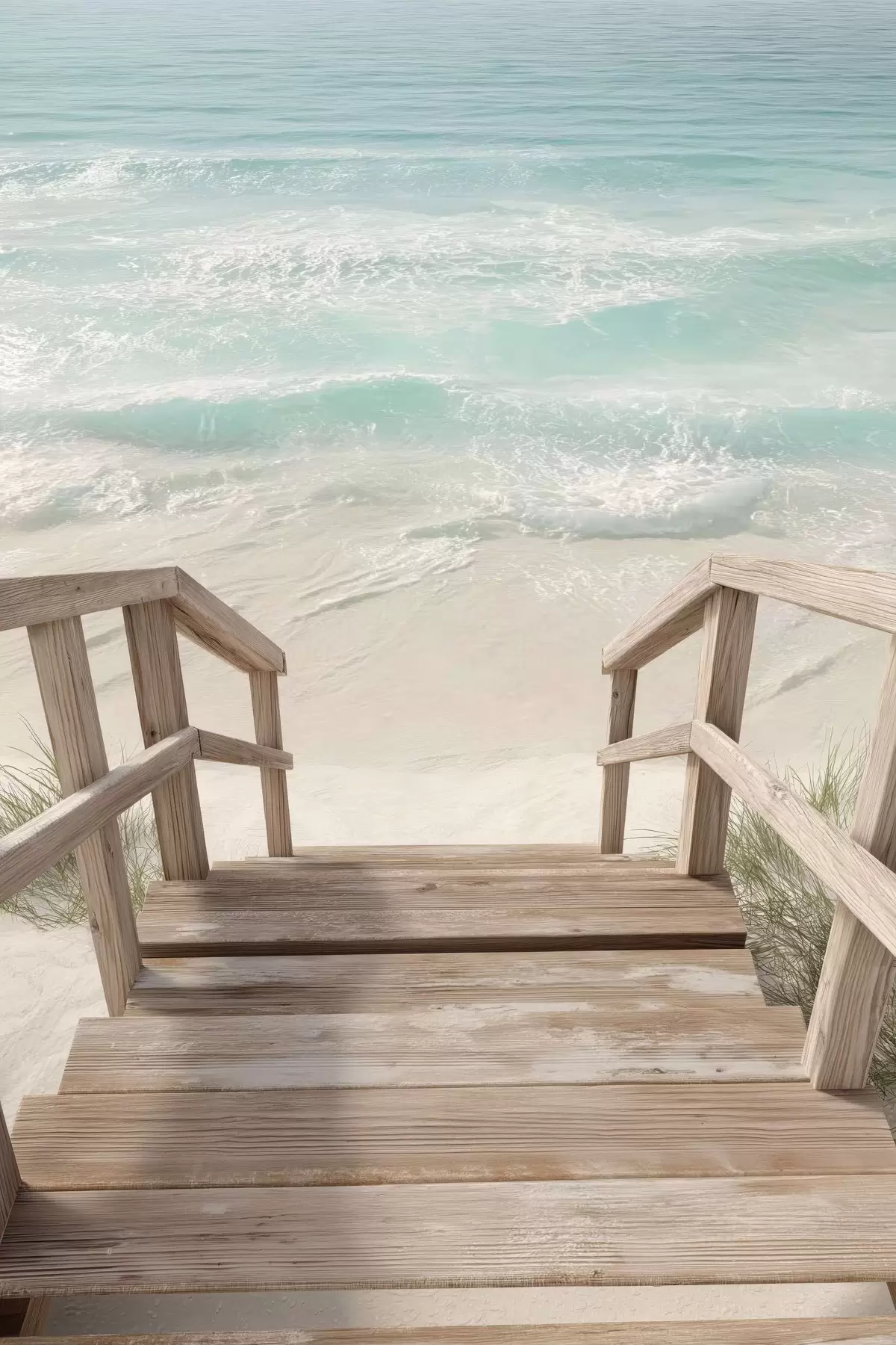 murales Escaleras de madera que conducen a una playa turquesa s46163
