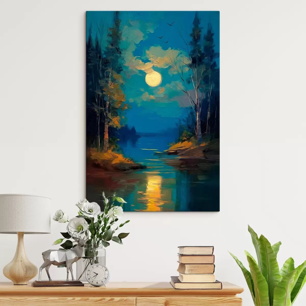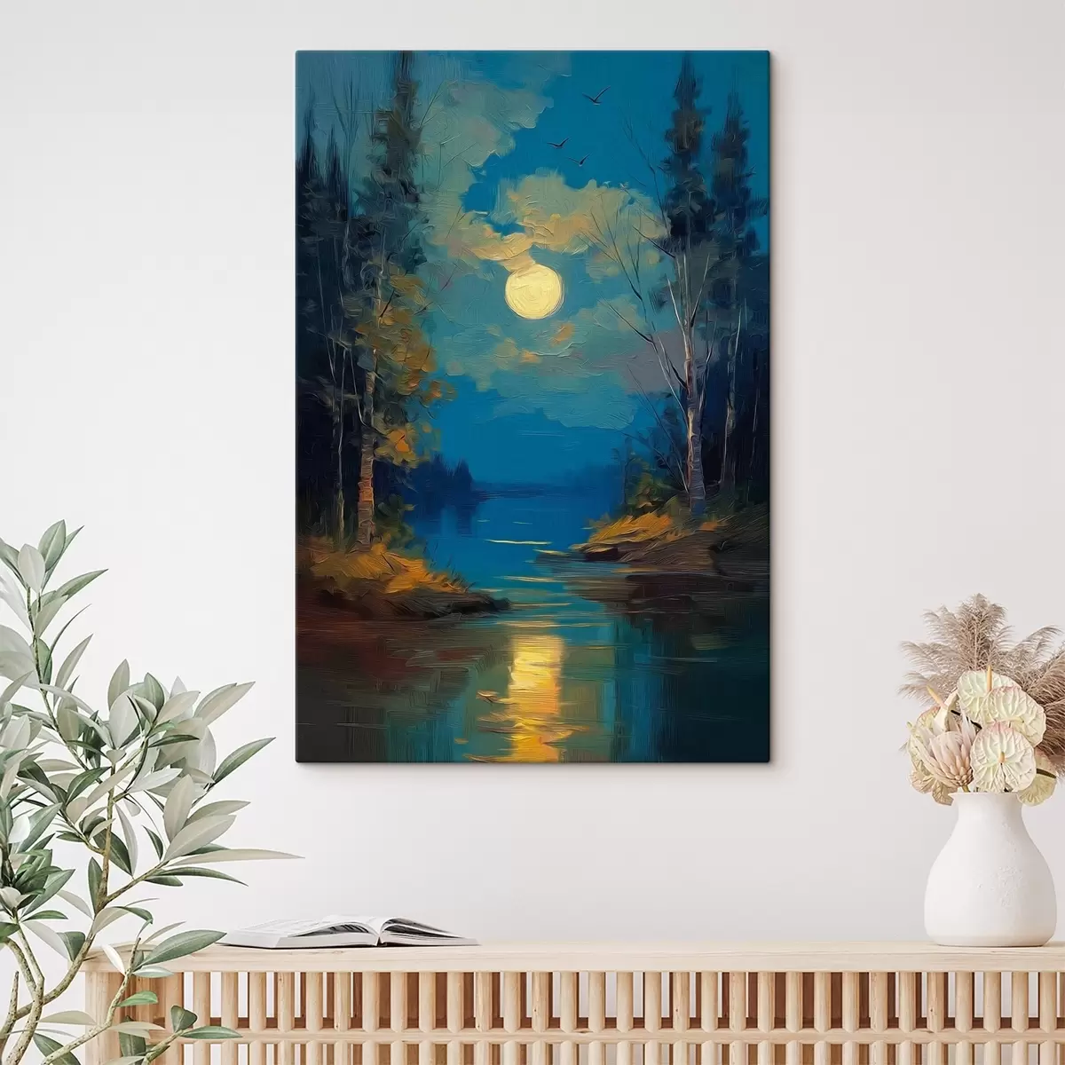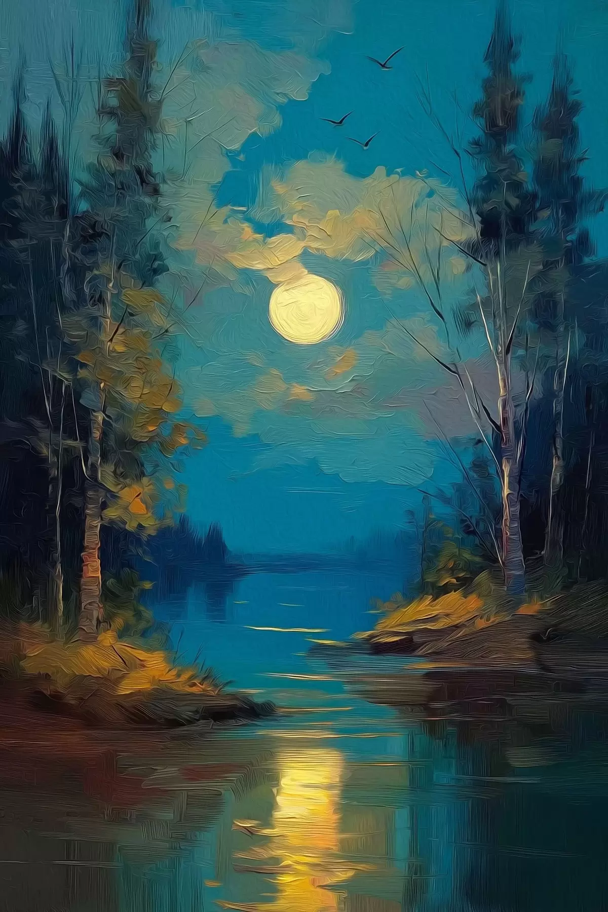 murales Luz de luna sobre un río tranquilo entre pinos s46164