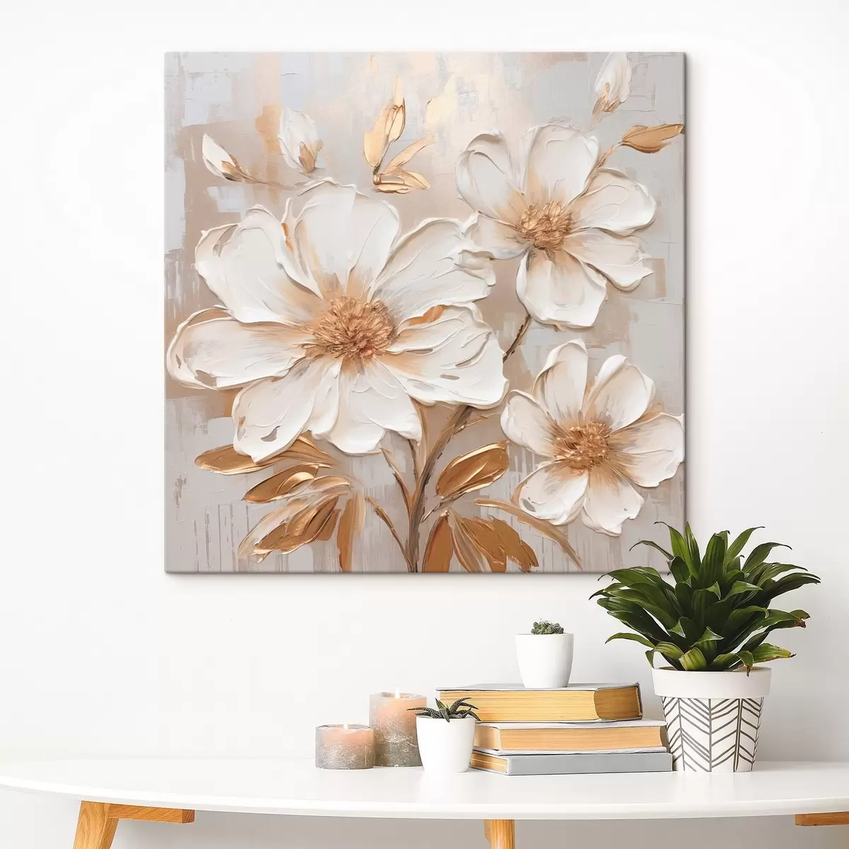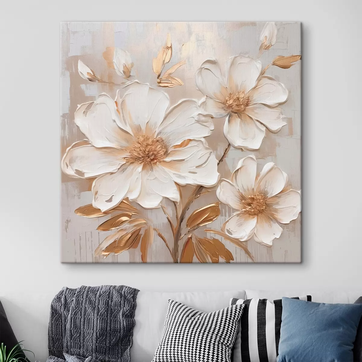 murales Flores con textura sobre un fondo claro con tonos cálidos s46166