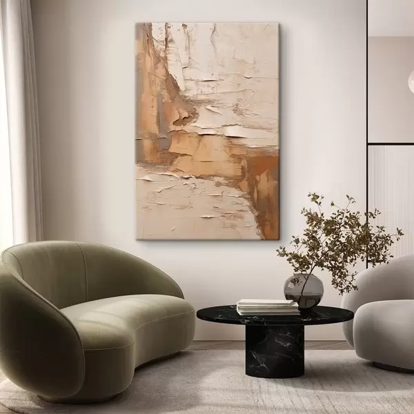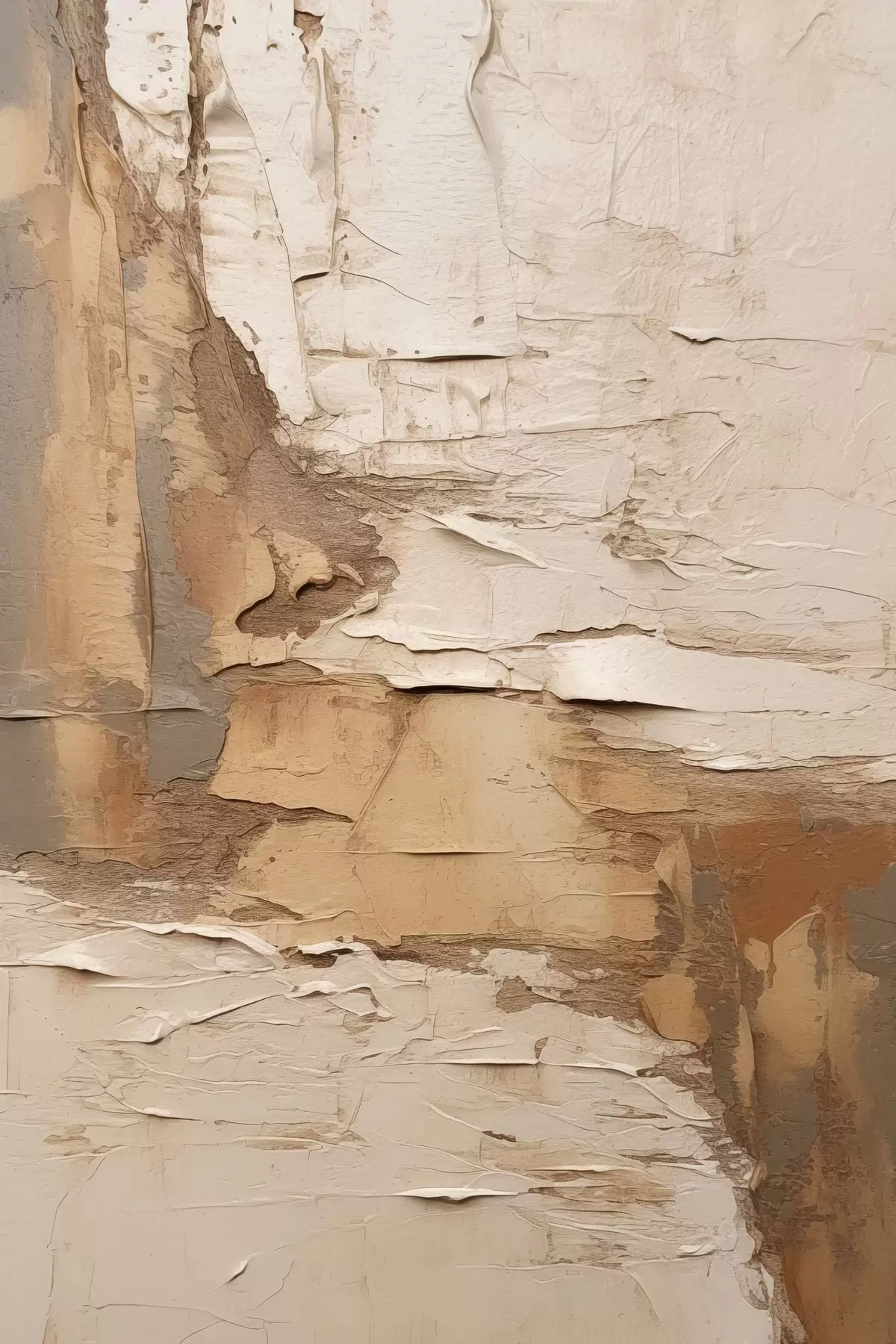 murales Pintura abstracta con pinceladas gruesas, tonos beige y marrones, superficie texturizada, paleta de colores neutros s46273