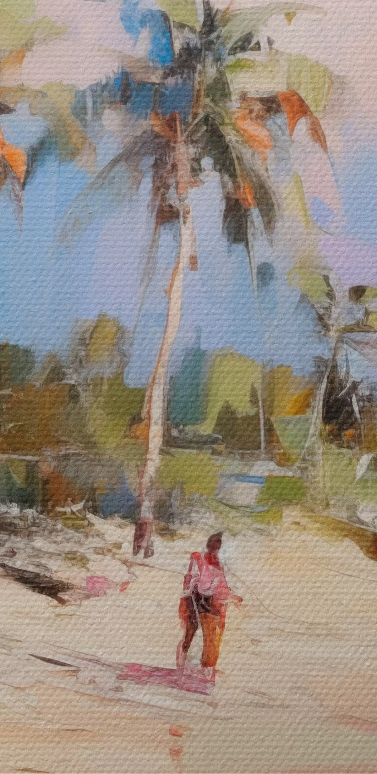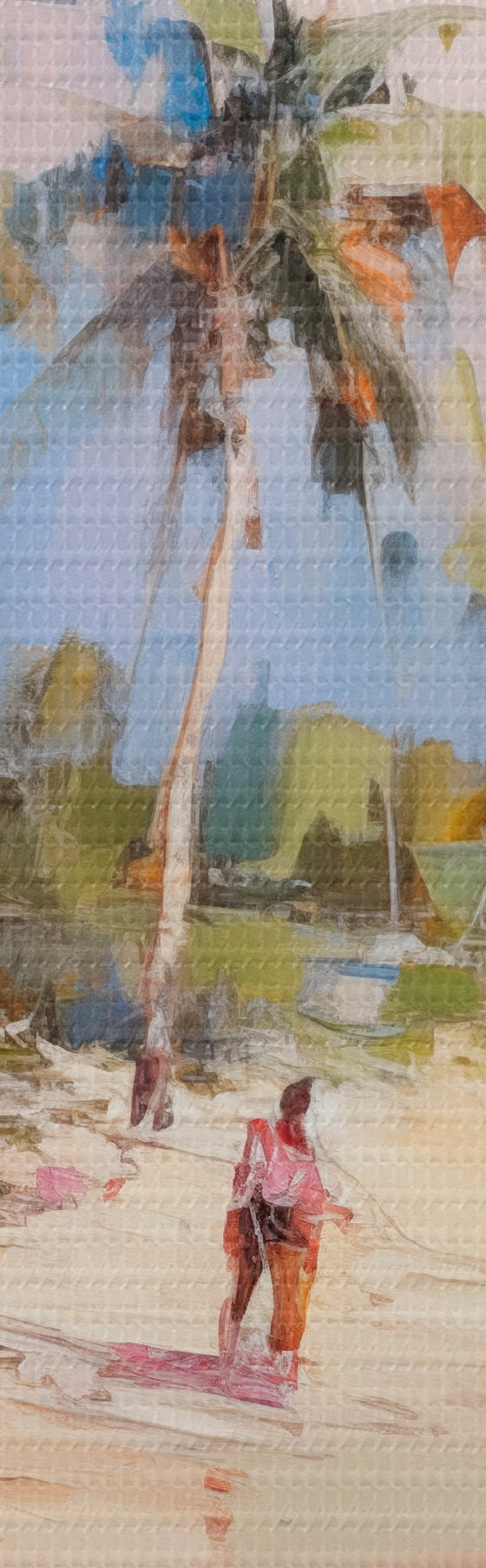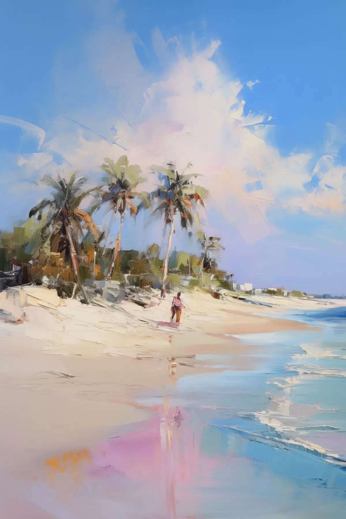 murales Paisaje abstracto, una playa con palmeras, un día soleado con un cielo azul y algunas nubes s46284