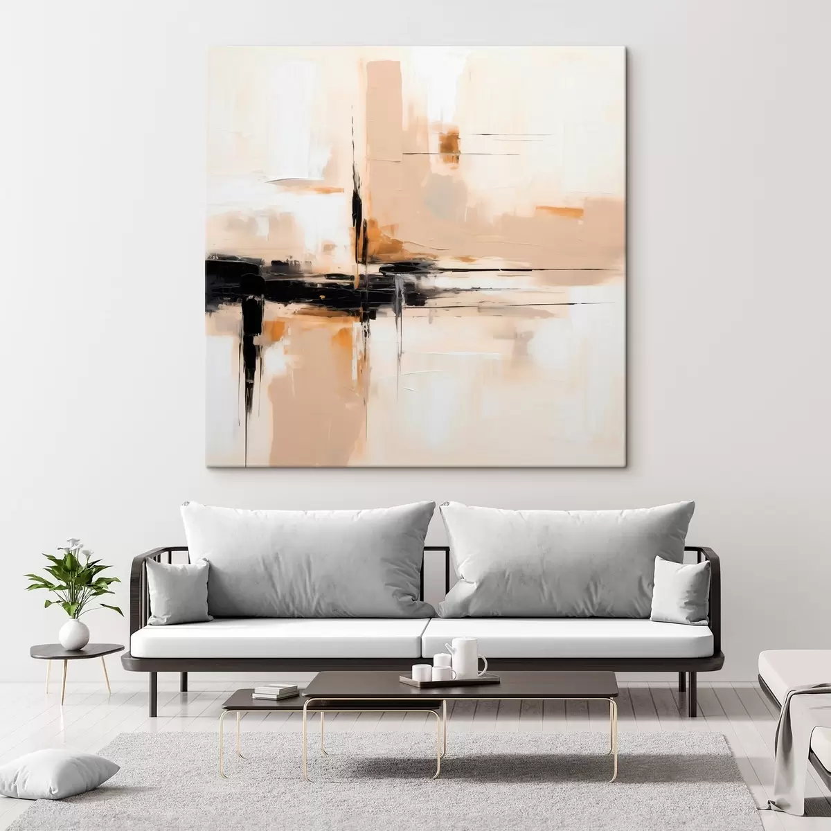 murales Beige y negro, abstracción vertical en estilo minimalista s46326