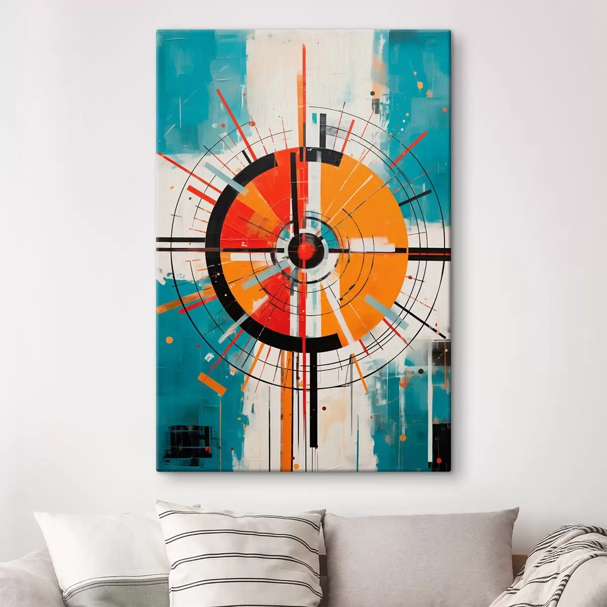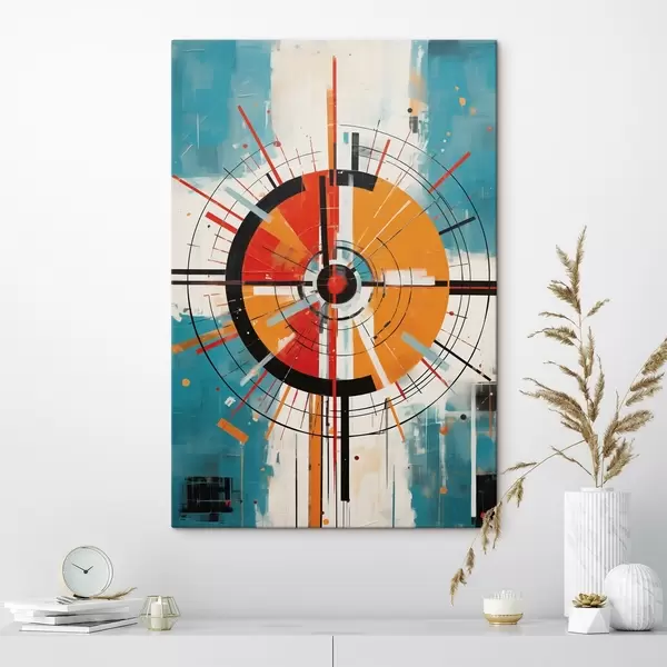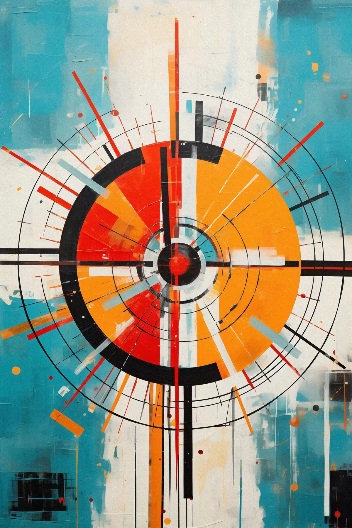 murales Blanco concéntrico con segmentos verde azulado y naranja s46486