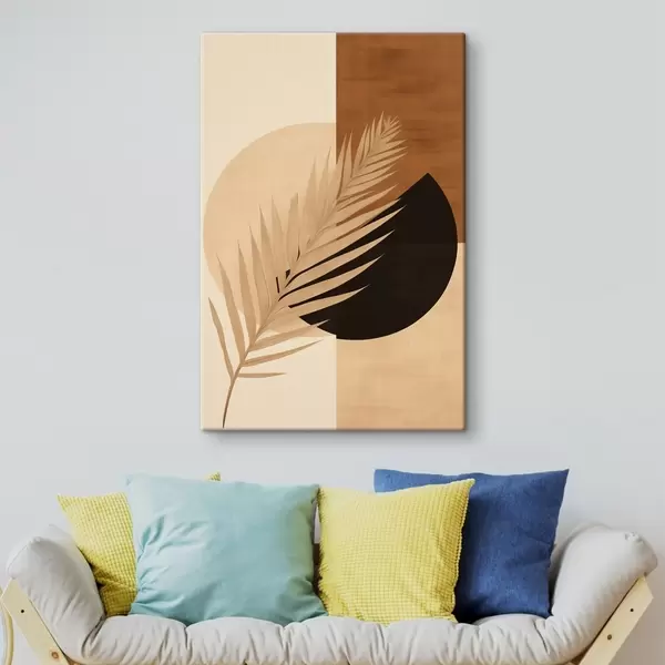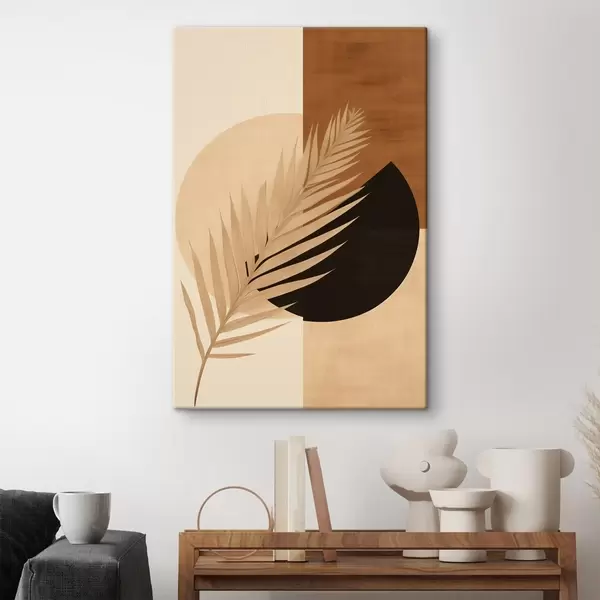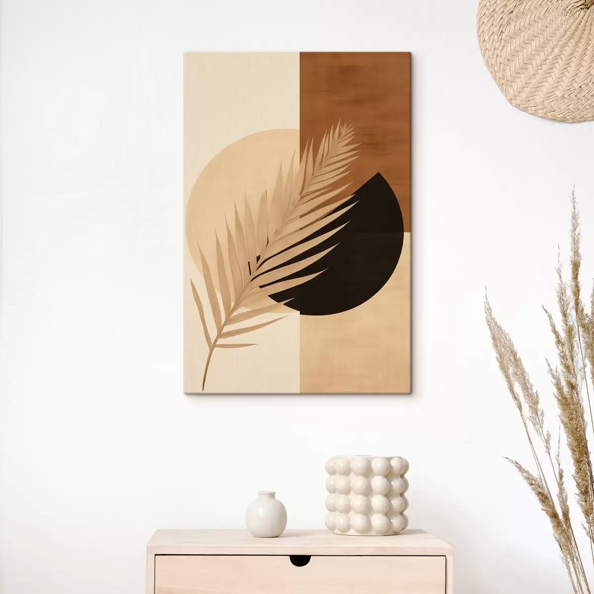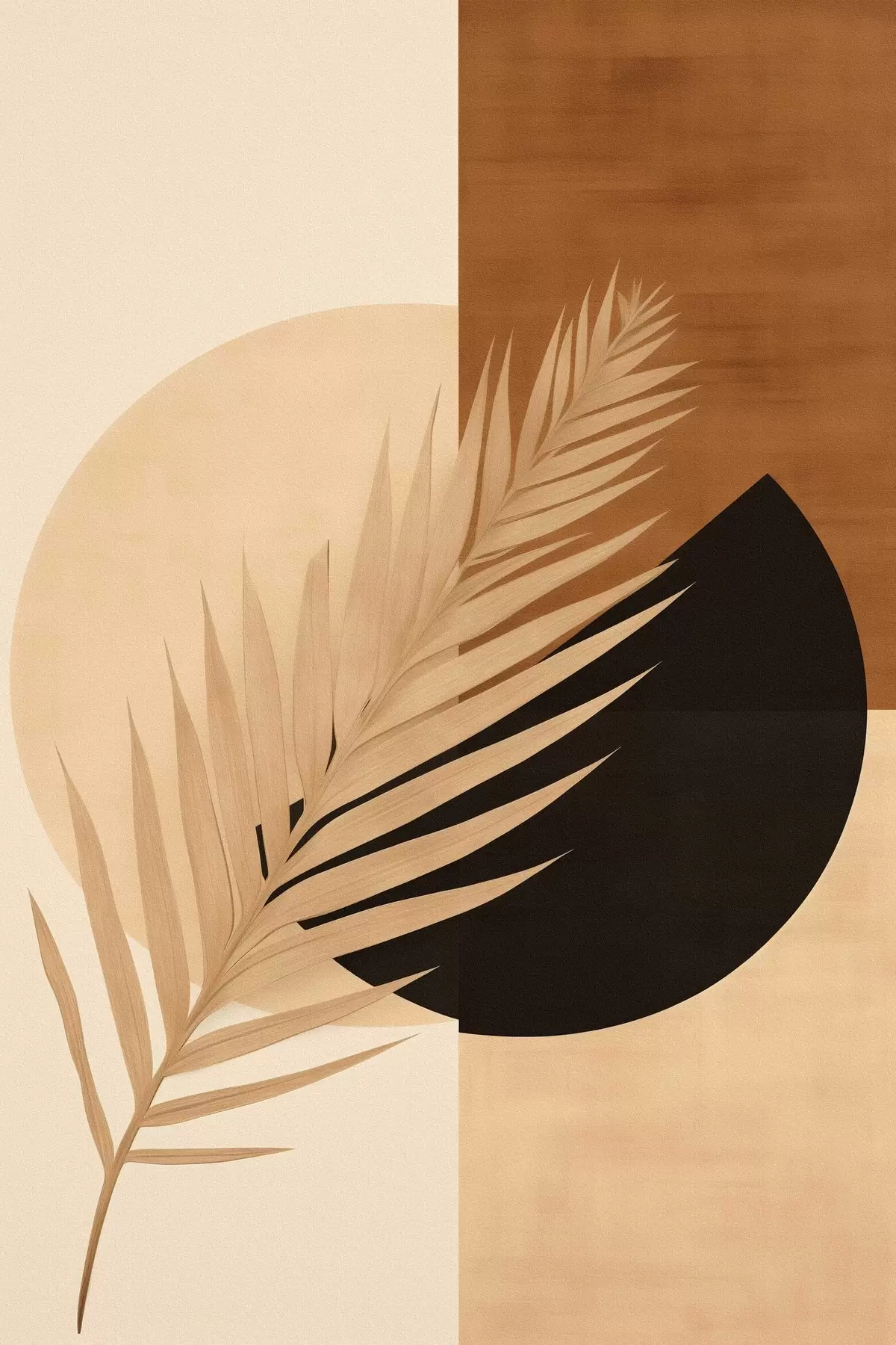 murales Hoja de palmera sobre geometría en terracota y crema s46490