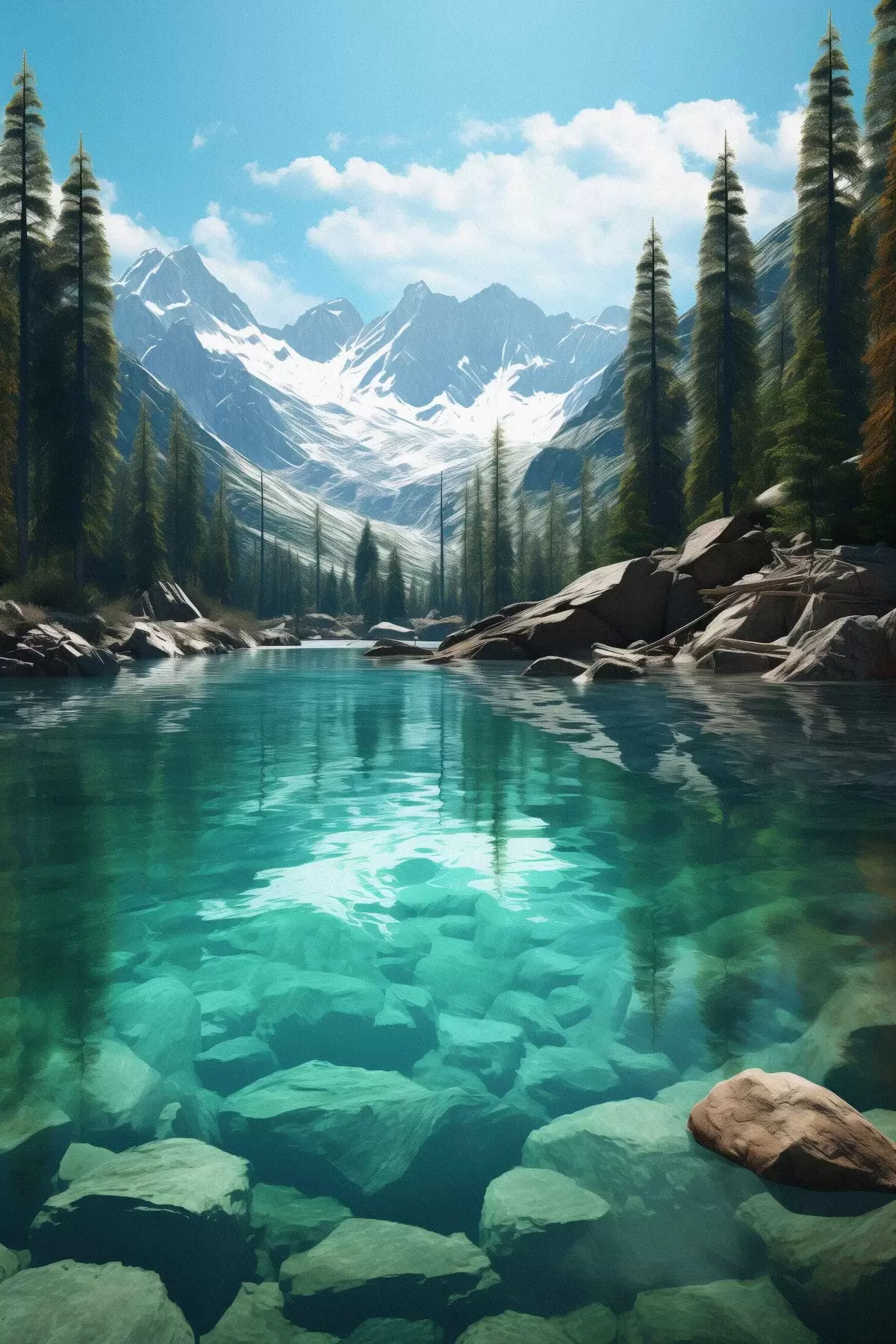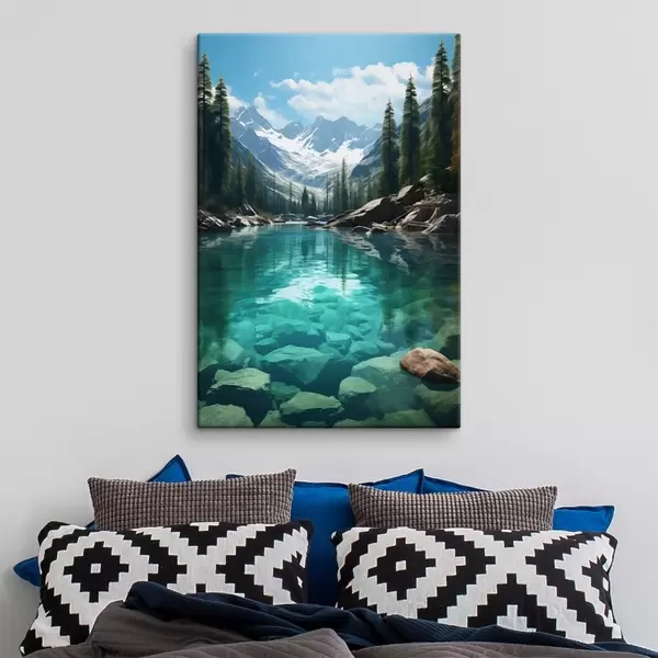 murales Río alpino cristalino con lecho rocoso y picos nevados s46514