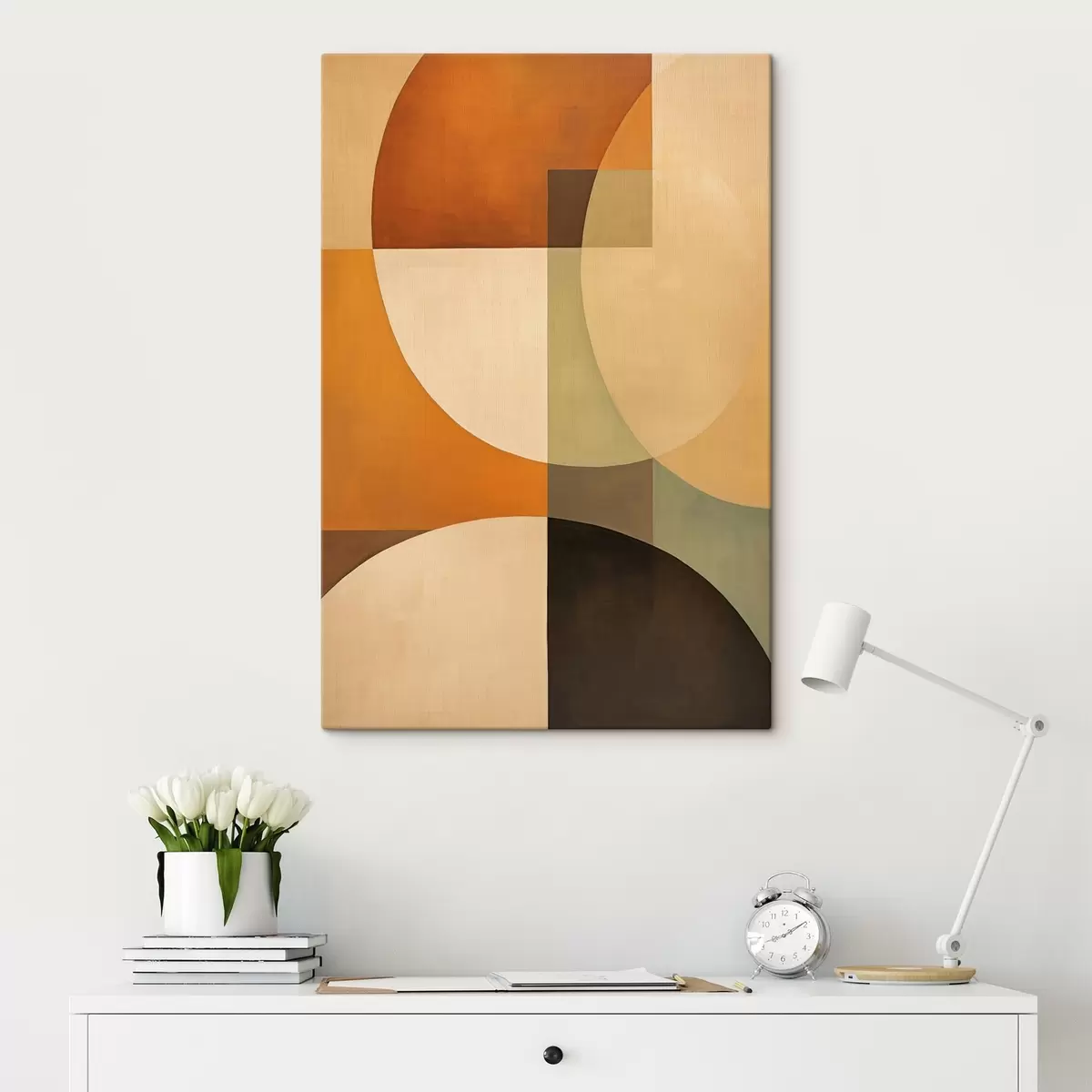 murales Grandes formas entrecruzadas en tonos terracota y oliva s46533