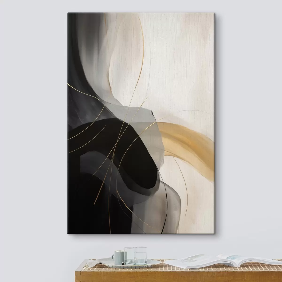 murales Suaves curvas en negro y beige con un toque cálido s46542