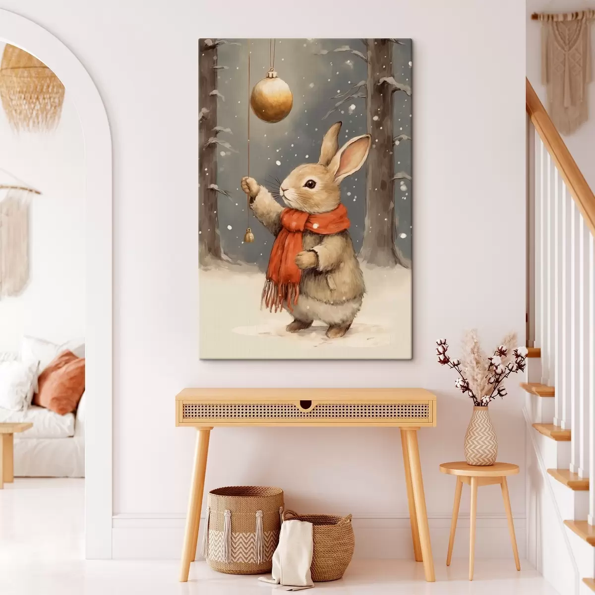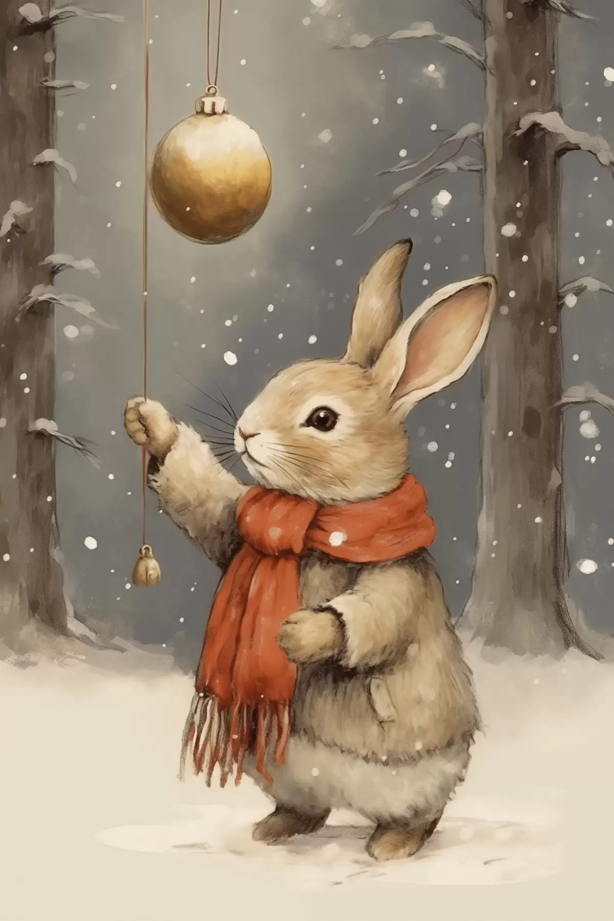 murales Liebre invernal con bufanda y adorno navideño para árbol de Navidad s46619
