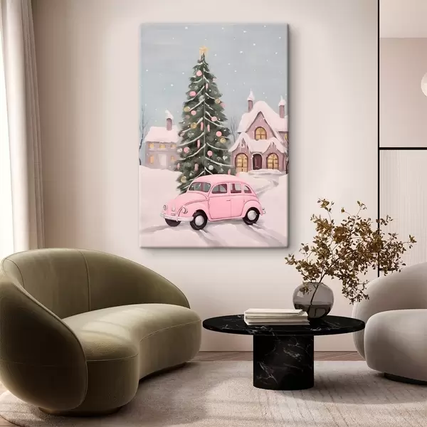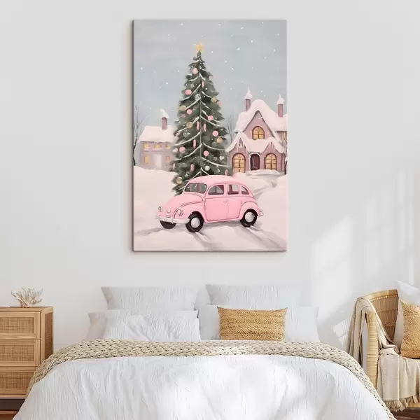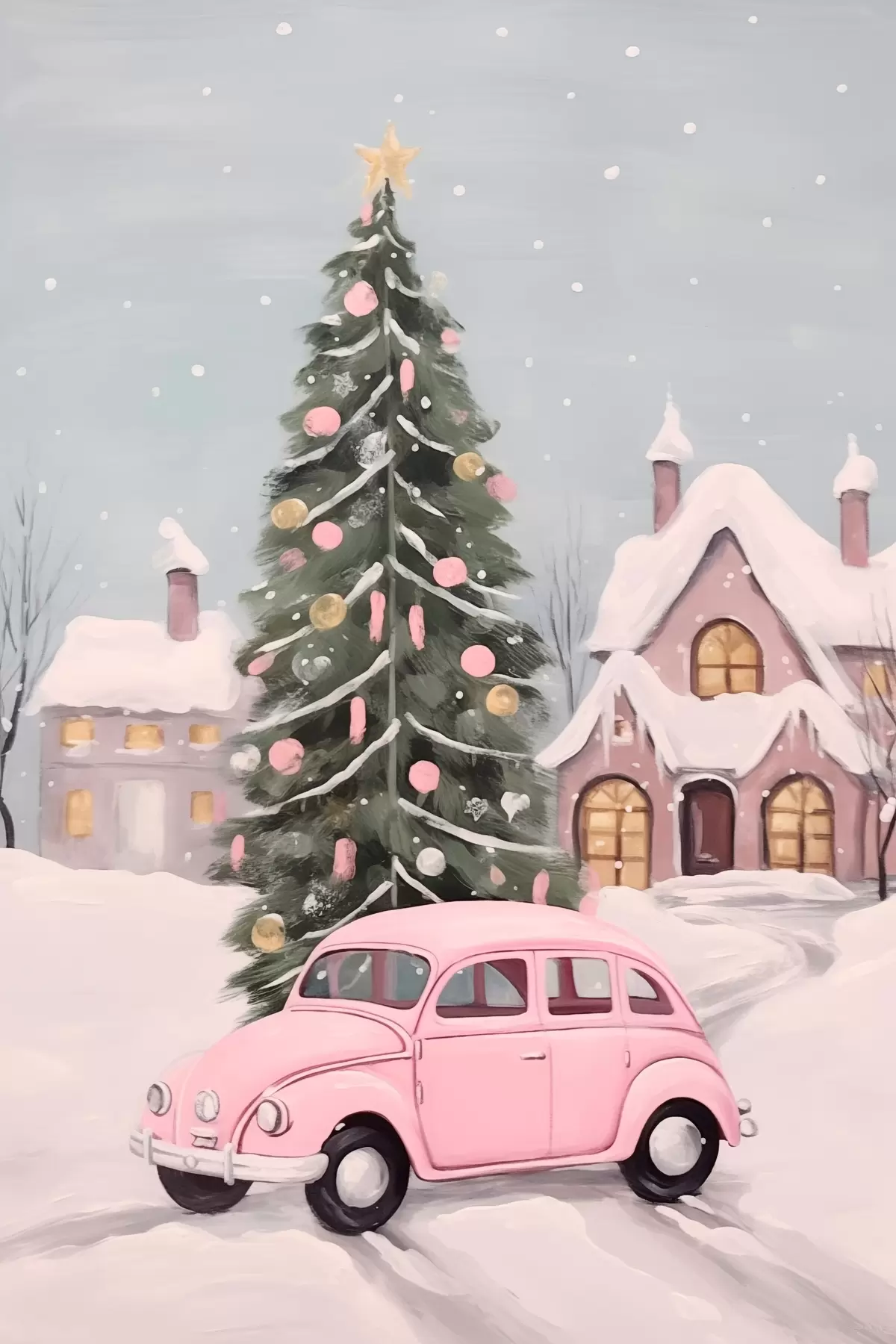 murales Coche rosa y árbol de Navidad decorado fuera de la casa s46621