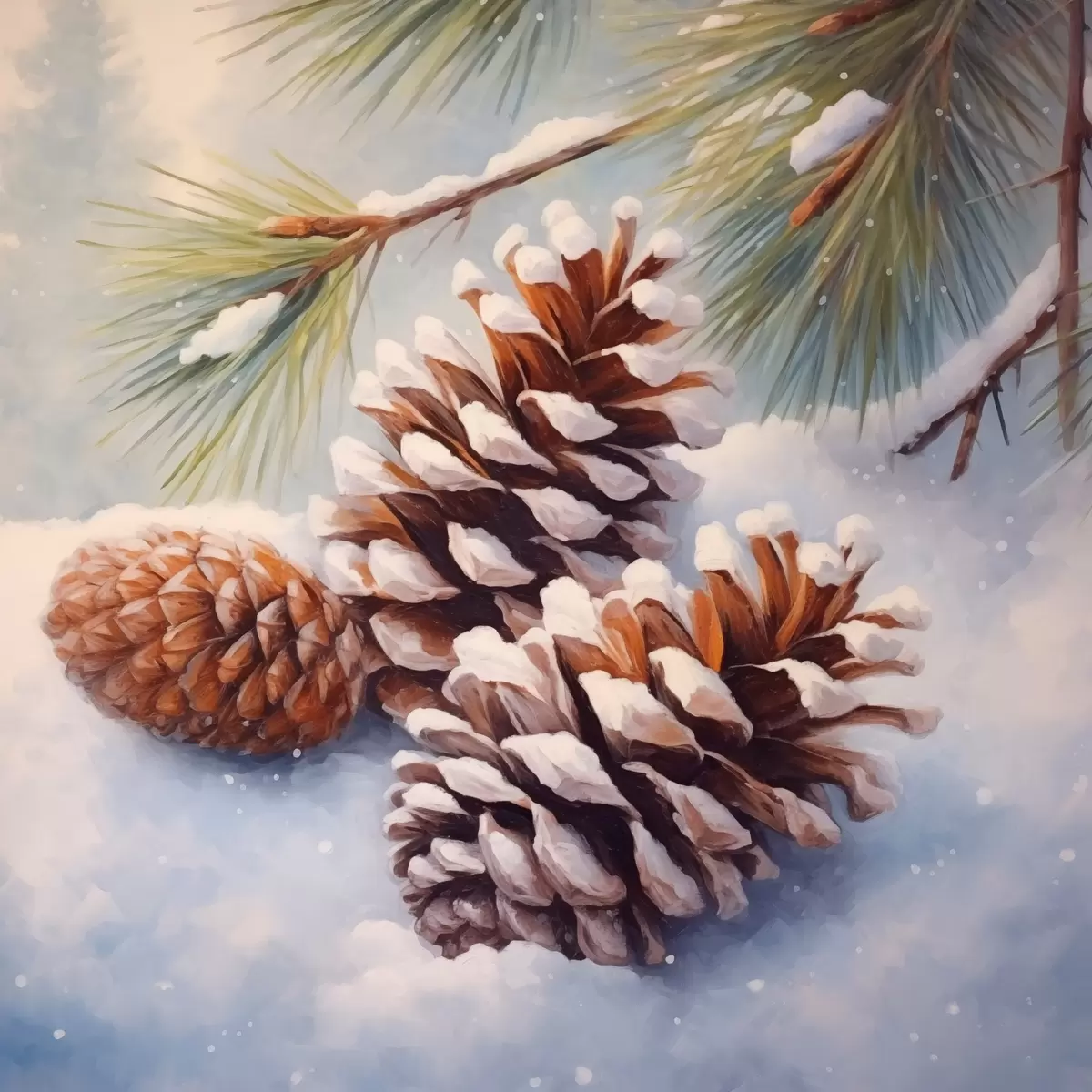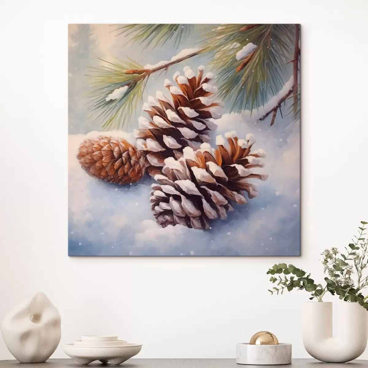 murales Piñas y ramas cubiertas de nieve s46631