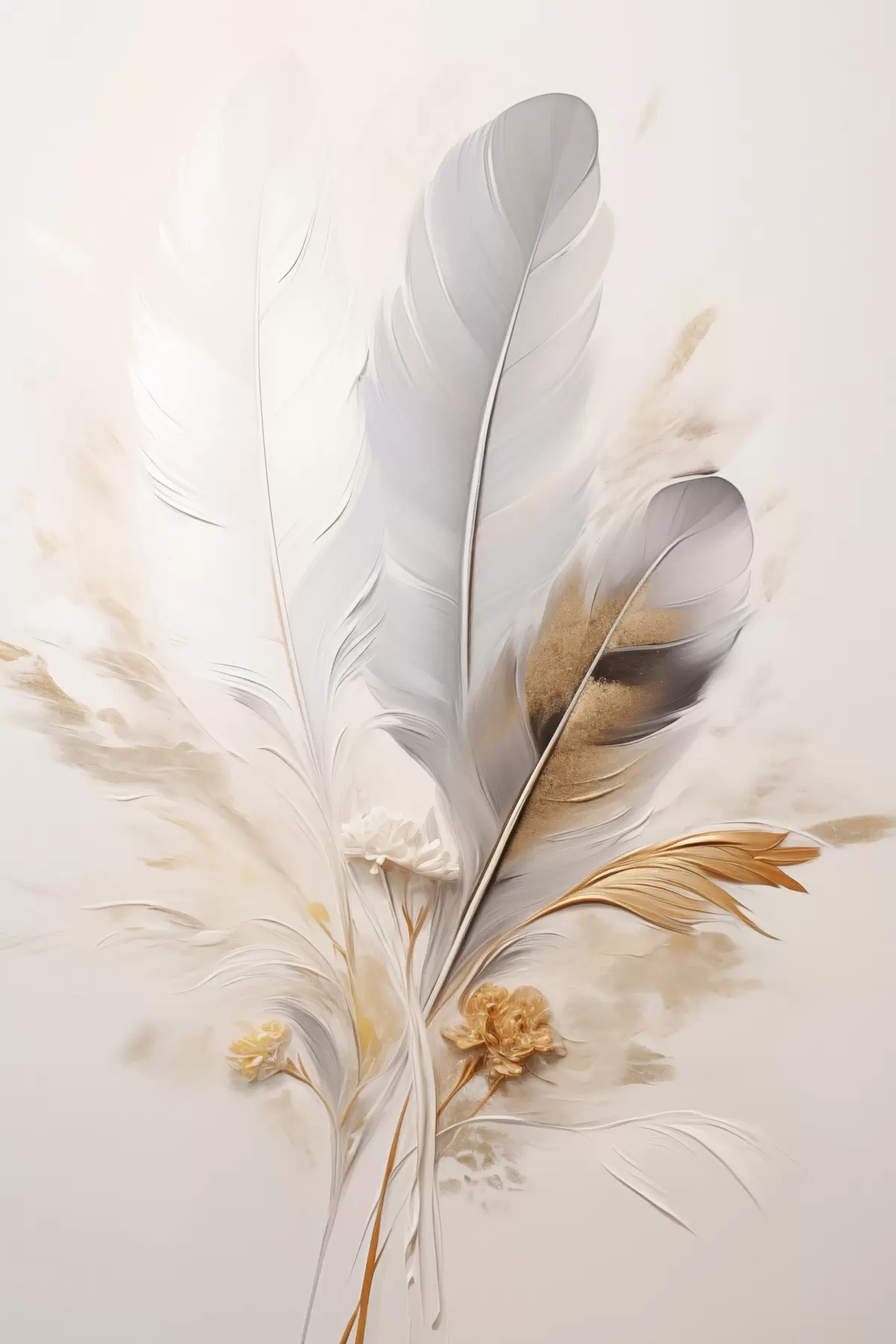 murales Plumas abstractas, rodeadas de plumas beige y marrones, suaves y delicadas, sobre un fondo beige claro s46712