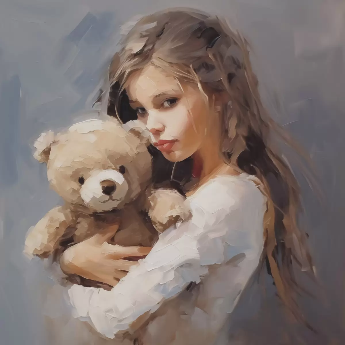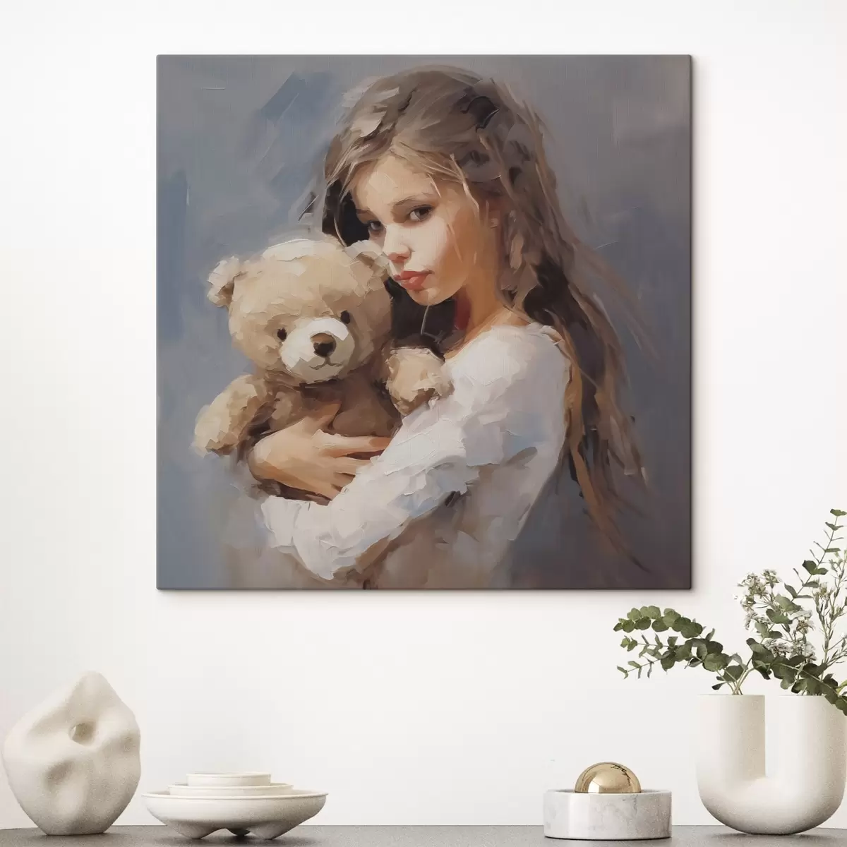 murales Niña con un oso de peluche, pintura de imitación s46746