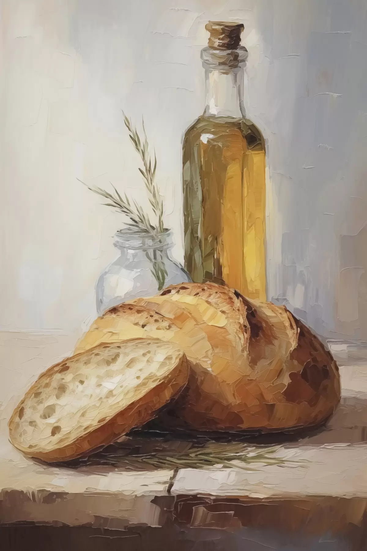 murales Pan y una botella de aceite, pintura de imitación s46759