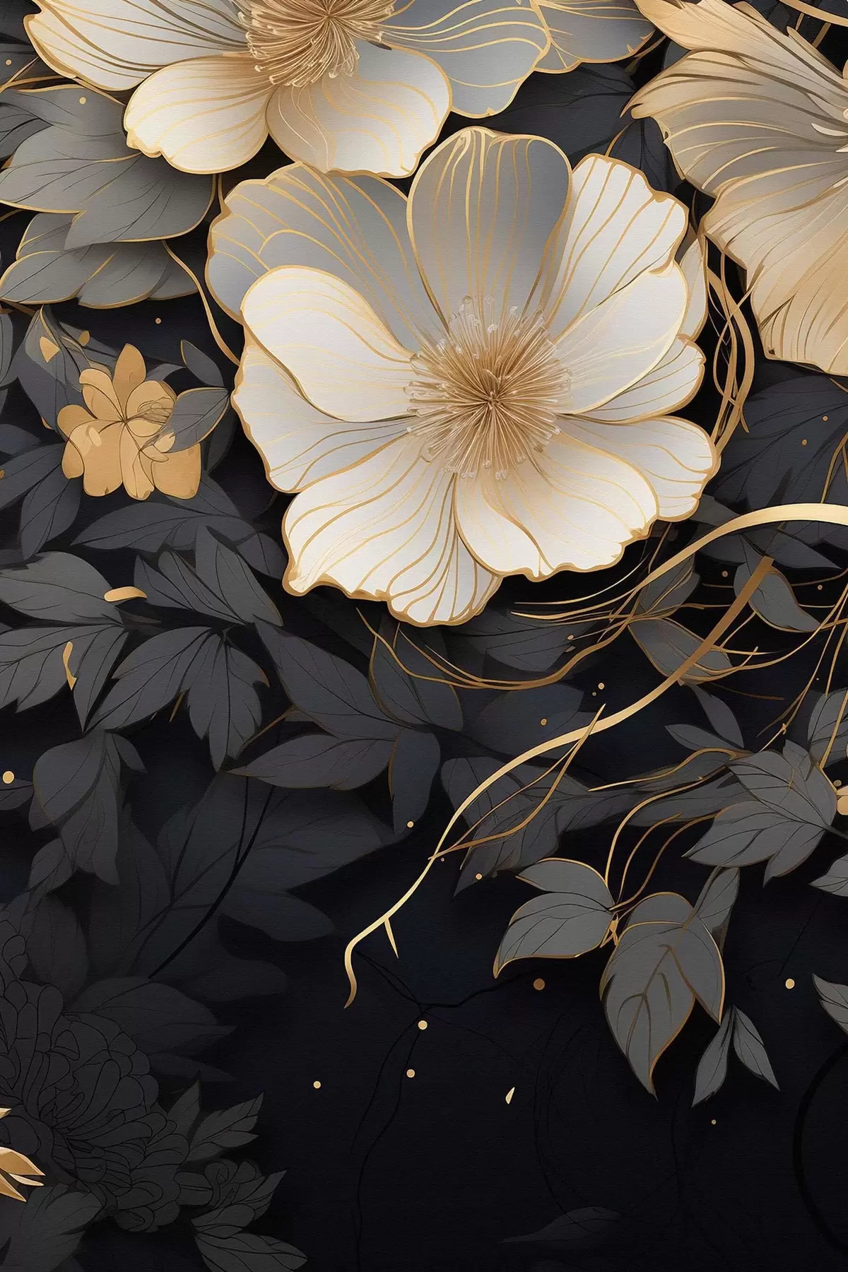 murales Flores abstractas sobre fondo oscuro s46886