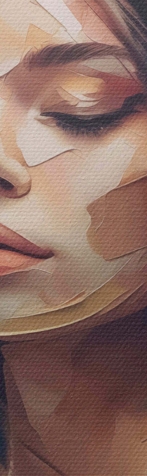 Hay tres tipos de material disponibles para pedidos: Lienzo Económico - material denso y duradero para impresión digital, idéntico al lienzo de pintor, superficie impermeable, reproducción realista de los detalles, material de grano medio. Lienzo Premium - la textura se asemeja a la de un lienzo de pintor (pequeños hilos entrelazados). Reproducción suave y detallada de la imagen sobre una superficie mate. Eco-Premium - tejido 100% algodón de alta calidad. Gracias a las fibras naturales de algodón, el material es duradero y resistente al desgaste. Excelente reproducción del color y el detalle.