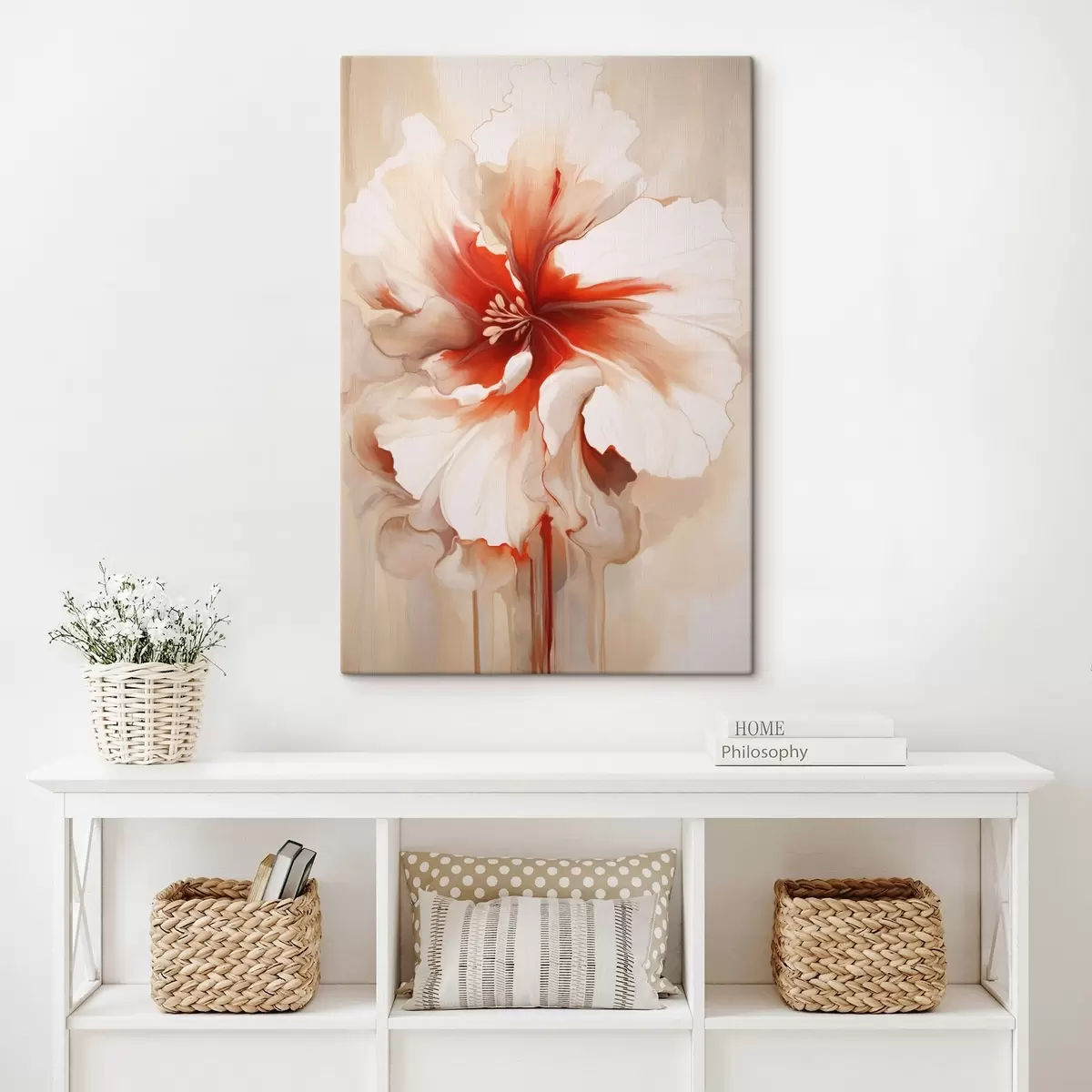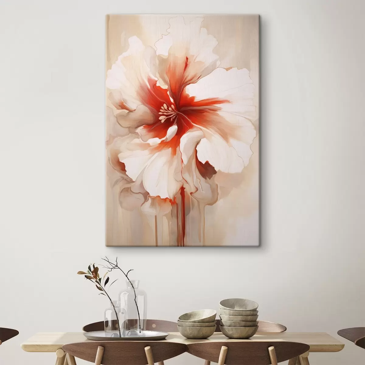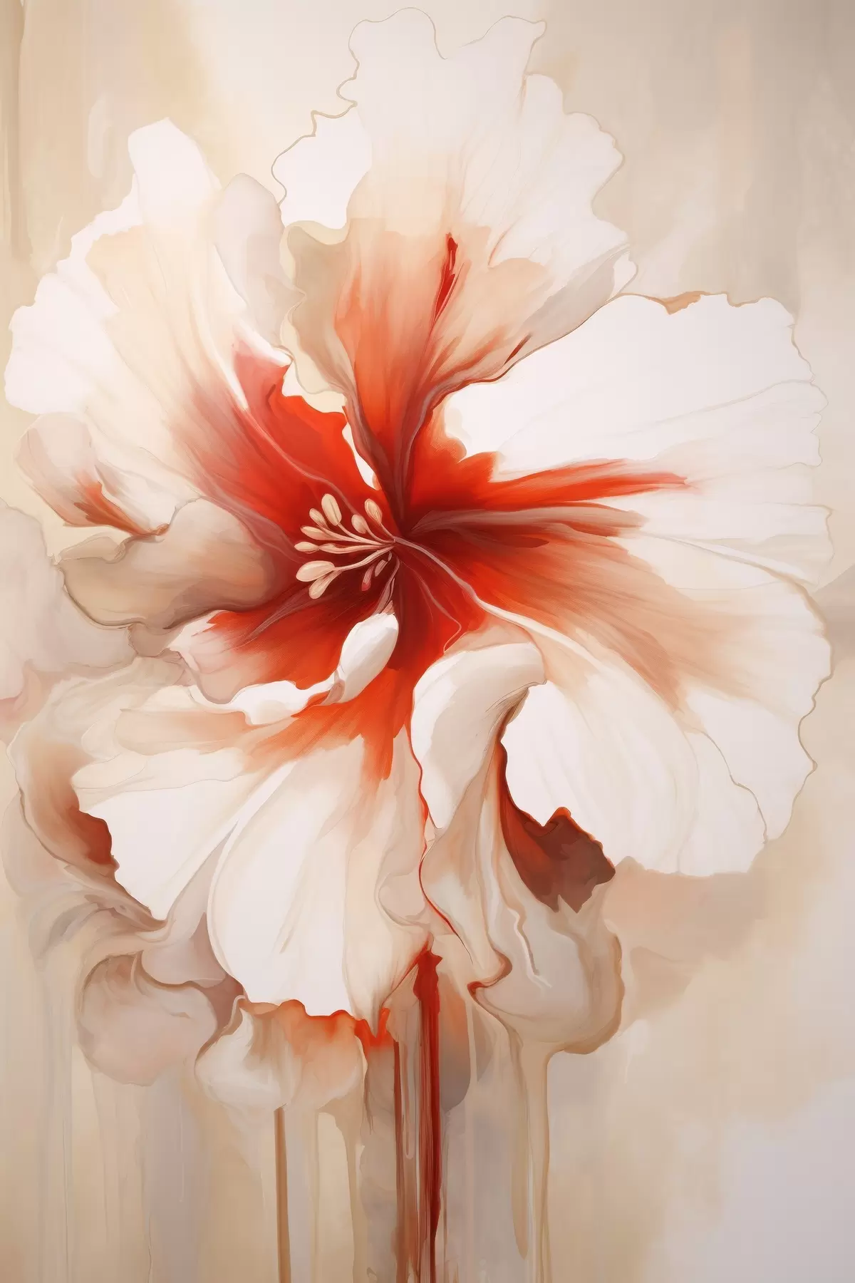 murales Primer plano de una flor blanca y roja con pétalos semitransparentes y gotas de pintura fluidas. s46941