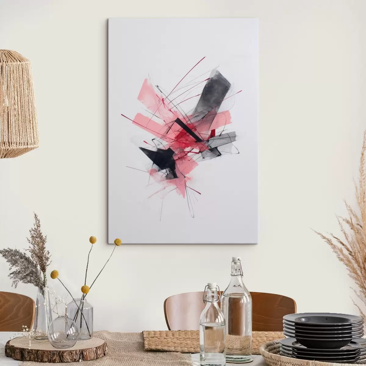 murales Resumen con elementos geométricos rosas y negros. s46950