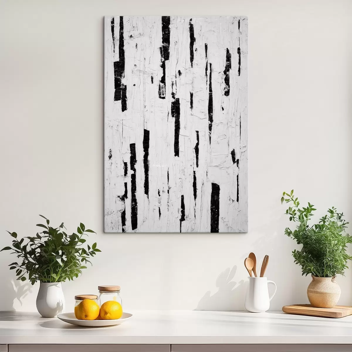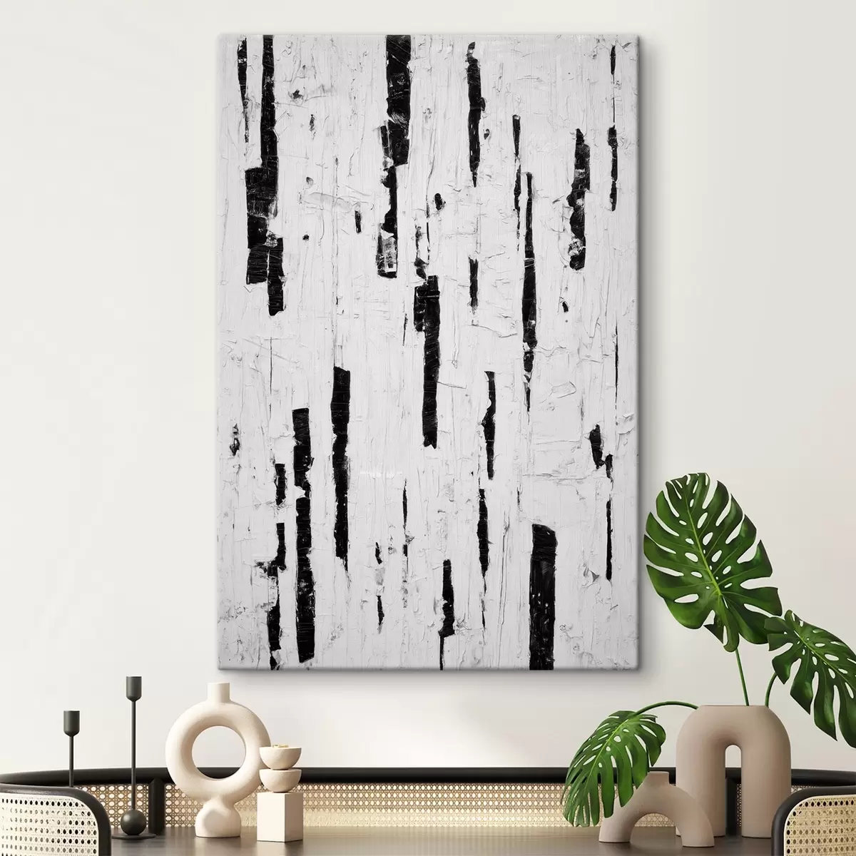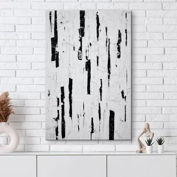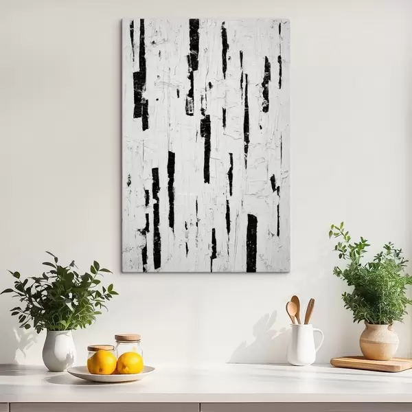 murales Composición abstracta con pinceladas verticales negras sobre fondo blanco en estilo pintura al óleo. s46956