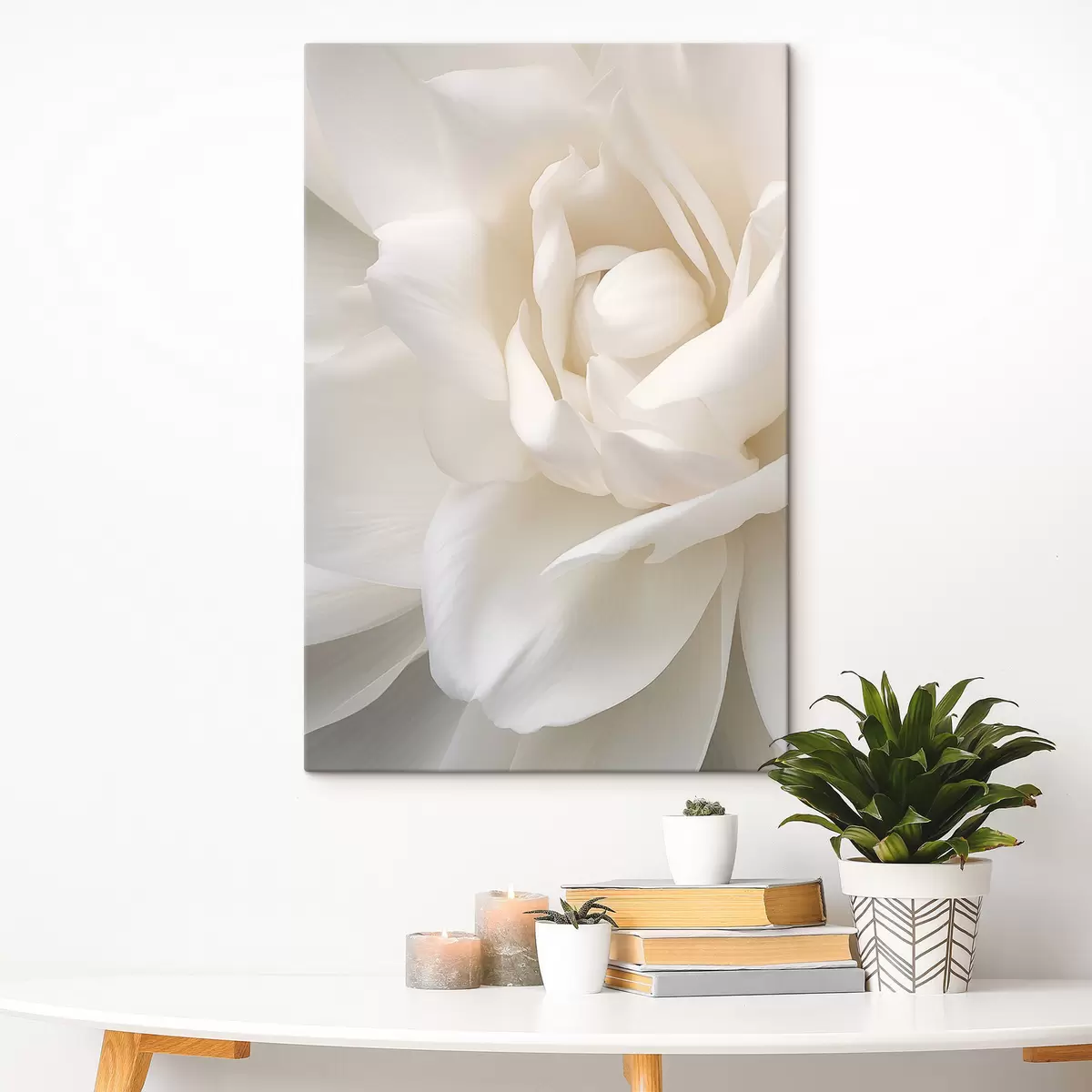 murales Flor abstracta blanca con pétalos delicados y superpuestos, arte minimalista s47025