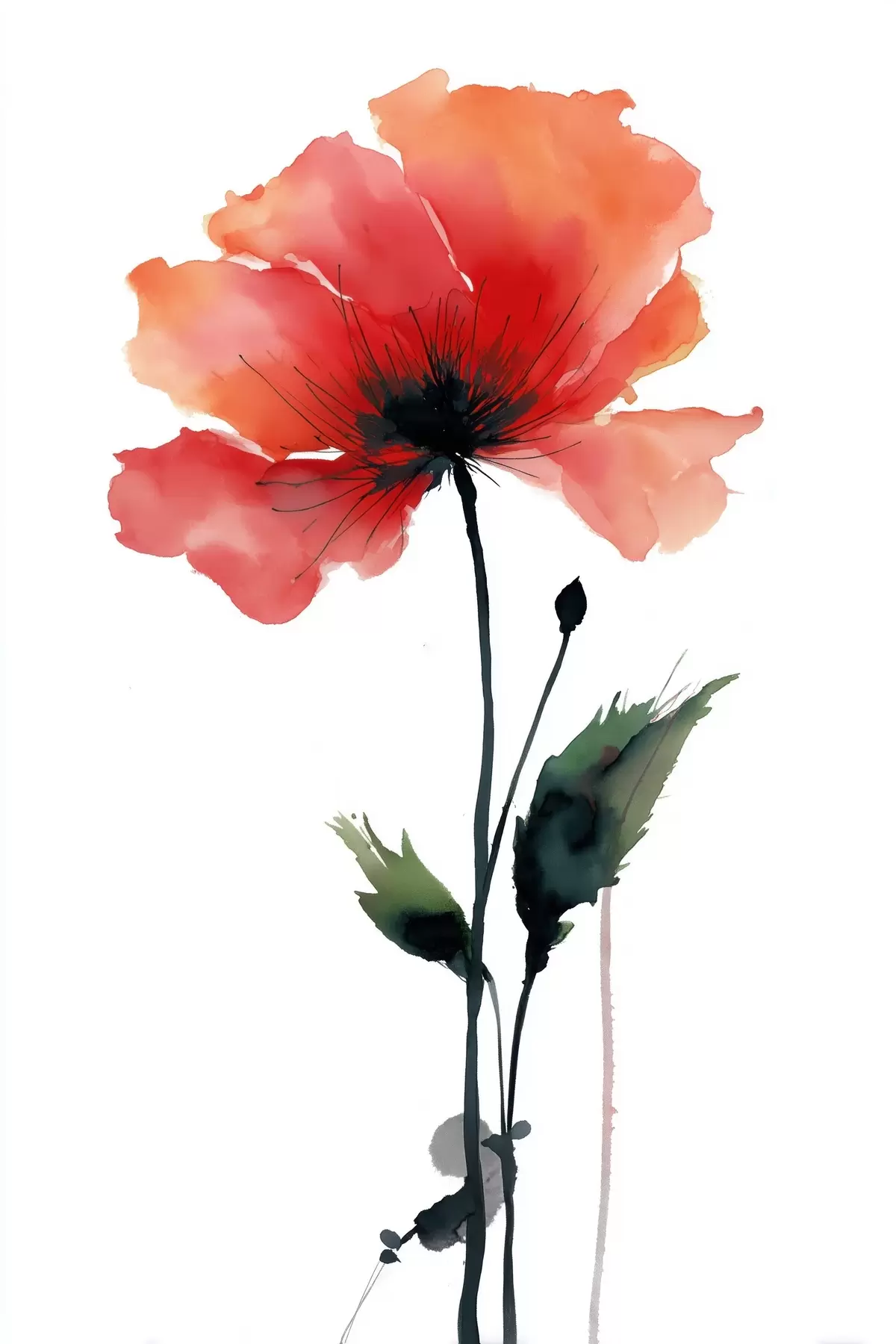 murales Amapola en acuarela en una paleta tranquila con suaves transiciones de color. s47087